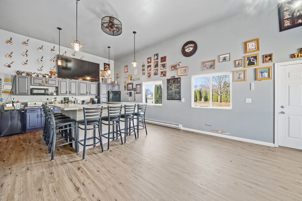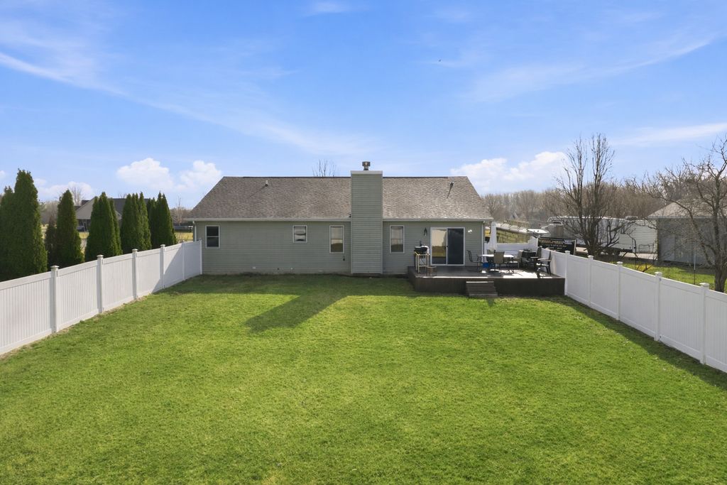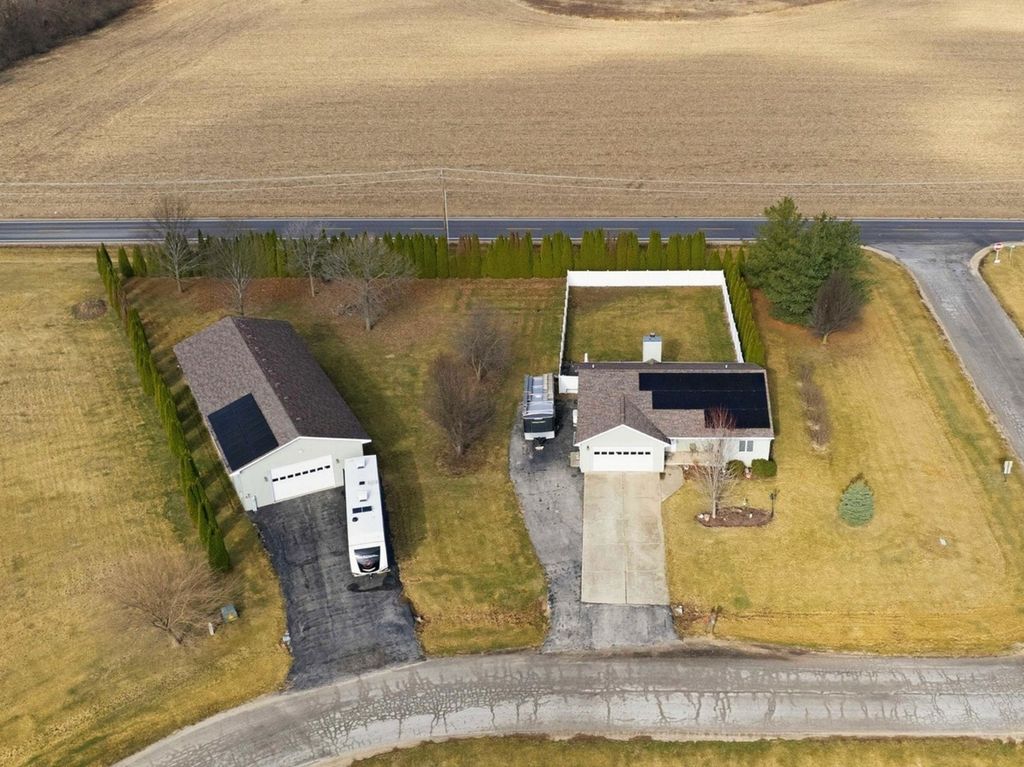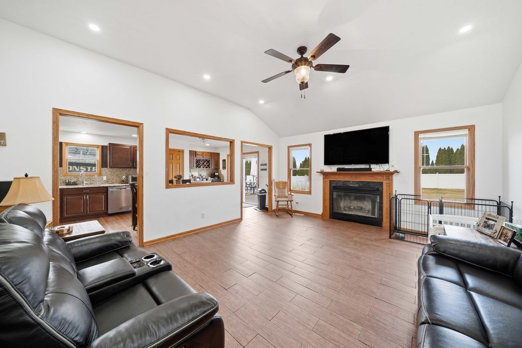 Welcome to this stunning 4 bedroom, 3 bath ranch home situated on a beautifully maintained 1.01 acre lot. The main level features three spacious bedrooms, including a primary suite with a private full bathroom. The large kitchen offers ample space for cooking and entertaining, with direct access to the back patio. Perfect for enjoying the peaceful outdoor setting. Main level laundry adds everyday convenience.The finished basement provides additional living space, including a fourth bedroom and a full bathroom. A standout feature of this property is the impressive 32x80 detached heated shop, complete with a separate entertainment room at the rear. The shop is fully heated, and the bonus room is equipped with air conditioning, ensuring year round comfort. The garage door opening measures 16x10, accommodating larger vehicles or equipment with ease. Mature Emerald Green Arborvitaes surround the property, offering privacy and a picturesque setting. Recent updates include a new roof (2022), siding (2020), whole house generator (2023), high efficiency furnace and air conditioning (2023), and appliances (2025). For added functionality, the property also features two 50 amp RV hookups. This well maintained home offers the perfect combination of space, comfort, and versatility.