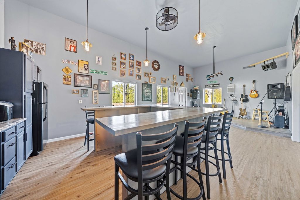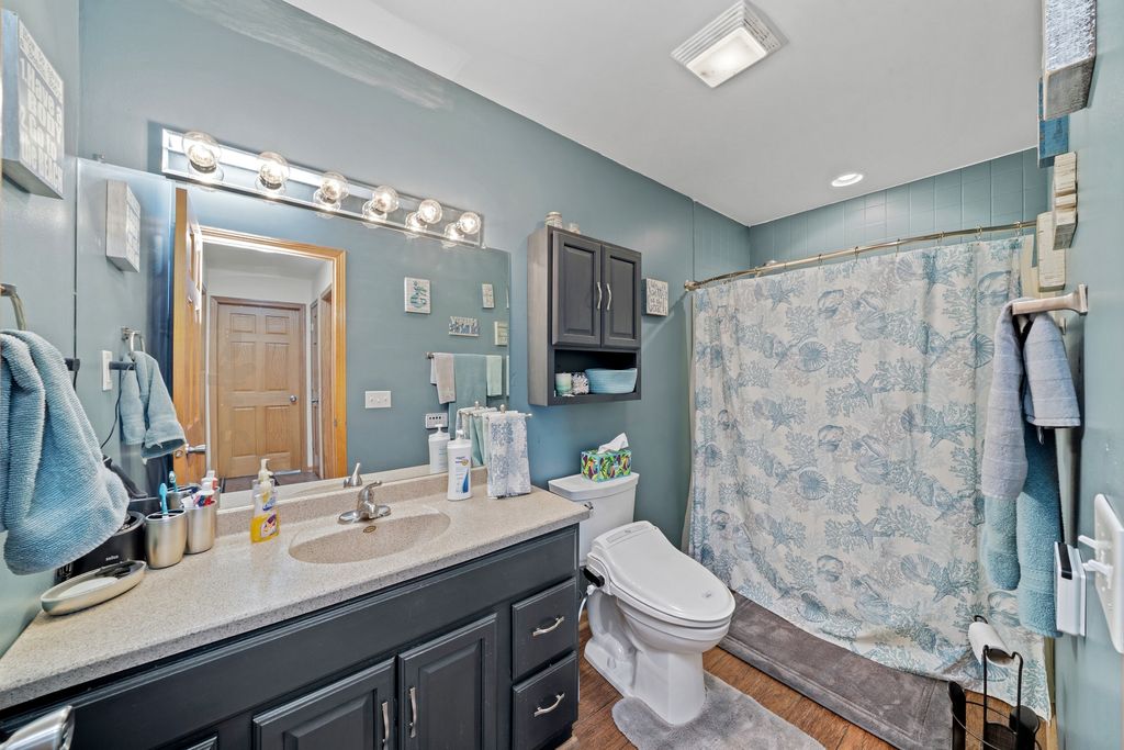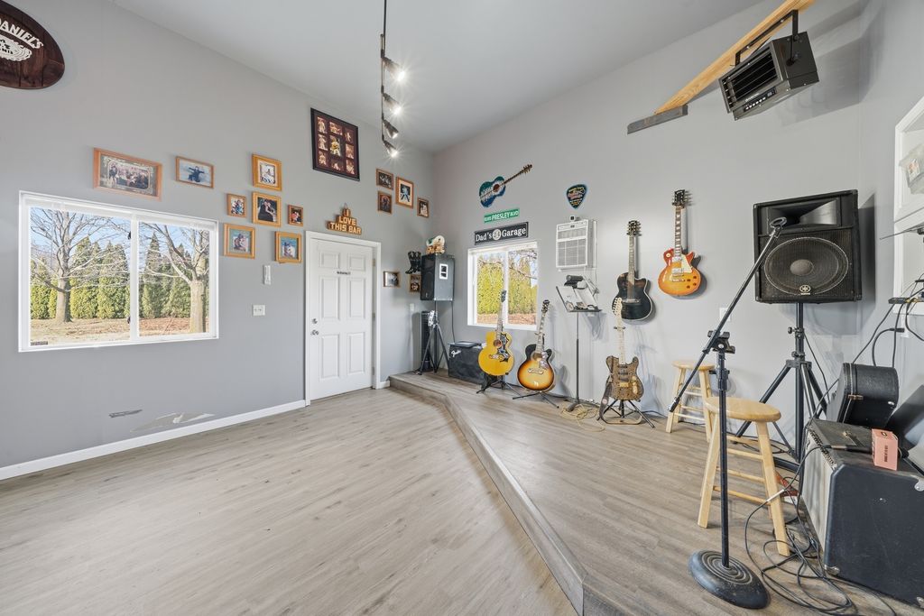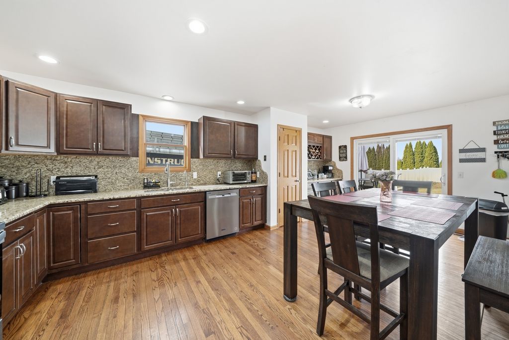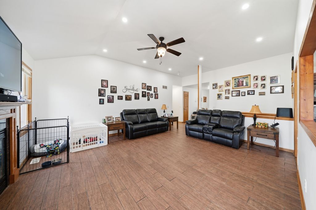 Welcome to this stunning 4 bedroom, 3 bath ranch home situated on a beautifully maintained 1.01 acre lot. The main level features three spacious bedrooms, including a primary suite with a private full bathroom. The large kitchen offers ample space for cooking and entertaining, with direct access to the back patio. Perfect for enjoying the peaceful outdoor setting. Main level laundry adds everyday convenience.The finished basement provides additional living space, including a fourth bedroom and a full bathroom. A standout feature of this property is the impressive 32x80 detached heated shop, complete with a separate entertainment room at the rear. The shop is fully heated, and the bonus room is equipped with air conditioning, ensuring year round comfort. The garage door opening measures 16x10, accommodating larger vehicles or equipment with ease. Mature Emerald Green Arborvitaes surround the property, offering privacy and a picturesque setting. Recent updates include a new roof (2022), siding (2020), whole house generator (2023), high efficiency furnace and air conditioning (2023), and appliances (2025). For added functionality, the property also features two 50 amp RV hookups. This well maintained home offers the perfect combination of space, comfort, and versatility.