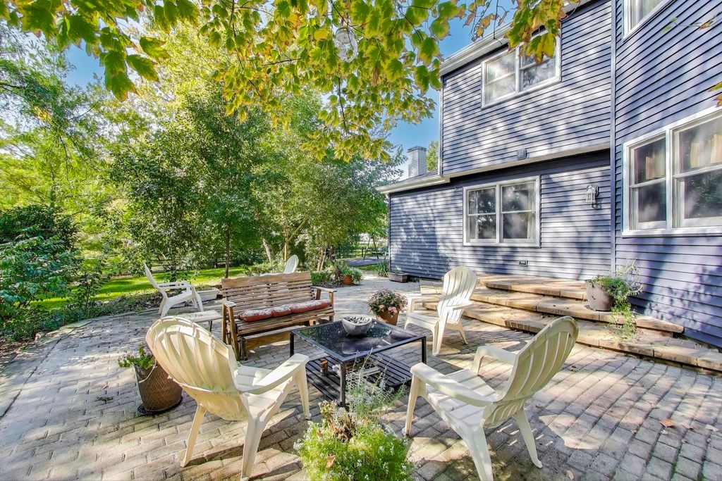 This beautifully maintained 4-bedroom, 2.5-bath residence sits on nearly an acre of serene, tree-lined land, offering the perfect blend of privacy and convenience. Nestled within a sought-after neighborhood and award-winning school district - School bus picks up right at your driveway. This home is just minutes from local restaurants and shopping-giving you the best of both worlds. Step inside to discover stunning inlaid hardwood floors, a welcoming family room with a cozy gas fireplace, and a spacious layout designed for everyday living and effortless entertaining. The beautifully designed primary suite features a walk-in closet built to keep you perfectly organized and a relaxing jacuzzi tub for spa-like comfort. The full basement provides abundant storage or potential for future finishing, while modern upgrades-including new siding and LeafGuard gutters (2024), an ADT security system, and a Ring doorbell with chimes-offer peace of mind and efficiency. Outside, your private backyard feels like a sanctuary-an expansive green space shaded by mature trees, ideal for gatherings, gardening, or quiet mornings with coffee. Enjoy the charm of the covered wraparound front porch and the paver brick patio and walkway, creating the perfect setting to relax or entertain. This is more than a house-it's a place to feel at home, inside and out.