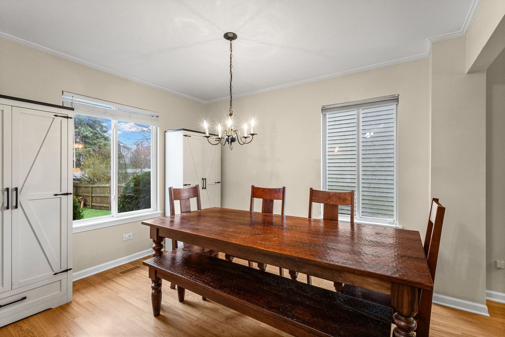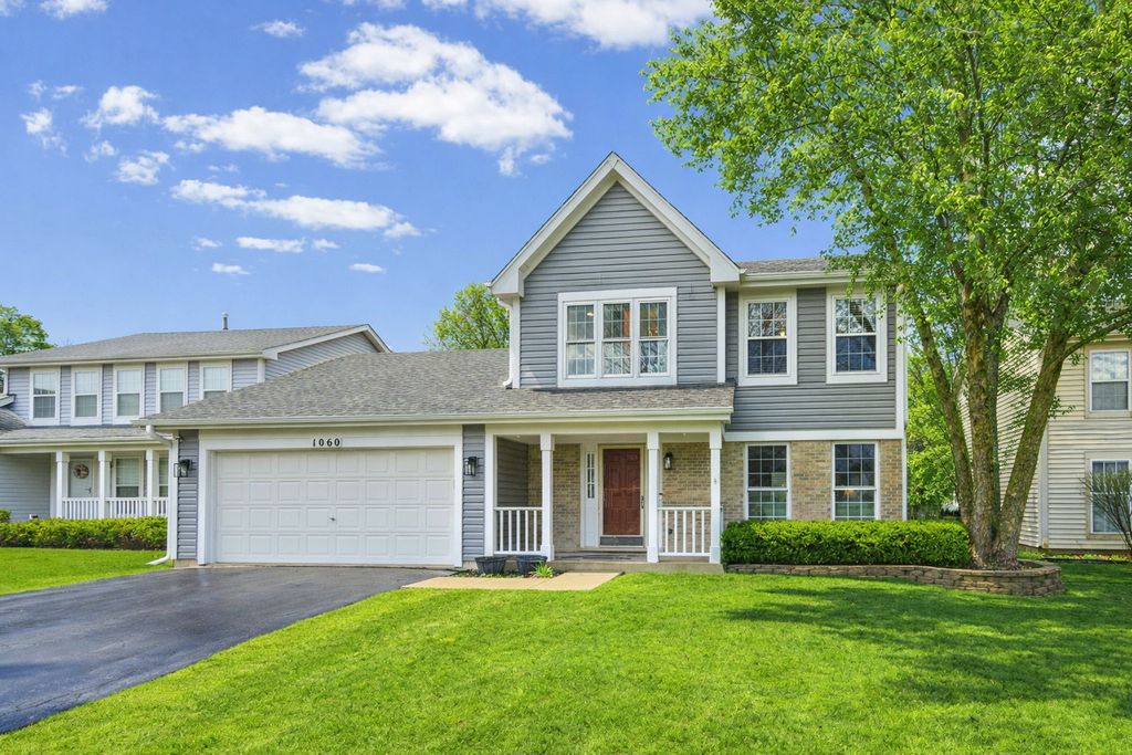 Welcome to Lakewood Crossing! This 3 bedroom, 2.1 bath home offers a bright, open layout with a white kitchen that flows into the family room and eating area with sliding glass doors overlooking the backyard. The kitchen features granite countertops, mosaic backsplash, white cabinets, and stainless steel appliances. The living and dining rooms are combined in an L-shape and filled with natural light from three exposures. New flooring in the family room, kitchen, and hall (2023), new carpet upstairs (2026) and fresh interior paint (2026) create a clean, move-in ready feel. Upstairs includes three bedrooms, two full baths, and conveniently located laundry. The en-suite primary bedroom offers a tastefully appointed bath and walk-in closet. The spacious backyard is perfect for entertaining with a 5-foot fence, paver patio, shed, fire pit, and mature trees creating a private retreat. Attached two-car garage with abundant shelving for storage. Covered front porch and professional landscaping add great curb appeal. New siding in 2025 adds an on-trend aesthetic. Located in award-winning School District 204 near schools, shopping, restaurants, parks, and walking trails.