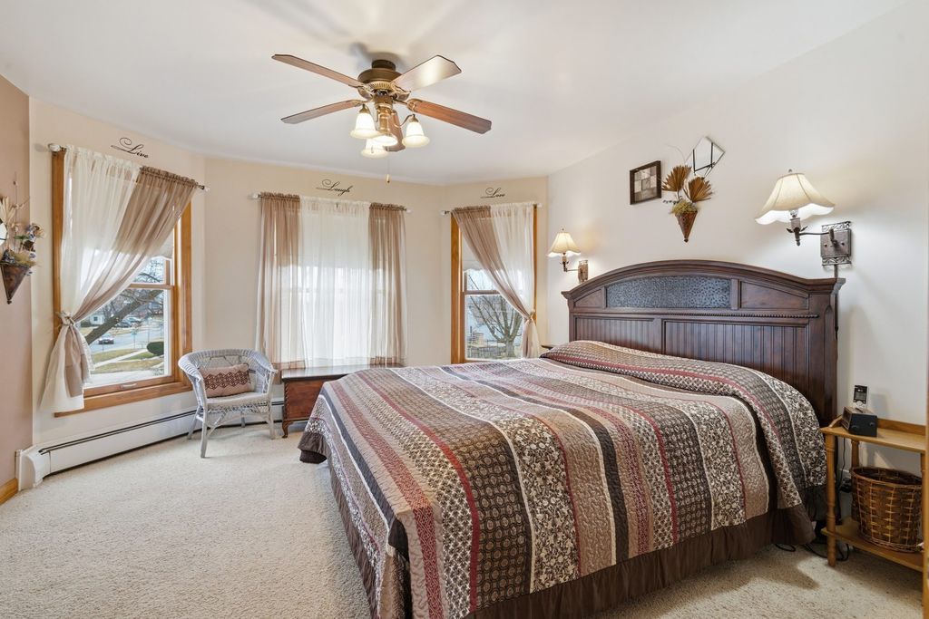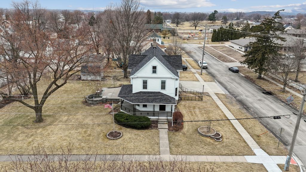 Step into timeless charm with this beautifully preserved two-story historic home in DeWitt, perfectly located near parks, recreation, DeWitt Schools, and community activities-yet privately tucked away on a rare double lot. The outdoor space is truly special, offering a private backyard retreat filled with perennials galore (apple trees, honeysuckle, tulips, bridal veils, iris, ferns, and more!), mature landscaping, and a stunning stone patio complemented by additional stamped concrete, creating the perfect setting for relaxing evenings, entertaining, or enjoying the seasons. Inside, historic character shines throughout the main level with gorgeous original hardwood floors flowing through the living room, dining room, main-level office/bedroom, and kitchen. Elegant and functional pocket doors and remarkable original woodwork along the staircase highlight the craftsmanship rarely found today. The upstairs features four nicely sized bedrooms and a large full bathroom, providing plenty of space for family or guests. The main level also includes a full bathroom with a classic clawfoot tub, along with the added convenience of main-floor laundry. You'll love the convenient ATTACHED 2 car garage, large storage shed, and a 2nd set of stairs leading directly to the dry basement. A rare opportunity to own a historic home that blends character, space, and privacy-all within minutes of everything quaint DeWitt has to offer! Roof all NEW in 2021, updated 200-amp electrical service, floored walkup attic with extra insulation.