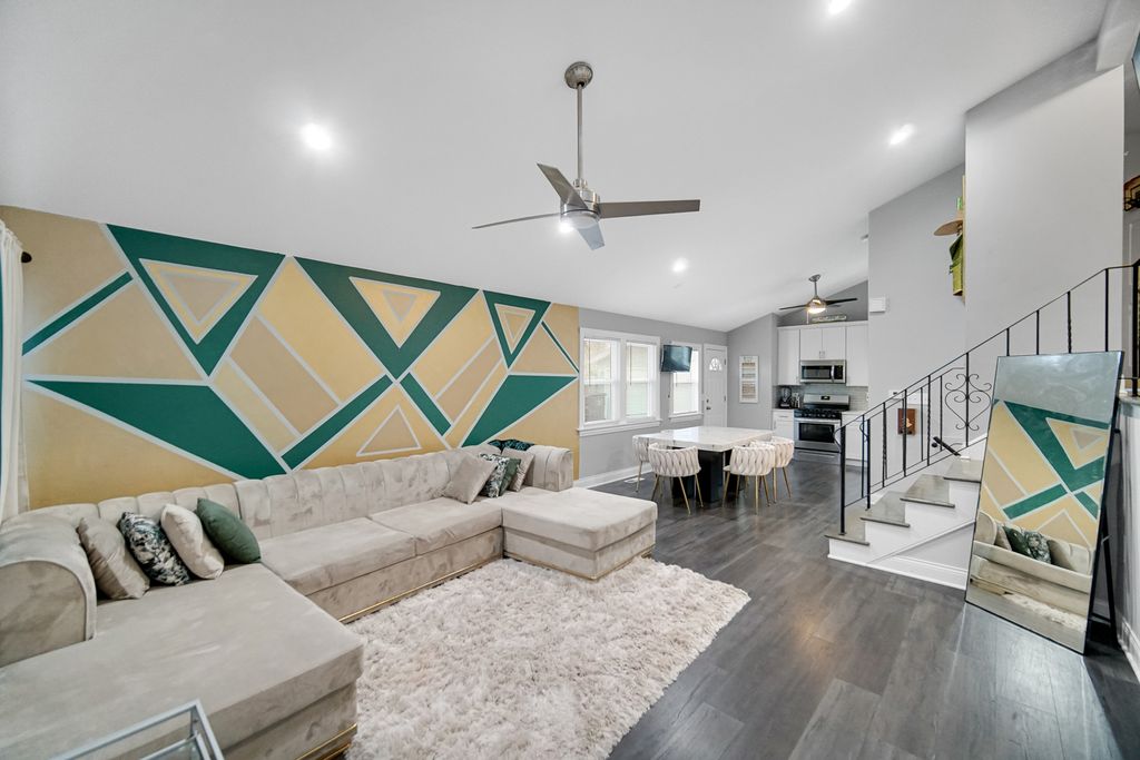 Welcome to this beautiful split-level home nestled on a quiet block, offering the perfect blend of comfort and modern updates. This home features 3 spacious bedrooms and 2 full bathrooms along with a bright, open floor concept that creates a warm and inviting atmosphere. The large kitchen is perfect for cooking and gathering, featuring quartz countertops, stainless steel appliances, and a generous eating area filled with natural light. The layout flows seamlessly into the main living space, making it ideal for both everyday living and entertaining. The finished basement with a full bathroom provides additional living space that's perfect for family movie nights, a recreation room, or hosting guests. Step outside to enjoy the large backyard, offering plenty of room for entertaining, summer gatherings, or simply relaxing outdoors. The home also includes a 2-car garage with electric vehicle charging system wiring connection, adding modern convenience for today's lifestyle. This home truly combines space, style, and functionality in a peaceful neighborhood setting. Don't miss the opportunity to make it yours!