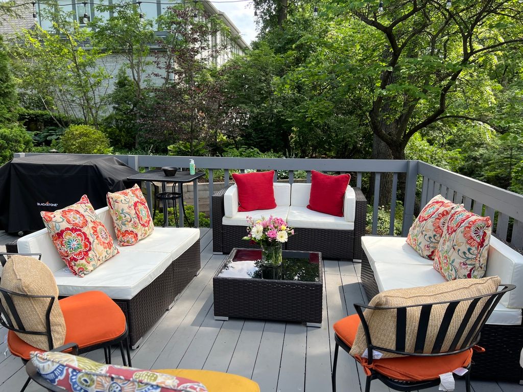 Welcome to 11515 Burr Oak Lane-where elevated luxury meets peaceful, nature-infused living. Tucked within the prestigious Burr Oaks Glen North community of Burr Ridge, this exceptional residence rests on an expansive 100' x 160' (0.37-acre) wooded lot. Towering trees, a gentle winding creek, and calming views from every window create a tranquil, almost resort-like ambiance from the moment you arrive. A Zen-Inspired Outdoor Sanctuary:Professionally designed landscaping and hardscape shape an outdoor setting that feels both serene and sophisticated. A sweeping three-tier deck opens to the tree line, complemented by a flagstone patio ideal for fireside evenings. Custom exterior lighting-supported by three independent timer systems-transforms the grounds into a softly illuminated retreat perfect for year-round gatherings. Lower Level Elevated to a Luxe Social Haven:The lower level has been thoughtfully reimagined into a warm, inviting extension of the home-perfect for both relaxation and entertaining. At its heart is a stunning, state-of-the-art wet bar featuring a wraparound marble slab, a dedicated sink, bespoke cabinetry, backlit shelving, wine fridge, and striking bronze-hued artistic tiles that create the perfect mood for an evening drink. This level also includes a beautifully appointed bedroom and a full bathroom enriched with custom tile-work, offering comfort and privacy for guests. A spacious family room, a dedicated Zoom room(home office), generous storage, and a built-in speaker system complete this luxurious downstairs haven. A Kitchen That Inspires Connection: The chef's kitchen is designed for both beauty and function, with wraparound marble countertops, a dramatic full-slab marble backsplash, under-cabinet lighting, and an inviting breakfast nook. The formal dining room opens seamlessly to a sunlit living room with vaulted ceilings and skylights, creating an uplifting atmosphere for everyday living. Refined Touches Throughout:* Full-size laundry room conveniently located off the attached two-car garage* Impressive six-foot double entry doors welcoming you into a slate-tile foyer* Lofted sitting room off the primary suite-perfect as a reading lounge, art studio, or second home office* 4 bedrooms, 3.5 baths, and flexible spaces that effortlessly adapt to modern lifestyles Families value the highly rated schools-Pleasantdale Elementary (10/10) and Lyons Township High School (10/10)-as well as the home's proximity to Burr Ridge Village Center, parks, dining, and commuter routes. Annual taxes remain especially appealing at just under $12,000. Timeless, tranquil, and move-in ready, this Burr Oaks Glen North residence offers an extraordinary blend of luxury, privacy, and natural beauty-set on one of the most desirable wooded lots in the community.
