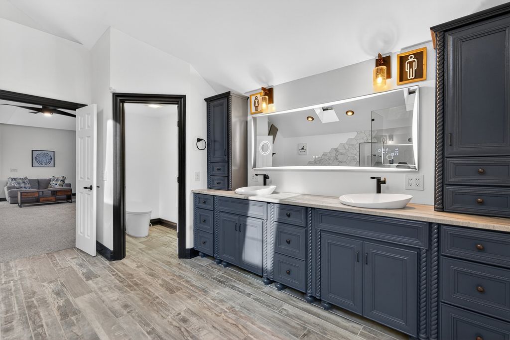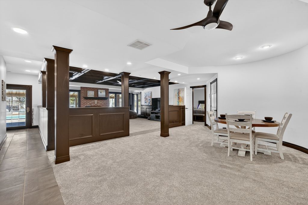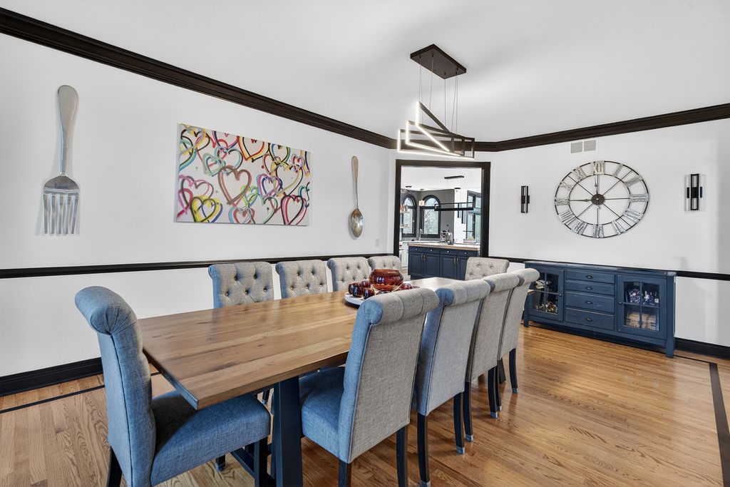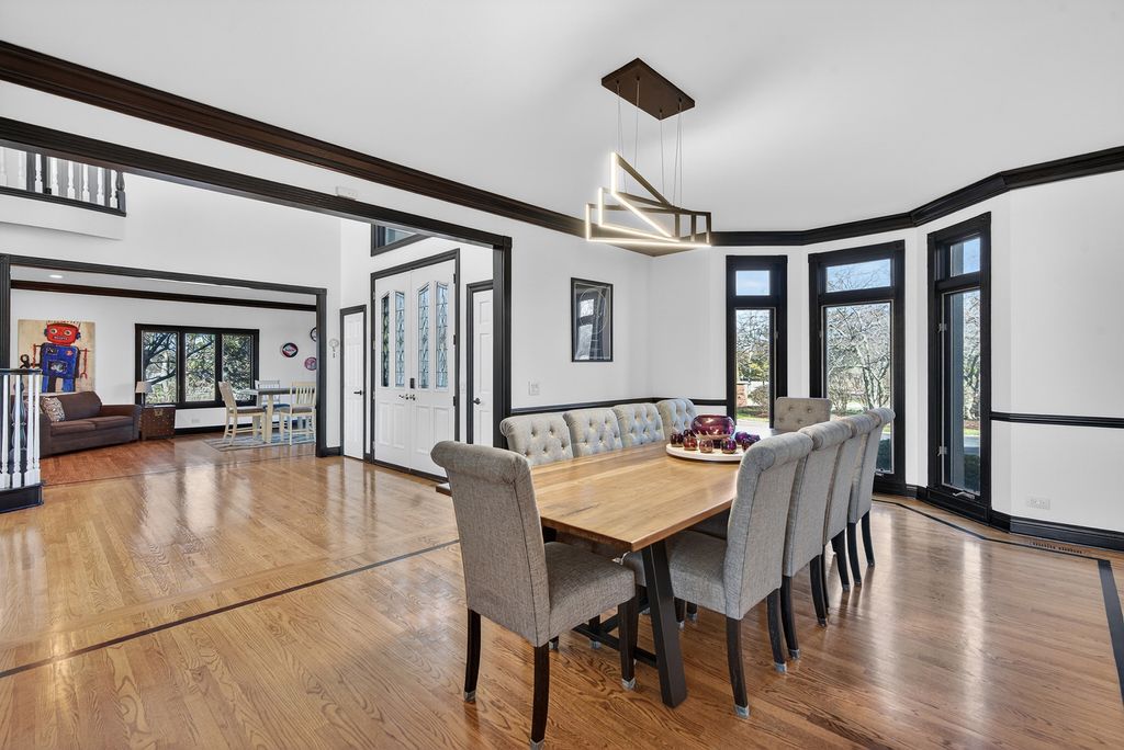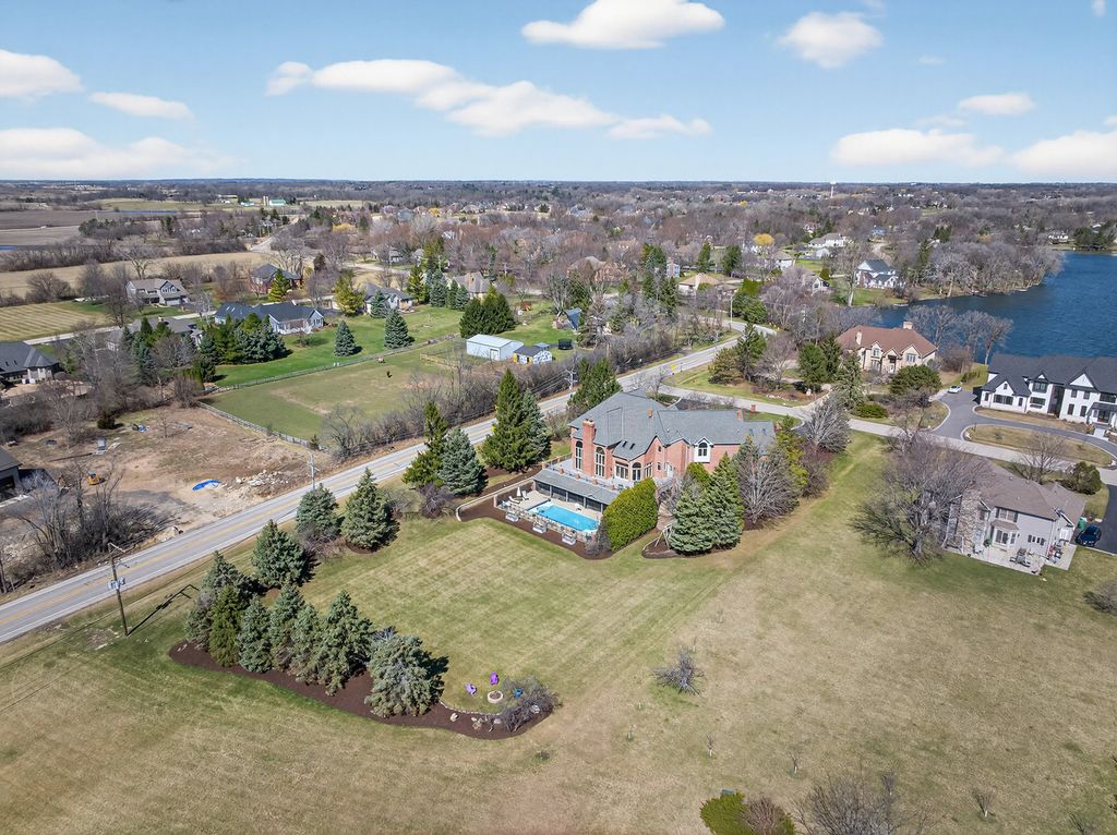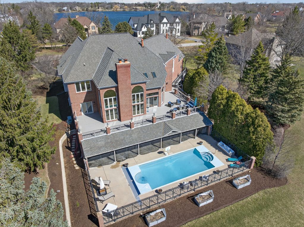 Experience timeless sophistication & contemporary convenience in this stunning 10,000+ square ft 2-story residence, ideally located in the serene community of Turnberry in the Village of Lakewood. This recently remodeled & predominantly brick 2 story home offers five bdrms, 4 full bathrms, 3 half bathrms, seamlessly blending refined design w/everyday functionality. Step inside the impressive foyer, where a grand staircase, soaring 2-story ceilings, & a custom motorized chandelier welcome you. To the right of the foyer is a game rm or a music rm, take your pick. Beautiful oak hardwood flooring w/custom inlays flows seamlessly throughout the entire main floor & help set the tone for this special homes' elegance. This spectacular home features a great rm layout which is an entertainer's dream come true. The gourmet kitchen features a brkfst bar, lrg food prep island, walk-in pantry, new quartzite counters, new high end SS appliances including a wine fridge, Subzero fridge & beverage fridge, Wolf professional gas range, & a Cove dishwasher. This spectacular kitchen & adjacent brkfst rm w/access to the expansive composite deck seamlessly flow into the expensive 2-story living rm, centered around a magnificent solid masonry brick-wd burning fireplace, creating an inviting space for both relaxation & entertaining. Speaking of entertaining, the formal dining rm comfortably seats 10+ friends & family w/ease no matter what the occasion. Off the great rm there is an idyllic library/office w/custom-built ins & beautiful views of the serene back yard. Working from home does not get any better than this. Moving upstairs, the primary suite offers a pvt sanctuary/get away w/a double-sided gas log fireplace, coffee bar station, expansive walk-in closets w/built-in closet organizers, & a brand-new spa like bathrm. You will love & never want to leave the curb less walk-in 2-person shower w/gorgeous glass enclosure & six valve smart Kohler multi headed shower. If taking baths is your idea of relaxing, then you will surely appreciate the separate soaker tub, perfect for those long bubble baths. Even the toilet is a smart Multifunction Kohler toilet making the go even more pleasurable. In addition to the primary suite on the upper level, there is a full-sized laundry rm w/sink & new washer/dryer, 3 additional generously sized bdrms w exceptional closet space & 2 full bathrms, both completely remodeled. Just in case there's not enough rm for you in the 6184 ft.2 of finished living space on the first & 2nd floor flrs, there is a full finished WO basement offering nearly another 4000 ft.2 of finished living space. This space features a rec rm, a second fully remodeled kitchen w/walk-in pantry, a fifth/guest bdrm or In law suite, a 4th full bathrm & 2nd laundry area, conveniently located for those who are using the inground pool or working outside. Yes, there is an in ground (approximately 45,000 gallons) pool that is 3 feet at both ends & 6 feet in the middle (perfect for pool volleyball) w/ a new motorized pool cover. Immediately adjacent to the inground pool is a screened cabana area to enjoy bug free meals, entertaining, or relaxation. Watch all your favorite sports/shows on the outdoor TV located in the cabana area. This is the place all your friends, family & children will want to be, especially during the summer. On this lower level, there is also another garage area w/an overhead door so that you can drive the lawn tractor straight out into the backyard as well as store all your pool furniture, equipment & deck furniture & even have space for an awesome workshop. This space is so convenient & thoughtful, it even has its own half bathrm. Completing this spectacular estate, is a fully heated & air-conditioned 3+ car-attached garage w/ extra storage space & stairs to the walkout lower level. This is the place you will definitely want to make your next home!!! The list of features & improvements to this home are extensive!!!