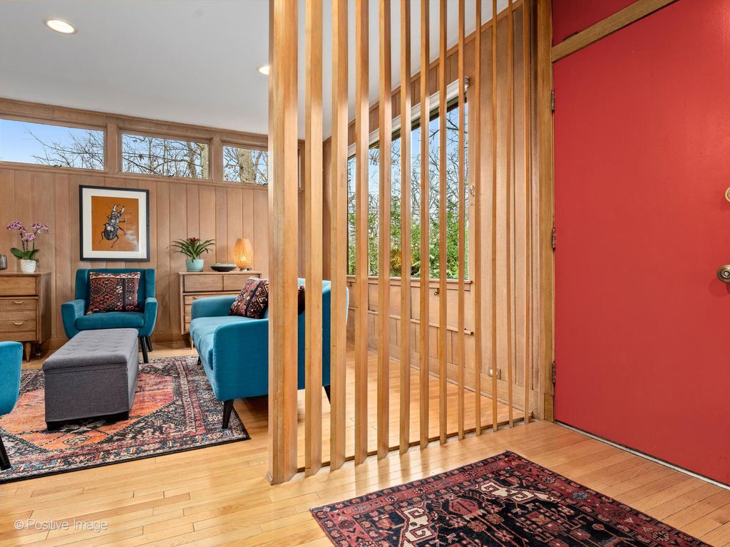 Discover a truly unique Mid-Century home designed by Keck & Keck perfectly located within steps of the Ravinia grounds, train stop and shops. Approaching the home you'll notice a privacy fence of evergreens, step inside a serene courtyard to find a thoughtfully updated home blending character and modern comfort. Enjoy the inviting, light filled open layout with the floor-to-ceiling windows, exposed brick accents, hardwood floors and a cozy fireplace that creates a warm, timeless atmosphere. The kitchen opens up to the dining and living room, featuring granite countertops, a spacious bay island and overlooks a private Zen-like garden. Retreat to the master suite with a recently renovated en-suite bathroom. In addition to the 3 bedrooms, this spacious home has a large multi-purpose room that can function as a large home office or even 4th bedroom. The finished basement adds even more living space and includes a half bathroom. The proud owner has spared no effort to completely update the home, updates include all renovated kitchen and bathrooms, new electrical wiring throughout, new plumbing, new roof, new HVAC, new trex deck. Additional updates include multi-zoned forced air radiant heat, heated garage and Keck bothers high efficiency passive-solar heating design. This perfectly updated home pays respect and homage to one of the most desired architectural periods, it will not disappoint.