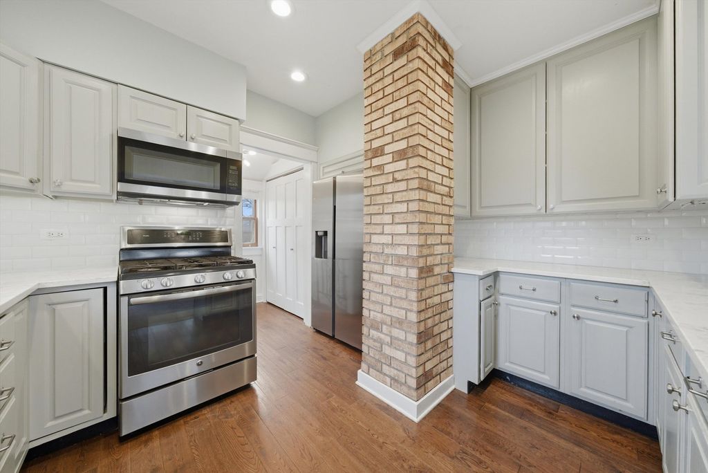 Welcome to 237 W Austin Ave in Libertyville, where charm, updates, and an unbeatable in-town location come together. Located blocks from downtown Libertyville, parks, shopping, dining, and the Metra, this home also offers convenient walking access to local schools. This 3-bedroom, 2-bath home features a first-floor primary bedroom, providing flexible living options. An inviting front porch welcomes you, while the spacious patio creates the perfect spot for outdoor entertaining and relaxing. Inside, you'll find wood floors, exposed brick accents, and an updated kitchen with quartz countertops, updated cabinetry, and stainless steel appliances. Both bathrooms have been updated, including the main-level bath, renovated within the last year with shiplap detail and a walk-in shower. Storage is exceptional for a home this size, with walk-in closets in each bedroom, a large cedar closet at the top of the stairs, and a full basement offering additional storage or future finishing potential. The property also includes a 2.5-car garage, storage shed, and attic space above the garage with its own electrical panel, offering potential for a home office, studio, or hobby space. A move-in-ready home with character, updates, and easy access to everything Libertyville has to offer.