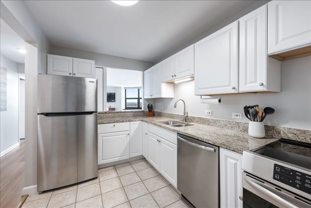 Get ready to Enjoy STUNNING UNOBSTRUCTED VIEWS of the lake, city and harbor from this 16th floor, renovated, 2BR/2BA corner unit with GARAGE SPACE included in the price! This 2BR floor plan offers wall to wall views in every direction, luxury vinyl floors, a fabulous chef's kitchen with plenty of prep space, a walk-in Pantry, natural stone countertops, crisp white cabinetry, all NEW state-of-the-art stainless appliances, custom lighting and hardware throughout, plenty of storage options and almost too much to list! The baths are fully updated and offer a soaking tub in one and a walk-in shower in the other. There's nothing for you to do but move in! This fantastic CORNER UNIT offers an open concept expansive floor plan with dedicated spaces for living and dining, 7 huge picture windows offering views, views, views in every direction, a private balcony and as its the unobstructed corner unit, the light is spectacular and the home is serenely private and set back from LSD. Assessments include all utilities, garage parking space, cable, internet - all you pay is electric. Monthly Assessment Breakdown: Unit $730.26, Parking $97.24, Cable/Internet $65.00. The New York is a full amenity building and offers 24 hour door-staff and on-site maintenance and management. Building amenities include Party Room, Fitness Center (FFC), Roof Top Party Room, Sun Deck, Commissary and more! Building Info: No Specials Pending or Planned | Reserves Approx. $2.8M | Parking Space 209 Included | $250 Move-in/Move-Out Fee | Bike Room $25/Year | 2 Dogs Permitted per Unit, Maximum 100lbs. | Pet Fee $100/Year | Electric Chargers and Guest Parking Available. This home sits in a superior location along Chicago's famed lakefront, in one of the best buildings in the city, offers an easy and convenient lifestyle, unparalleled views with the best of Lakeview East shopping, dining, entertainment close by and many public transportation options at your doorstep. Welcome Home!