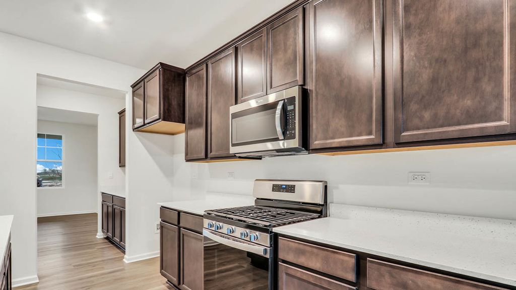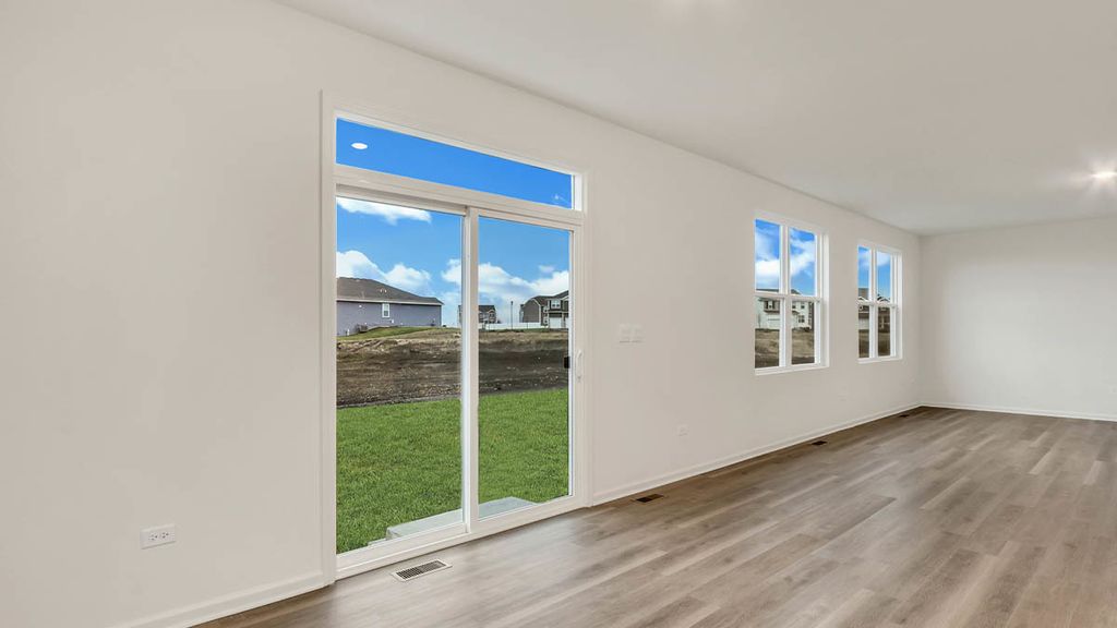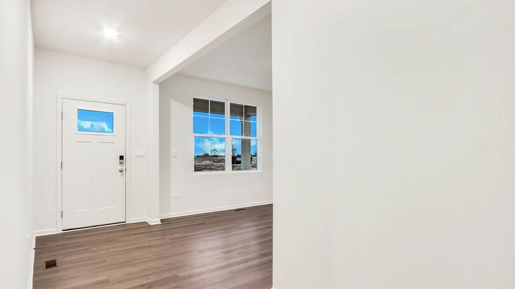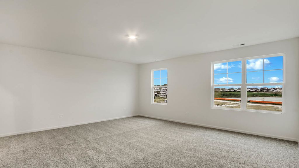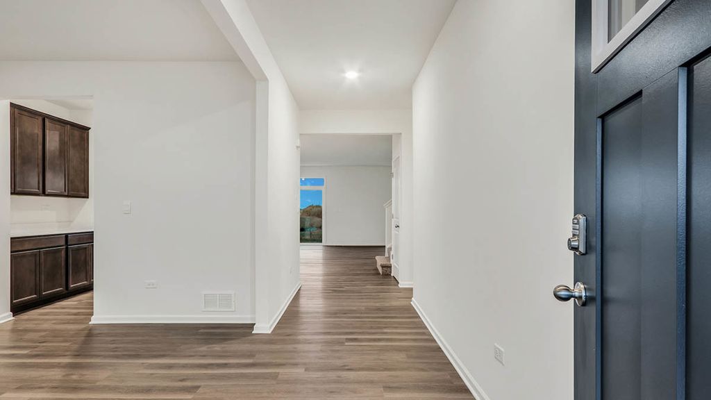 Discover yourself at 10037 Edgebrook Ln in Huntley, Illinois, a beautiful new home in our Cider Grove community. This home will be ready for a late summer move in. Homesite backs up to beautiful open green space, includes a fully sodded yard. The Coventry plan offers 2,836 square feet of living space with a flex room, 4 bedrooms, 2.5 baths, 2 car garage, 9-foot ceilings on the first floor and a full basement with roughed in plumbing. Entertaining will be easy in this open-concept kitchen and family room layout with a large island with an overhang for stools, and 42-inch designer cabinetry with crown molding and soft close drawers. Additionally, the kitchen features a walk-in and butler's pantry, modern stainless-steel appliances, quartz countertops and easy-to-maintain luxury vinyl plank flooring. More flexible space is waiting upstairs! Enjoy your private getaway with your large primary bedroom and en suite bathroom with raised height dual sink, quartz top vanity, and walk-in shower with ceramic tiled walls and clear glass shower doors. Convenient walk-in laundry room, 3 additional bedrooms with a full second bath and linen closet complete the second floor. All homes at Cider Grove include a garage door opener on double doors, an ERV furnace system, and a tankless hot water heater. All Chicago homes include our America's Smart Home Technology, featuring a smart video doorbell, small Honeywell thermostat, smart door lock, Deako smart light switches and more. Photos are of similar home and model home. Actual home built may vary.