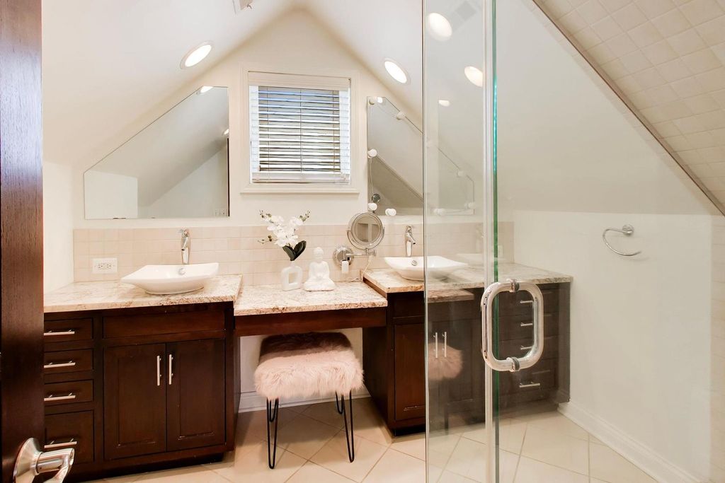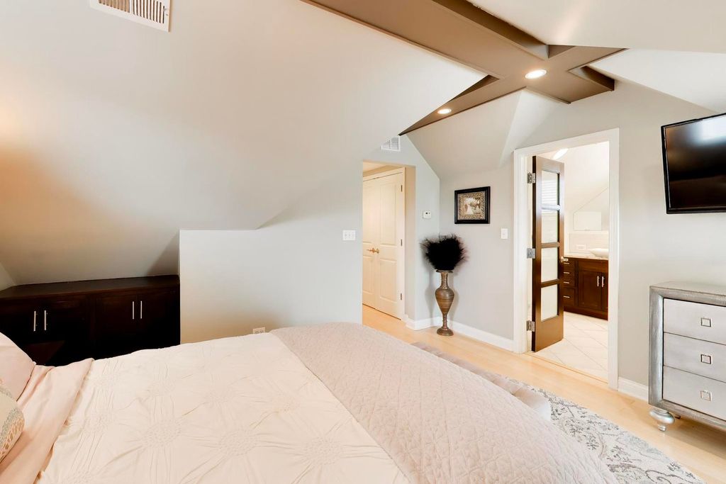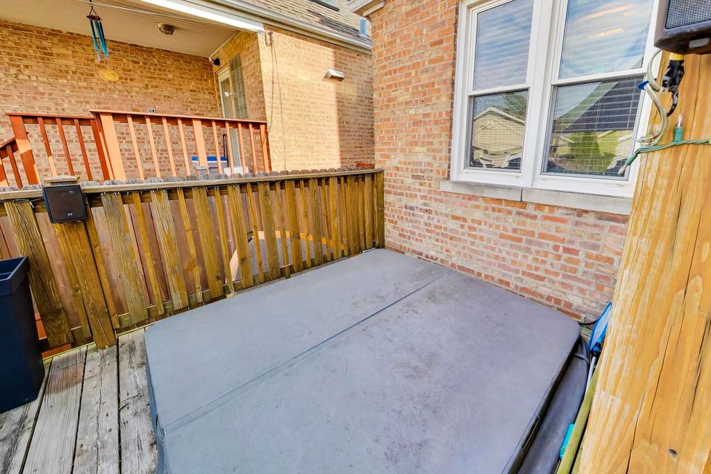 Beautiful Cape Cod located in the highly desirable River Forest Manor! This thoughtfully updated 4-bedroom, 2.1-bath home blends timeless charm with modern features. The bright and spacious home features hardwood floors throughout, crown molding, recessed lighting, and abundant natural light. The main level offers a living room, dining room, two bedrooms, a full bath, and an eat-in kitchen with an island, granite countertops, and stainless steel appliances. Upstairs, you'll find two additional bedrooms, including one with access to an outdoor deck, as well as the primary suite featuring a custom reading nook, built-in shelving, dual closets, and a beautifully updated bathroom with dual granite vanities and a large walk-in shower. The fully finished basement provides excellent additional living space, complete with a large family room, full wet bar, potential fifth bedroom or office, half bath, laundry, storage, and convenient exterior access. Step outside to your private, fully fenced backyard oasis featuring a custom two-tier pergola deck with a built-in hot tub. A paver patio sits just off the two-car detached garage, which includes a rear overhead pass-through door-perfect for seamless indoor-outdoor entertaining. Situated on a gated street for added privacy, this home is just steps from Elmwood Park's Restaurant Row, offering the perfect blend of comfort, style, and location.