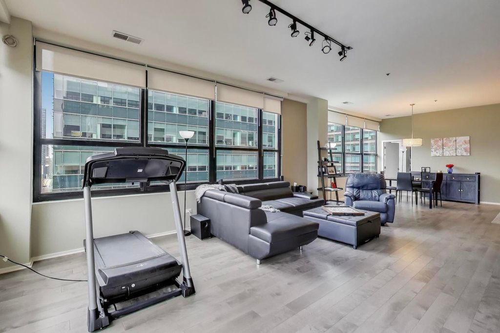 Sun-Drenched Corner 2 Bedroom, 2 Bath at Metropolitan Place! Experience elevated urban living in this prime 03-tier corner residence located in the heart of the West Loop Gate. Perched on a high floor, this home features hardwood floors, soaring 11-foot ceilings and over 75 feet of panoramic windows. Take in sweeping views of the Willis Tower and the city skyline from your expansive south-facing balcony. The open-concept layout includes separate living and dining area. A chef's kitchen anchored by a granite island with breakfast bar overhang, custom cabinetry, and stainless appliances. Retreat to a luxurious primary suite boasting a massive custom walk-in closet. Spa-like bath with a frameless glass shower and double vanity. Both bedrooms are fully enclosed. Modern conveniences include a full-sized side-by-side laundry with built in storage. Prime indoor underground heated garage parking additional $30k. Enjoy full-service amenities including 24-hour door person, bike storage, dry cleaner, fitness center, and expansive terrace. Tons of restaurants, nightlife, the West Loop, Union Station and the Financial District are right outside your door!