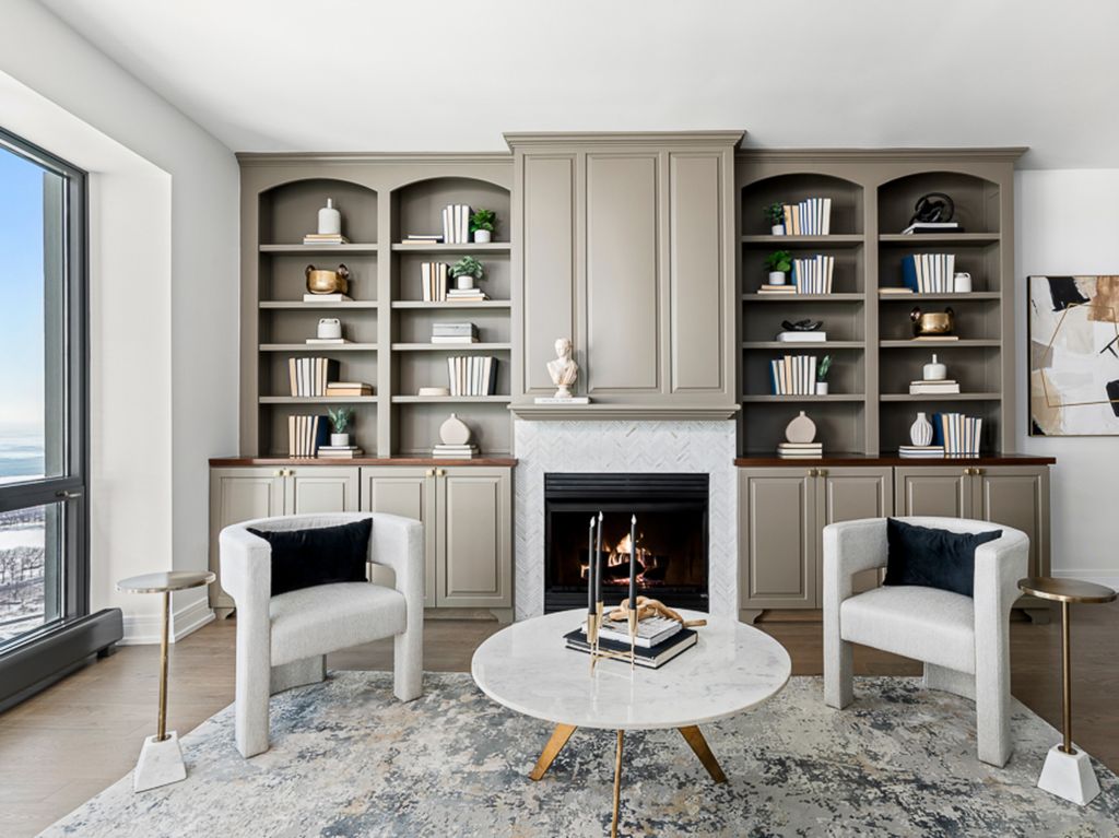 Welcome to this fully reimagined residence in The Heritage at Millennium Park, where iconic views and refined design intersect above the city. This 3-bedroom, 2.1-bath home is perfectly positioned with unobstructed, east facing views spanning Lake Michigan, Millennium Park, Cloud Gate, and the Chicago skyline. Every inch has been thoughtfully curated with top-tier finishes, delivering a turnkey home in the sky. Upon entering the views immediately draw you in, grounded by brand new hardwood floors and an open layout. The kitchen features two tone slim shaker cabinetry, quartz countertops, sleek backsplash, a built-in Fisher & Paykel refrigerator, hidden microwave, and modern finishes. The kitchen offers seating for two and flows seamlessly into a dedicated dining area perfectly sized for a six-person table, ideal for intimate dinners and elevated entertaining. The living room is anchored by a gas fireplace and flanked by bookcases, creating a warm yet sophisticated retreat above it all. Just off the living space you have the private balcony perfect for al fresco dining and chic powder room just off the foyer completing the living space. The expansive primary suite is a true sanctuary, positioned to take in the sightlines. Featuring a ensuite spa-inspired bathroom with walk in shower, soaking tub, double vanity and an adjacent walk-in closet. Two generously sized secondary bedrooms are thoughtfully split for privacy, each open exposures for days and sharing a beautifully appointed hallway bath with walk-in shower. In-unit laundry and multiple closets complete the residence. One garage parking spot and additional storage cage included. Additional parking available for purchase. The Heritage is a full-service building offering 24-hour door staff, multiple sundecks, an indoor pool, hot tub, sauna, fitness center, clubhouse, dog run, and on-site management. Just off Michigan Avenue, enjoy world-class shopping and dining, the unparalleled green space of Millennium and Grant Park, the lively Theater District, lakefront trails, Monroe harbor and direct access to the Chicago Pedway system, public transportation and a straight shot to major highways. This is the epitome of Chicago living, elevated.