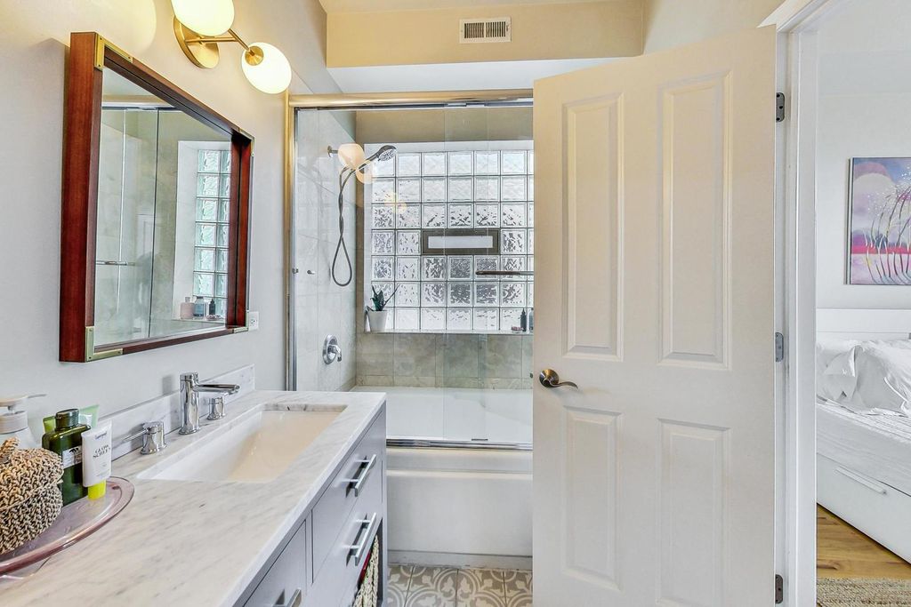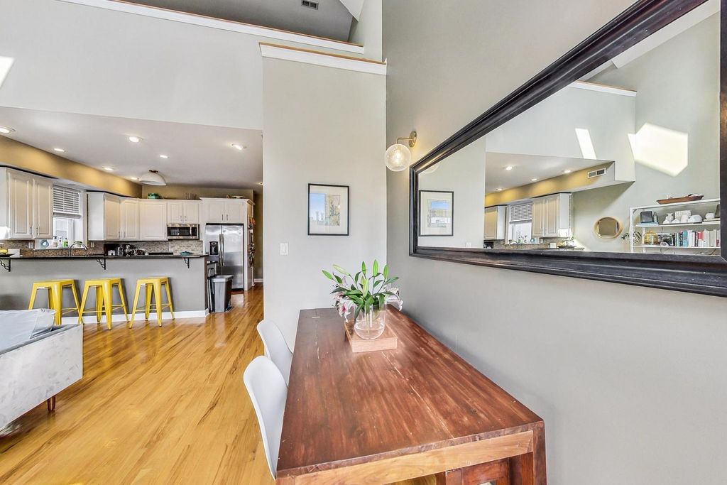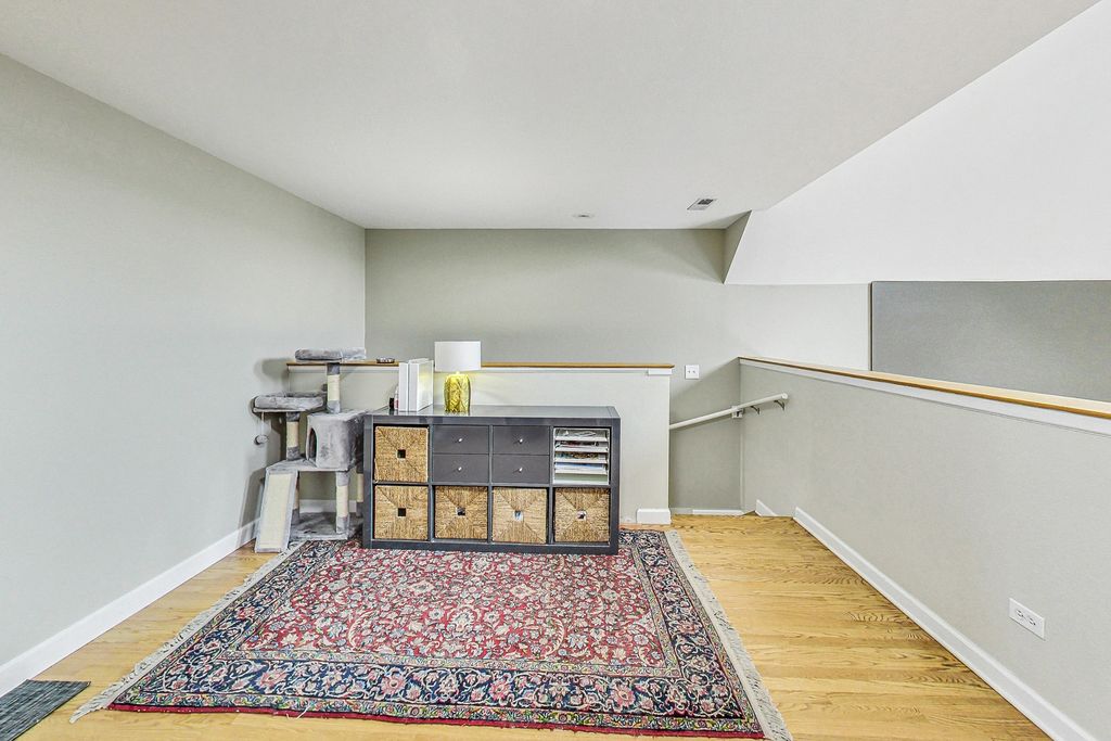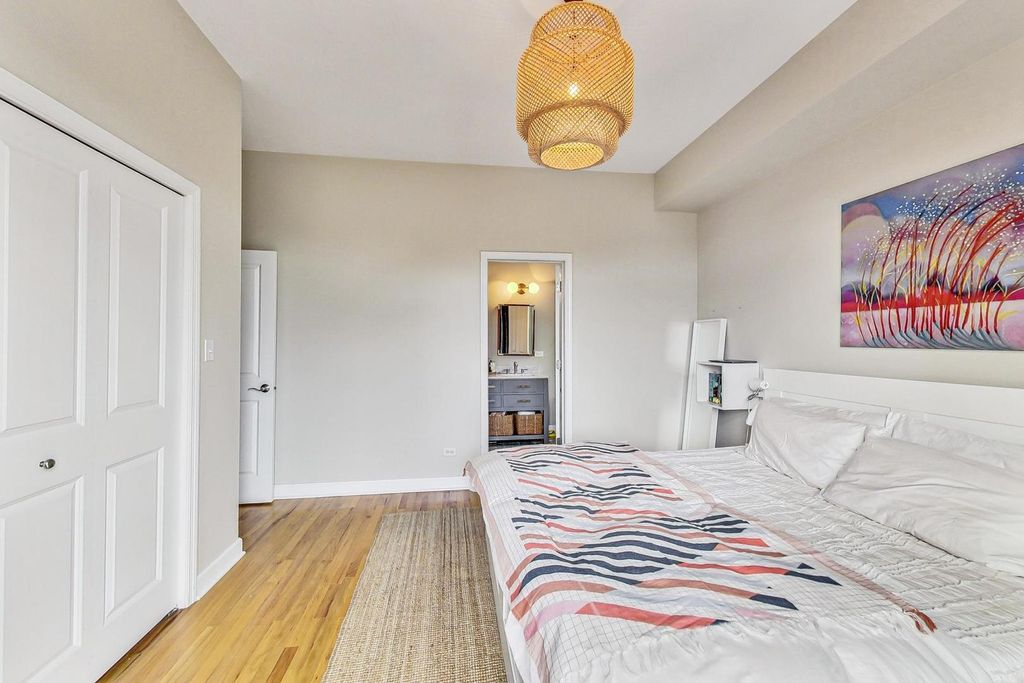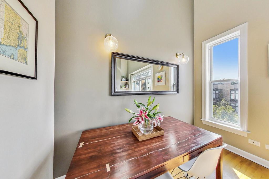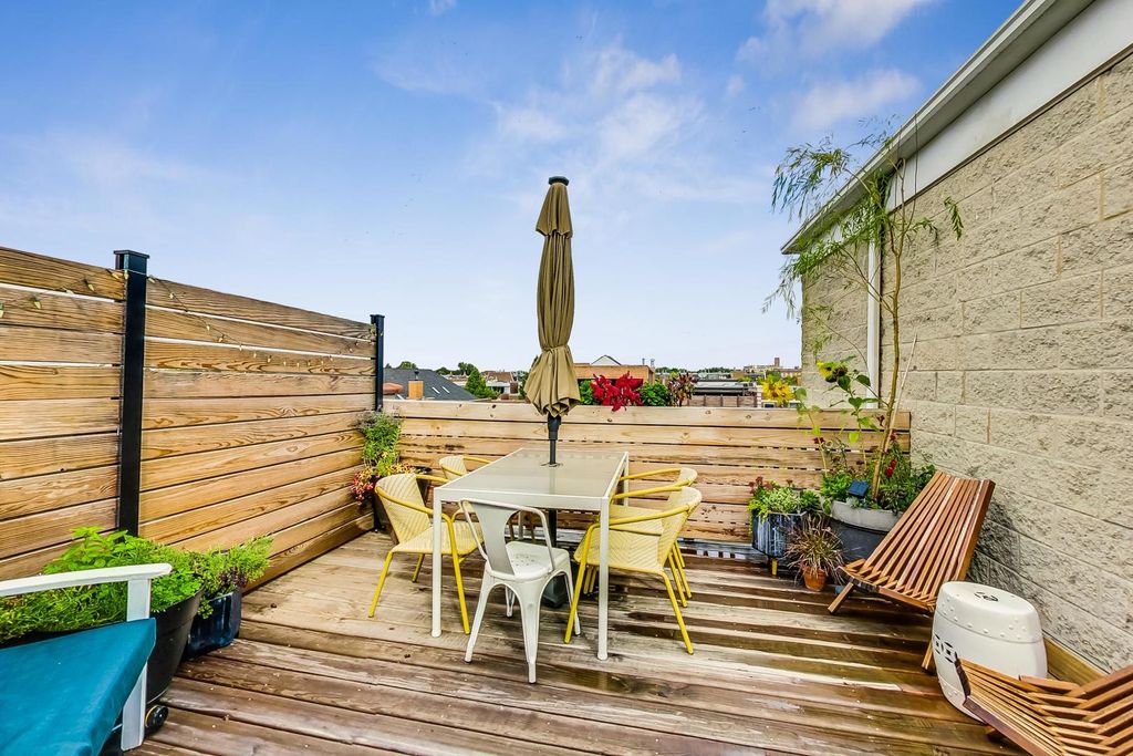 Extra-large duplex-up penthouse in prime Lakeview featuring highly desirable south-facing exposure, exceptional natural light, and dramatic 30-foot ceilings! The sun-drenched living and dining room showcases soaring ceilings with skylights and a chic fireplace with a custom reclaimed wood mantel. The kitchen is appointed with granite countertops, stainless steel high end newer appliances, and an oversized breakfast bar. The primary bedroom includes a private back deck and a recently updated en-suite bath with double-sink vanity and XL tub. A second bedroom and full bath are located on the main level with convenient hallway access. The open lofted second floor offers incredible flexibility and was thoughtfully reconfigured by the sellers to maximize an expansive upper-level SECOND LIVING SPACE, office space, and additional storage, while providing access to a private walk-out rooftop deck. Recent improvements include a new roof, new rooftop deck, new induction cooktop, and new dishwasher. Two parking spaces included-one garage and one exterior-plus additional storage. Well-maintained building with low monthly assessments and very healthy reserves. Located within the Burley School boundaries and just steps to Chi Che Wang Playlot.