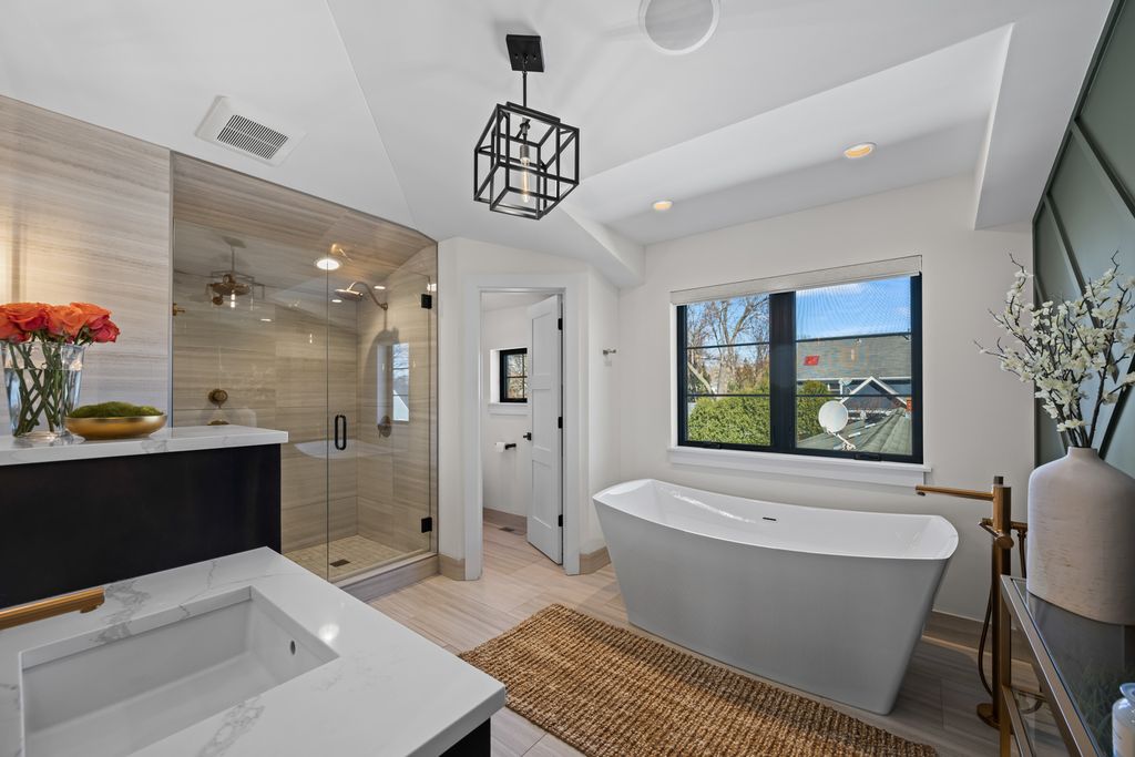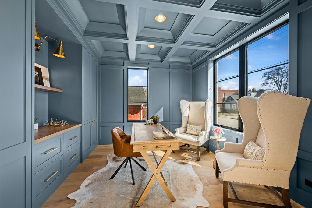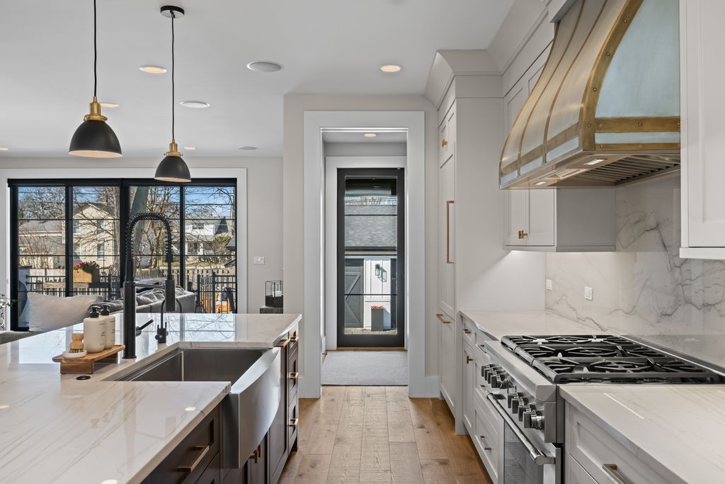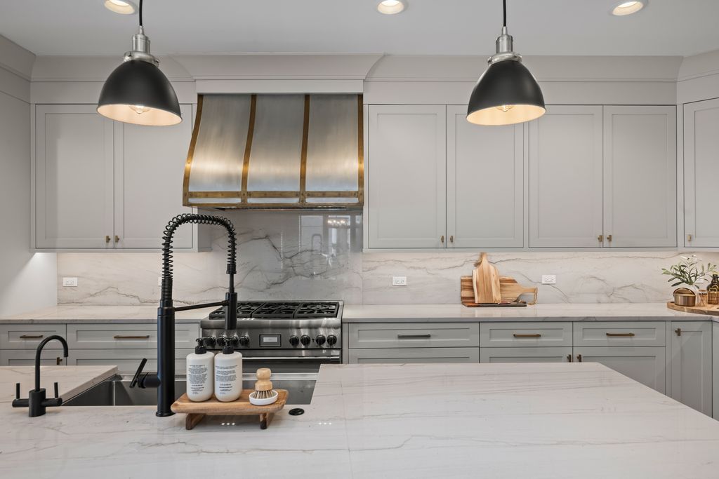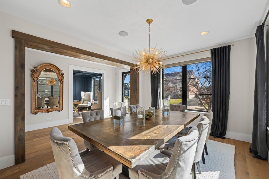 Beautiful custom-built home completed in 2020, ideally located just two blocks from vibrant downtown Arlington Heights. This exceptional 4-bedroom, 4.5-bath residence offers an open-concept floor plan with high-end finishes and thoughtful design throughout.The chef's kitchen features Thermador appliances, a custom hood, quartzite countertops with a seamless backsplash, custom inset cabinetry, and an oversized 10-foot island. Additional highlights include a separate eat-in area and a walk-in pantry with a built-in microwave and appliance station. Just off the kitchen, the dry bar is perfect for entertaining with deep cabinet drawers, a beverage refrigerator, wine cooler, and additional cabinetry. The adjoining family room features an exposed brick accent wall and dramatic 12-foot dual sliding glass doors that open to the stamped concrete patio with a sitting area and natural gas grill hookup. The main level also includes a formal dining room and a private office with coffered ceilings, paneled walls, custom built-in cabinetry with concealed electrical, and a floor outlet. A mudroom with built-in cabinetry and shoe drawers leads to the rear entry. The main floor is completed by a powder room, coat closet, and a dedicated cleaning supply storage closet. Wide-plank French white oak floors and 8-foot solid-core doors run throughout the home, along with custom inset cabinetry. The second level features vaulted ceilings that create an airy feel. The spacious primary suite offers a large walk-in closet and a luxurious bath with dual sinks, heated floors, a freestanding soaking tub, oversized shower with two shower heads and sprayer, and a private water closet. Two additional bedrooms each feature private en-suite baths and built-out closet systems. The conveniently located laundry room includes an oversized folding counter, deep sink, and ample hanging space. The finished English basement provides additional living and entertaining space with 9-foot ceilings, a large family room, wet bar, and full-size refrigerator/freezer. The lower level also includes a second private office, fourth bedroom with en-suite bath, and a large finished utility room with excellent storage. Outdoor living continues on the rear patio featuring a natural gas firepit and bistro lighting. The oversized heated 2.5-car detached garage includes 100-amp electrical service for easy EV charger installation and finished attic storage. Additional features include a 22kW whole-house generator, whole-house dehumidifier, reverse osmosis drinking water system, built-in speakers throughout the home, garage and outdoor areas, monitored alarm system, permeable brick paver driveway, fenced yard, and an electric driveway fence for added pet security. Agent owned - Both sellers are licensed IL Realtors.