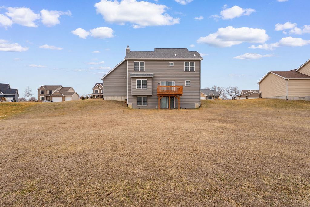 Hello there. I'm the house you've been scrolling for. I've got 5 roomy bedrooms (plenty of space for sleeping, hobbies, or hiding from your kids), 3 1/2 bathrooms so morning routines stay civilized, and a dedicated office for conquering work-from-home days or pretending to. My 3-car garage is ready for vehicles, bikes, tools, or the collection you swore wouldn't get this big. Step outside and you'll find my deck, perfect for grilling, coffee sipping, and sunset unwinding. My flat backyard is basically a blank canvas for soccer games, a future pool, or the world's most competitive cornhole tournament. I live in the sought-after Pebble Creek subdivision, conveniently close to TBK, great restaurants, quick interstate access, and the brand-new St. Joan of Arc school. Even better, I'm proudly located in the Pleasant Valley School District-a big win for anyone thinking long-term. So if you're looking for a home that's roomy, welcoming, well-located, and just charming enough to brag about, well, I might be the one. I'll keep the deck ready just bring the grill and good company.