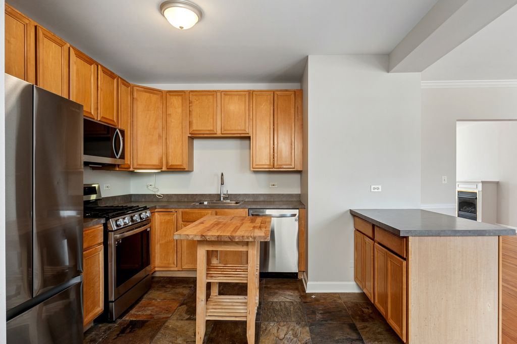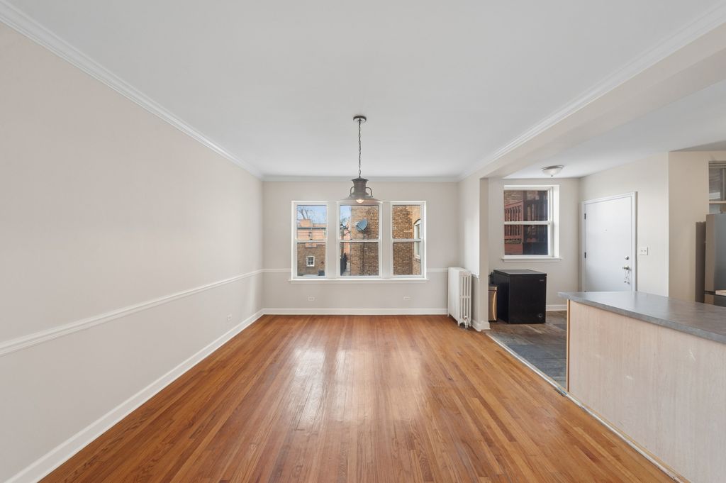 Bright and spacious 2-bedroom, 1-bathroom condo with full size in-unit laundry! This charmer is located on a charming residential street in Chicago's desirable Rogers Park. This inviting first floor walk up unit offers a comfortable layout with extremely generous room sizes, abundant natural light, and beautiful hardwood floors throughout the main living spaces. The large living room flows seamlessly into a separate dining area, creating an ideal setting for both everyday living and entertaining. The kitchen features ample cabinetry and counter space as well as a movable island cart that is included for ultimate functionality. Both bedrooms provide great closet storage and flexibility for guests, a home office, or additional living space. Enjoy the convenience of a great walkable location! Close proximity to parks, neighborhood shops, restaurants, public transportation, and Lake Michigan. A wonderful opportunity to enjoy classic Chicago living in a vibrant and convenient location.