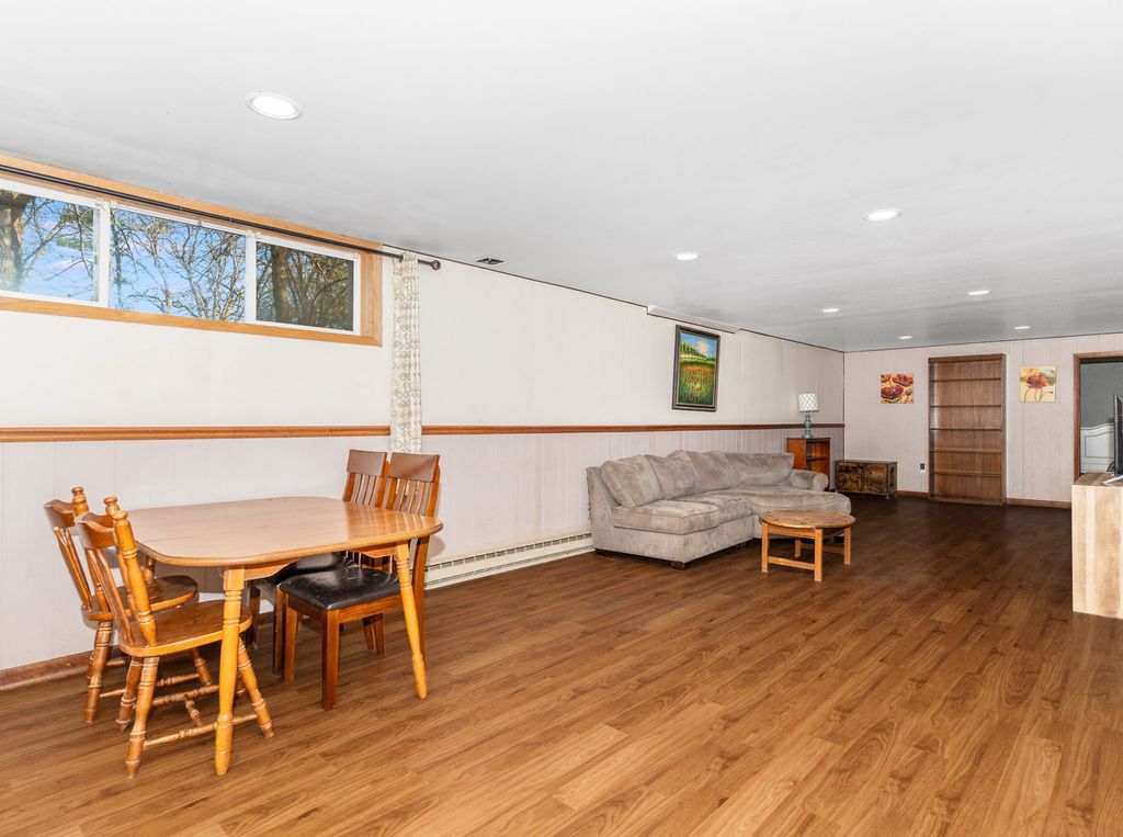 Welcome to this charming ranch-style home offering the comfort of small-town living in the western community of Hinckley. From the moment you arrive, the mature trees and peaceful cul-de-sac location invites you straight up to the covered front porch of this sprawling home. Step inside to a spacious entryway and discover beautiful wood flooring that flow throughout the main level. The inviting living room features a custom brick fireplace and stylish built-in shelving, perfectly blending character with today's design trends. The kitchen offers plenty of options for gathering-separate dining room, eat in kitchen table and a breakfast bar - abundant counter space with all appliances included and the patio door that leads directly to the backyard, making indoor-outdoor entertaining easy. The primary suite has its own private full bathroom - then two additional bedrooms and another full bath are down the hall plus a large laundry room with cabinetry and utility sink adds convenience and functionality completes the main level. Head downstairs to the expansive basement recreation rooms offering plenty of space for relaxing, entertaining, or hobbies. The lower level also includes a fourth bedroom, an additional full bathroom, and a den area perfect for a home office or flex space. A generous storage room provides plenty of extra space. The home also includes an oversized 2.5-car garage featuring two separate service doors, direct entry into the home, and attic storage. Situated on a large lot, the fully fenced backyard is ready for summer fun with a brand-new wood deck (2025) and an above-ground pool, perfect for relaxing or entertaining all summer long. This home combines space, comfort, and small-town charm-a wonderful place to call home. New roof, front door, sliding back door and all new windows 2021. Schedule a private showing today.