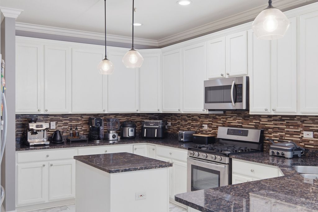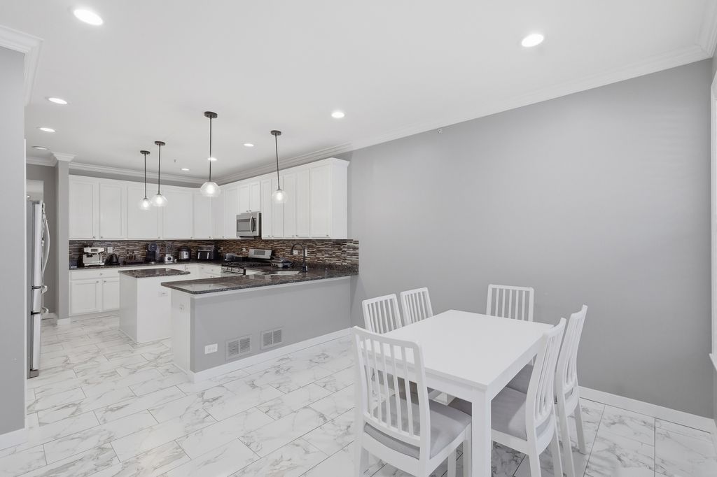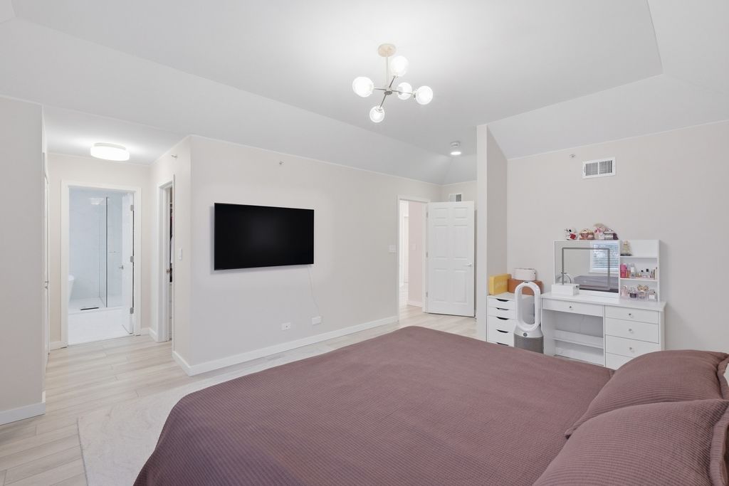 Welcome to this stunning end-unit townhouse-duplex in the highly desirable Hampton Knoll Subdivision, perfect for anyone who values and appreciates a modern, luxurious home. This residence is one of the largest models in the community, offering an impressive layout and thoughtful upgrades throughout. Step inside to find beautiful flooring that flows seamlessly through the entire home. The spacious, updated kitchen features granite countertops, 42" custom cabinets, and stainless steel appliances, making it an ideal space for cooking and entertaining. A stylish staircase leads to the second floor, where you'll find a versatile loft area-perfect for a home office, playroom, or relaxing lounge space. The upper level also offers two large bedrooms in addition to the impressive primary suite, complete with a vaulted ceiling, generous walkin closet, and a luxurious ensuite bath featuring a soaking tub, separate shower, and double sinks. The second full bathroom also includes double sinks and a beautifully updated shower. A convenient secondfloor laundry room adds to the home's practicality. The professionally finished basement provides even more living space, highlighted by a custom bar and an additional full bathroom, making it perfect for gatherings or guest accommodations. Enjoy outdoor living on the deck and large concrete patio, ideal for summer relaxation and entertaining. Recent home updates completed between 2022-2023 bring a fresh, modern feel throughout the property. These improvements include fully renovated secondfloor bathrooms and a remodeled powder room, offering contemporary finishes and elevated style. The kitchen has been refreshed with updated cabinetry, and the entire home features new light fixtures, flooring, and fresh professional interior paint. The staircase has also been beautifully refinished, enhancing the home's overall elegance. Low association fees make this home even more appealing. Located just minutes from shopping, restaurants, the Schaumburg Library, playgrounds, parks, and close to Woodfield Mall, this home offers unmatched convenience. Easy access to I90 and I290 makes commuting a breeze. Situated within a quiet neighborhood, this property is also served by highly rated schools, including J.B. Conant High School. This elegant and spacious duplex/townhouse truly has it all-you will love living here!
