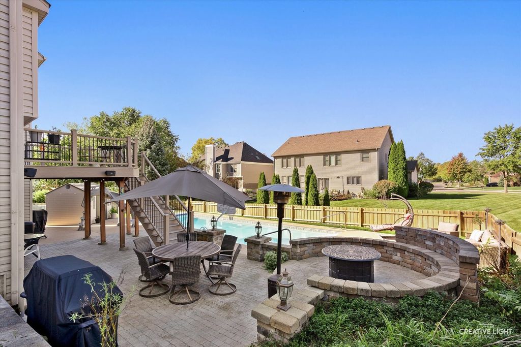 Welcome to this beautifully maintained home in one of Batavia's most sought-after subdivisions. Offering 3,210 square feet of living space, this spacious residence features 4 bedrooms, a first-floor office, and thoughtfully designed living areas perfect for both everyday living and entertaining. The home is filled with natural light thanks to soaring vaulted ceilings and expansive windows, creating a warm and inviting atmosphere throughout. The finished walk-out basement offers the ultimate hangout space, highlighted by a stunning custom wood bar and plenty of room to relax or entertain guests. The upgraded 2nd kitchen is a standout feature, complete with an oven, refrigerator, and warming drawer, making it ideal for hosting gatherings or preparing family meals. Step outside to your private backyard retreat, featuring a beautiful in-ground pool-perfect for summer entertaining, weekend relaxation, and making lasting memories. Located in a fantastic Batavia subdivision, this home combines space, comfort, and lifestyle in a truly exceptional setting. Safety cover for inground pool that is electronic. Please note the grass area to the right of the home on the corner is part of the property. Dishwasher 2021, oven/range 2022, refrigerator 2024, garbage disposal 2020, Water heater 2020, AC & Furnace 2024, water softener 2021, Fencing 2023, Sprinkler system 2005, Driveway fully replaced 2023, Roof& gutters 2025, All basement kitchen appliances except refrigerator and dishwasher 2021, Sliding glassdoor in kitchen 2020, Trex deck 2024, and rebricked the patio 2023.