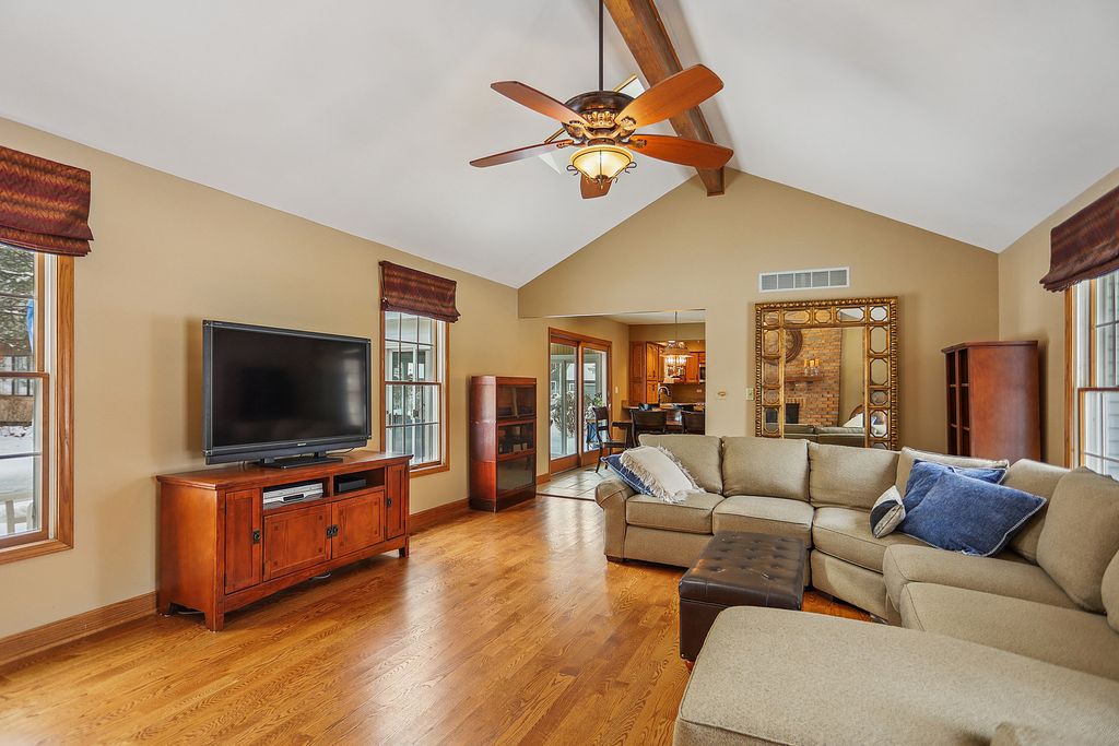 FORE! GOLF LOVERS! Big, bright & beautiful colonial style 2-story is proudly perched on huge corner cul-de-sac lot, is walking distance to Lincoln Oaks Golf Course and head-turning curb appeal! Enjoy peaceful morning walks while weaving through the golf course in this uniquely designed subdivision! Mint condition home features 4 bedrooms, 2.5 baths including full master suite with walk-in closet. Main level features large living room, formal dining room, powder room plus large eat-in kitchen with dining area, granite counter & breakfast bar & stainless appliances. Sliding patio doors off the breakfast room lead to peaceful, sun-filled Florida room with more sliding patio doors to cement patio, where you can grill dinner on summer evenings! Dramatic main level family room with soaring vaulted ceiling & woodburning FIREPLACE with gas starter for cozy winter nights too! Main level features freshly refinished hardwood floors and solid oak 6-panel doors. Upstairs you'll find a massive master bedroom suite that spans the entire depth of the house from front to back. Soaring vaulted ceiling, his & her closets, large master bath with soaker tub plus separate shower. Second upstairs full hall bath features double sink, ceramic tile shower, laundry chute & huge linen closet. 3 additional generous sized bedrooms are all upstairs also with hardwood flooring & 6-panel oak doors. Massive unfinished basement plus crawl space for storage galore, attached 2.5 car garage enters into main level laundry room. Make this one YOURS in time for summer and be the envy of your friends & family!