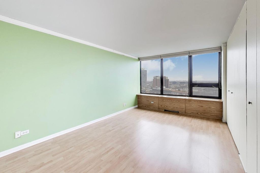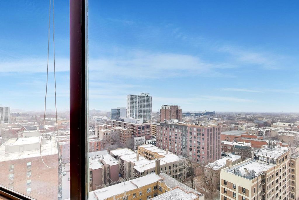 Bright and spacious 17th floor 1 bedroom with sweeping southwest city views and incredible natural light through a full wall of windows. Located in highly desirable Lake Park Plaza, this home offers a large open living and dining area with wood flooring throughout and generous space for relaxing or entertaining. The kitchen includes granite countertops, stainless steel appliances, ample cabinet storage, mosaic tile backsplash, and a convenient breakfast bar that opens to the living space. The bedroom is well sized with excellent closet storage, and the bathroom features granite counters with a vessel sink. Full amenity building with 24-hour door staff, on-site management, newly renovated fitness center, tennis and basketball courts, sundeck with outdoor pool and BBQ area, fenced dog run, party room, package room with resident notification. On site garage parking available. Pet friendly building. Laundry and storage are both on-site. Monthly assessment includes everything except electric. Prime East Lakeview location just steps to the lakefront, Wrigley Field, CTA, shopping, dining, and nightlife and easy access to express buses on Marine Drive and the Sheridan Red Line.