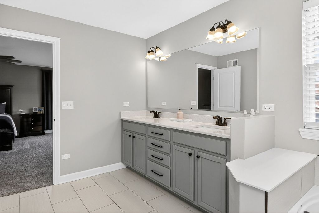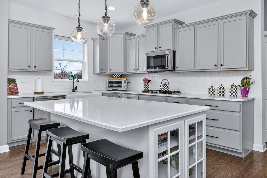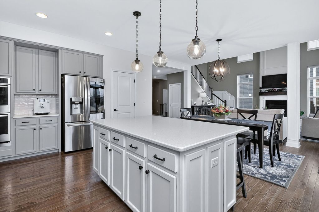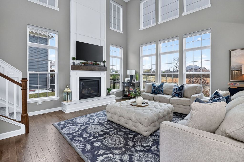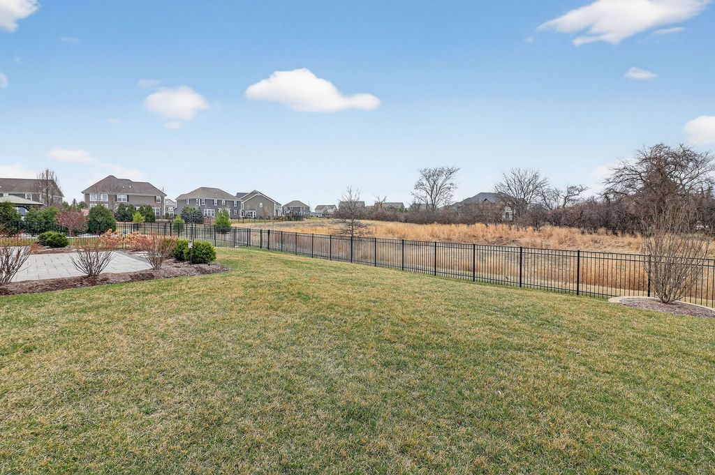 Welcome to 13751 Buchanan Drive, where high-end luxury meets impeccable design. Situated on a premium sized lot in highly desired Kettering Estates, this home has it all. This upscale home shows like a model. The open floor plan is thoughtful in its design...spacious yet comfortable, making this home an ideal choice. No expense was spared in this masterpiece. Upon entry, you will be amazed as you take in the stunning two-story foyer. Modern light fixtures illuminates the space drawing your attention to the one of a kind, floor to ceiling custom wainscot accent wall. Rich, dark hardwood flooring runs throughout the entire first floor and completes the space that leads to the spacious formal dining room. The dining area exudes natural elegance; deluxe customized cabinetry has been installed adding elevated sophistication and class. Walk through the hallway to find the roomy first floor office/den. Upgraded solid double doors opens into the room. The large windows provide nice views of the great backyard. Steps away from the office/den is the upgraded gourmet eat-in kitchen. Complete with many high-end finishes, the kitchen is a chef's dream...white quartz countertops, modern light fixtures, recessed lighting, a farmhouse sink, sizable island with ample storage, beautiful custom cabinetry with crown molding, a coffee bar and luxury appliances. The walk-in pantry provides additional storage and organization. Separated by gorgeously unique wrapped columns, the family room is truly awe inspiring. In this two-story great room, floor to ceiling windows allow for natural light to pour into the space. Motorized custom window treatments help control light and temperature exposure in the area. The upgraded electric fireplace adds warmth to the space complimented by luxuriously upgraded millwork from mantle to ceiling. Finishing off the first floor is a half bathroom and an extra flex space suitable to be used as you desire. Dual staircases lead to the second floor. Generous loft space precedes entry to three spacious bedrooms, each with their own walk in closets. The primary suite is a sanctuary all its own. The grandiose bedroom provides comfort and tranquility perfect for restful nights. An equally massive walk in closet is equally impressive. The luxe, spa-like primary bathroom provides an oasis of relaxation and respite. Beautifully laid flooring, posh soaker tub and an upgraded oversized walk-in shower makes this space a retreat that cannot be outdone. Back downstairs, you'll find the massive full unfinished basement with rough-in plumbing...a blank canvas with unlimited opportunity to make your own. The three car garage has upgraded epoxy floors providing a durable finish and ease of maintenance. Once you are done inside, enjoy quiet mornings and peaceful evenings on the comfortable front porch or in the professionally landscaped fenced backyard with finished patio providing a panoramic view of open land behind the home. The location of this home is ideal...close to parks, recreation, forest preserves, lakes and shopping. This home has it all. There is nothing left to do but move in!