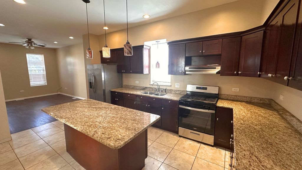 This 4-bedroom, 1-bath home offers 1,008 sq ft of comfortable living space with high ceilings and a functional layout. Step inside to a large living room featuring dark wood floors and oversized windows that fill the space with natural light. The main level includes two bedrooms with generous closet space and high ceilings that add to the open feel of the home. The kitchen is exceptionally spacious and designed for everyday living and entertaining. It features granite countertops, tile flooring, modern stainless steel appliances including a gas cooktop with oven range, and extensive cabinet and counter space. A large pantry provides additional storage. The full bathroom is located just off the kitchen and includes a large tub and updated finishes. Toward the rear of the home is an additional room with its own closet that can serve as a fourth bedroom, office, or study, with direct access to the backyard. The second level includes two large bedrooms, including a spacious primary bedroom overlooking the front of the property and another bedroom with views of the backyard. Outside, the home features a classic brick exterior, a private backyard, and a detached 2-car garage with convenient alley access. The property sits on a quiet residential block with ample street parking and neighborhood businesses and restaurants just steps away. Located in Chicago's East Side neighborhood near the Indiana border, the area offers a strong sense of community and easy access to Lake Michigan and Calumet Beach. Residents enjoy neighborhood parks, local events, and the character of a historic working-class Chicago community while still being connected to the city.