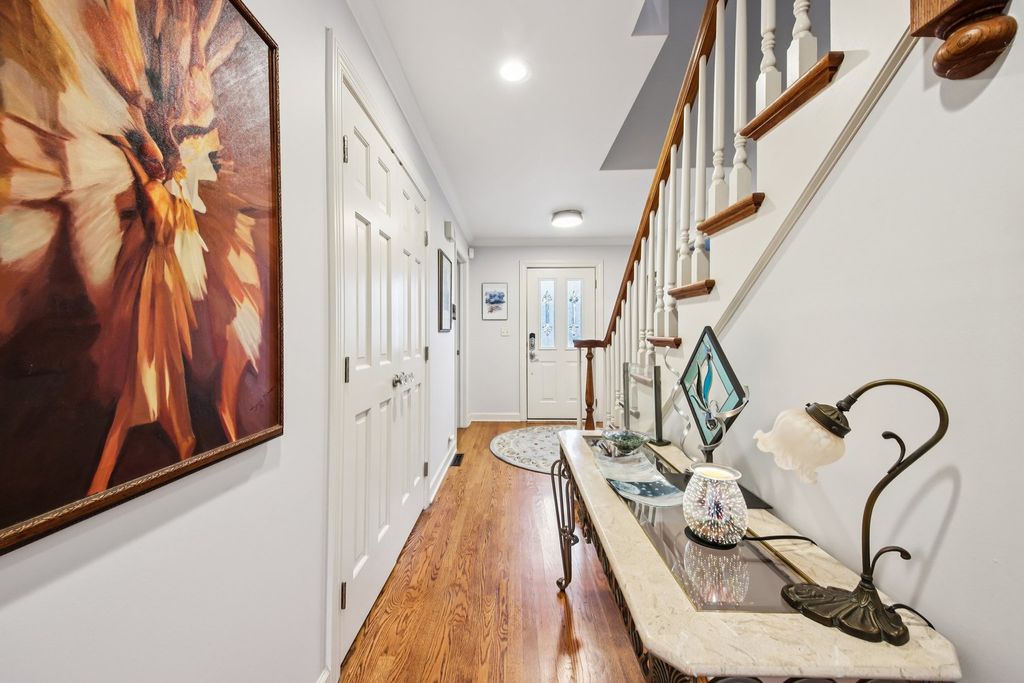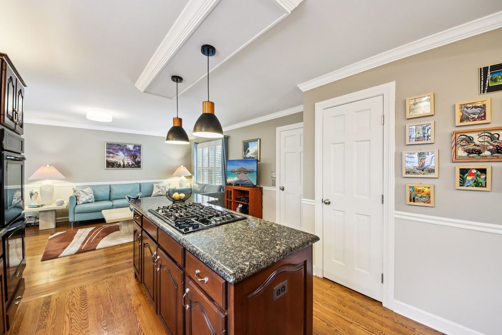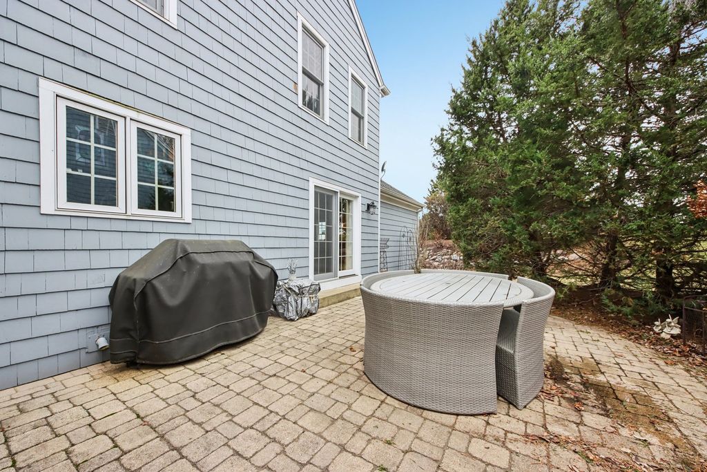 Opportunities like this are rare in a neighborhood where homes seldom come on the market. This beautifully maintained custom-built residence offers an exceptional blend of quality and craftsmanship. The home features three spacious bedrooms and two bathrooms. The living room showcases 9-foot ceilings and a striking brick fireplace. Elegant finishes including hardwood flooring and crown molding add warmth and sophistication throughout the main living areas. The well-appointed kitchen is ideal for cooking and gathering, featuring cherry cabinetry, granite countertops, a center island, a breakfast bar with cooktop, and a double oven. The first-floor primary suite serves as a private retreat, complete with a walk-in closet and a luxury bath offering double sinks, a whirlpool tub, and a separate shower. Additional highlights include a partially finished basement with abundant storage. Step outside to enjoy the brick paver patio set within professionally landscaped grounds with mature trees and a sprinkler system. For added convenience and security, the home includes a Vivint security system, Ring doorbell, Nest thermostat and DogWatch underground dog fence system with two collars. This exceptional home combines location, quality, and comfort-an opportunity not to be missed.