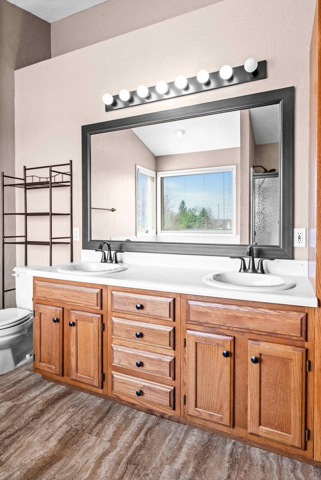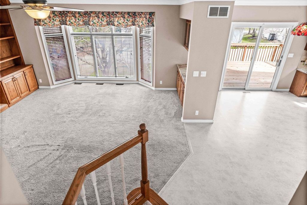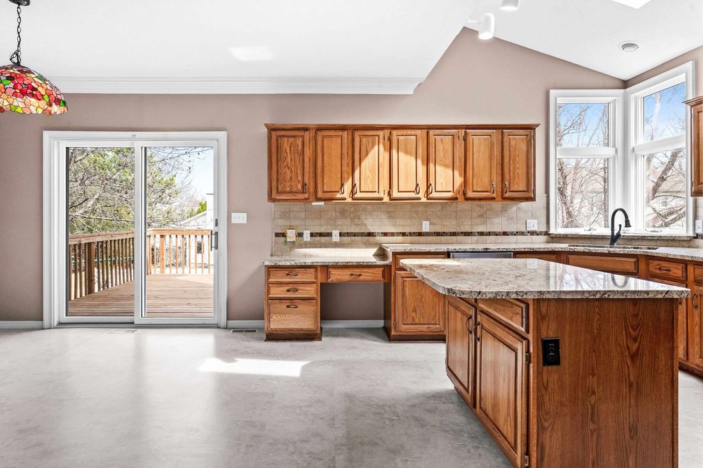 Warm and inviting 2-story on desirable Eagle Ridge cul-de-sac in the Northpoint Elementary Unit 5 school district. Accented by natural daylight on each floor, this popular Kaisner plan features vaulted ceilings, crown molding, generous rooms, and a full finished walk-out basement, creating an airy, spacious feel. An updated open kitchen-with granite counters, a breakfast bar island, a corner sink surrounded by wraparound windows, stainless steel appliances, and a pass-thru service bar flows seamlessly into the family room, ideal for everyday living and entertaining. Upstairs, the sunlit primary bedroom features a bay-window wall, his-and-hers closets, and a garden tub with a separate shower. Outdoor living shines with a 12x16 deck off the kitchen, covering the ground-level patio below. Home features and improvements include durable WilsonArt flooring in the kitchen, a smartly positioned laundry/mud room off the garage, a lower-level 8 x 12 finished closet/storage, and a spare office/play or hobby room, which adjoins the 42 x 20 recreation room in the walk-out basement. An additional 500 sq ft of unfinished storage completes the space. Roof (2009), Trane HVAC (2009) w/humidifier (2016), carpeting (2016/2019), Fence and deck (2022). Northpoint Elementary, Kingsley JH and NCHS.