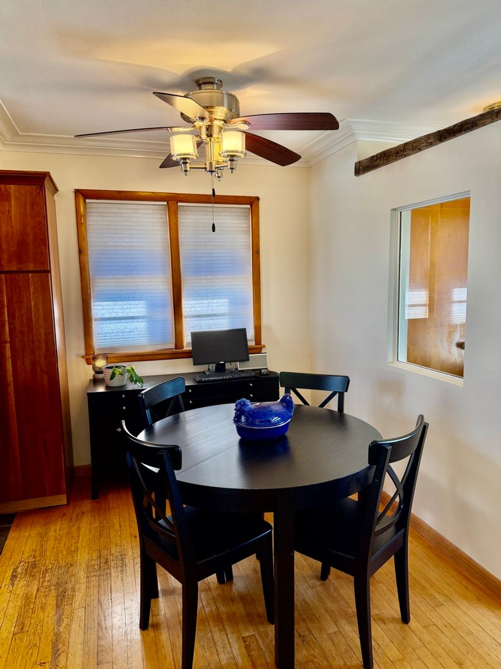 Located in South Villa Park and belonging to School District 88, this 1957 solid brick ranch is a rarely available opportunity on a block where homes seldom hit the market. This cozy residence serves as a great starter home or the perfect fit for someone downsizing or looking for the ease of single-floor living. The home is truly move-in ready, featuring a brand-new roof installed in 2025 and a freshly painted interior 2026. The layout includes three bedrooms and two bathrooms, with the kitchen and bath renovated in 2018. Hardwood floors run throughout the main level, while the finished basement provides valuable additional living space. Notably, the home retains its architectural charm with the original 1957 classic Mid-Century Modern aluminum storm windows, featuring pristinely maintained geometric "diamond and bar" embossing on the bottom rail. Outside, the property includes a concrete driveway leading to a 2.5-car garage and a large backyard suited for entertaining. The location puts you within a mile of the village's most popular landmarks and recreation hubs. You are approximately 0.8 miles from the Illinois Prairie Path, with easy access to the Great Western Trail and the splash pad at Lufkin Park. This neighborhood is home to the Villa Park Public Library, the Villa Park Historical Society Museum, and the historic Ovaltine site. Commuters will appreciate the proximity to the Villa Park Metra Station on the Union Pacific West line, which provides a direct link to downtown Chicago. Local dining options near the restored train depot are all within reach, offering a balance of established residential character and community amenities.