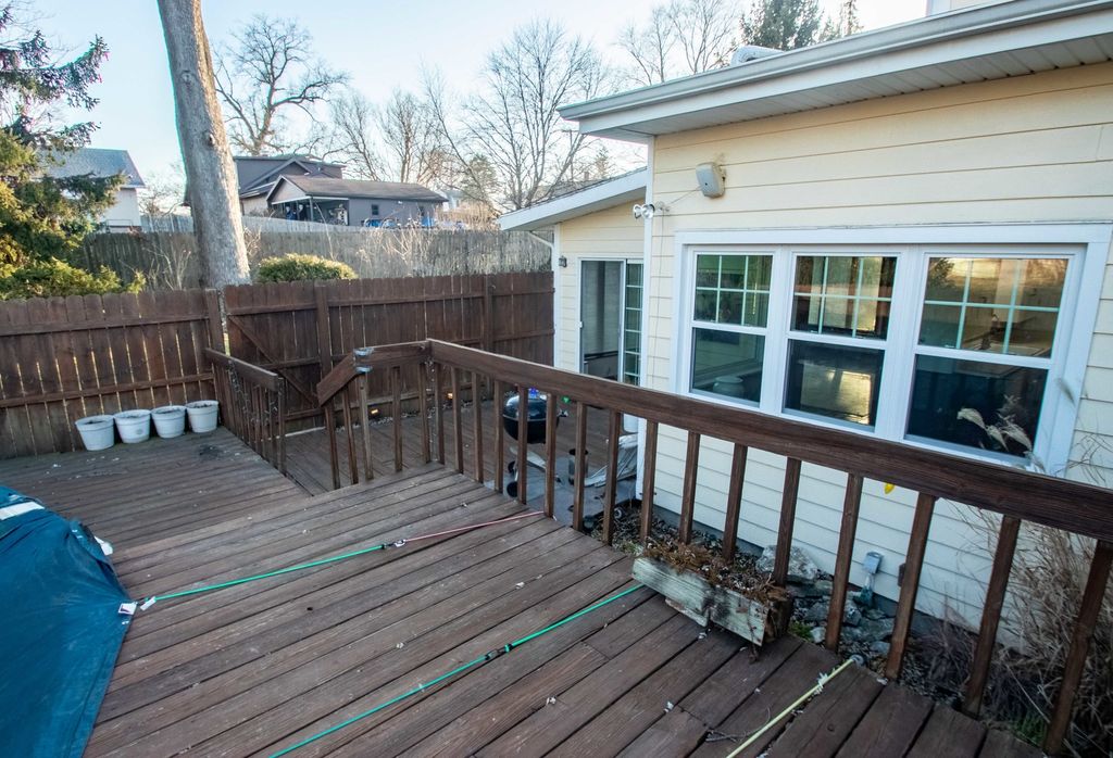 This charming 4-bed, 1-bath home offers space, character, & thoughtful updates throughout. Freshly painted throughout every room and hardwood flooring hidden beneath the carpet in most areas, ready to be revealed. The recently updated kitchen provides modern convenience while maintaining the home's classic appeal. The cozy living room features a beautiful wood-burning fireplace, perfect for relaxing evenings. Enjoy the best of indoor-outdoor living in the gorgeous sunroom, with sliding glass doors that lead directly to the deck and above-ground pool - an ideal setup for entertaining or unwinding on warm summer days. The main floor includes two comfortable bedrooms and a full bath, complete with a convenient laundry chute that leads to the basement laundry area. Upstairs, you'll find two additional bedrooms, including one with an oversized walk-in closet that provides access to generous attic storage space. The basement is unfinished but offers excellent usable space for storage, hobbies, or future potential. Major updates include a new HVAC system in 2022 and a roof replacement in 2010, including the flat roof over the sunroom. Outside, you'll love the herb garden near the garage, offering a wonderful variety of seasonal herbs. For added convenience, the sellers are leaving a grill, mower, wheelbarrow, and extension ladder in the garage. Being Sold AS IS.