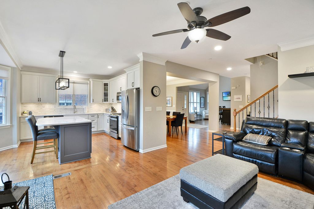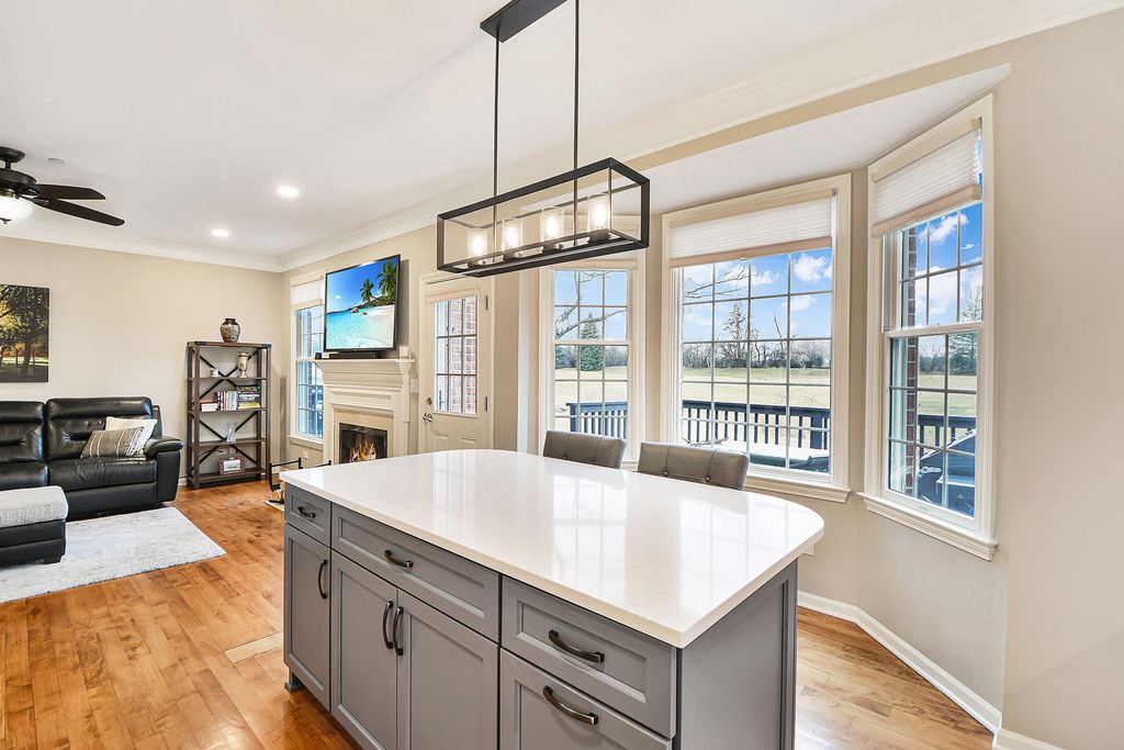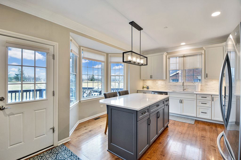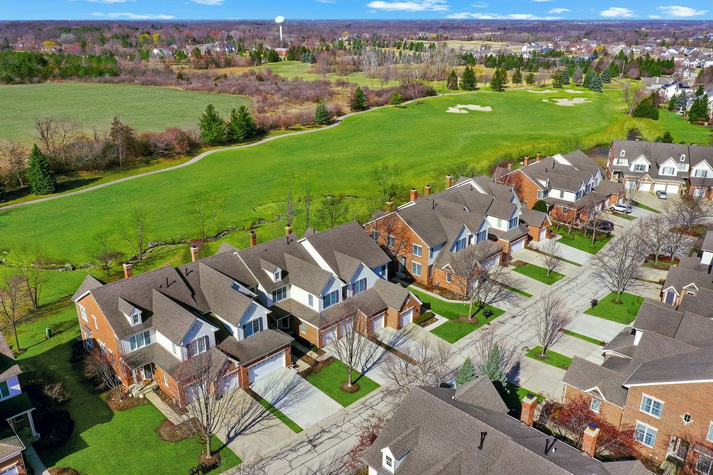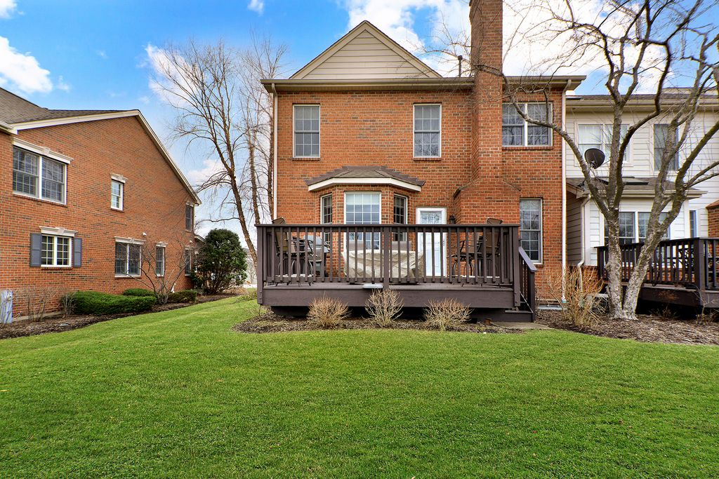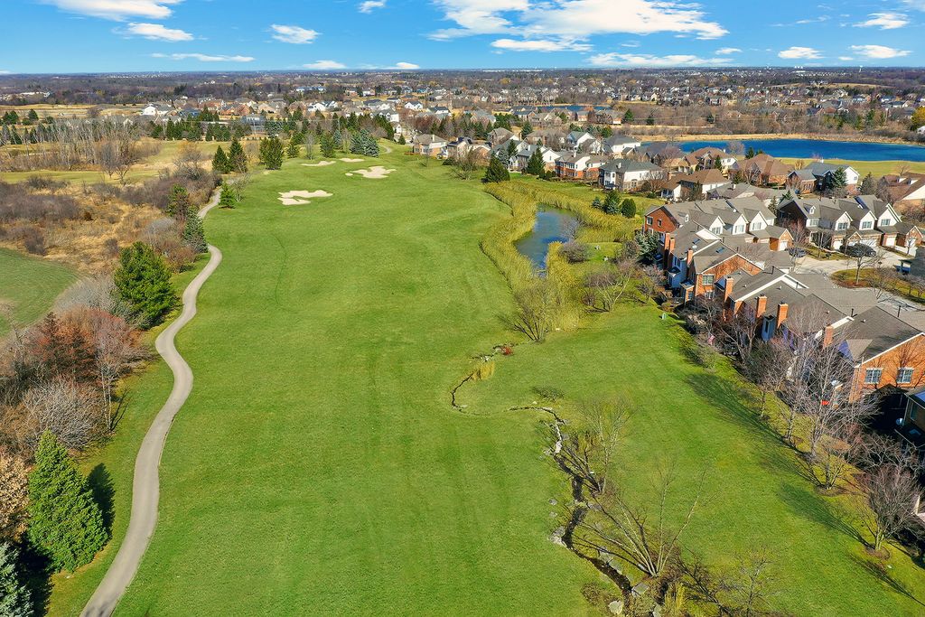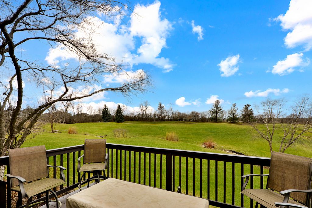 WOW!! Rarely available original Toll Brothers built 3 story, Lindenhurst model townhome. Perfectly positioned along the 8th hole in prestigious Hawthorn Woods Country Club, this rarely available end unit townhome offers breathtaking golf course views, sophisticated finishes, and an exceptional lifestyle in one of the community's most desirable locations. From the moment you step inside, the home welcomes you with soaring vaulted ceilings, rich hardwood floors, new elegant crown molding, and an abundance of natural light that fills the beautifully designed open floor plan. Every space has been thoughtfully curated to blend comfort, style, and effortless entertaining, from the living room to the dinning room. The fully renovated white Chef's kitchen is truly the centerpiece of the home, featuring custom white cabinetry, spectacular oversized custom quartz countertops, stainless steel appliances, trending details and features, and generous dining space framed by a charming bay window overlooking the scenic fairway. The kitchen opens seamlessly into the inviting family room where a classic wood burning fireplace creates the perfect setting for cozy evenings and memorable gatherings. Step outside to your private deck overlooking lush fairways and peaceful natural surroundings, where mornings begin with tranquil views and evenings end with spectacular sunsets across the golf course. Upstairs, the primary suite offers a serene retreat, complete with vaulted ceilings, beautiful golf course views, and a spacious private bath with double vanity, whirlpool soaking tub, and separate shower. Two additional bedrooms and a full bath provide comfortable space for family and guests. The professionally finished lower level adds an entirely new dimension of living and entertaining space, showcasing a spacious second family room, game area, custom wine cellar, stunning full bath with designer shower, and a large laundry room. With 9 foot ceilings, wood plank style ceramic tile flooring, and abundant storage, this level is both functional and beautifully finished. Recent updates including fresh paint, new carpeting, crown molding accents, and thoughtful upgrades throughout make this home truly move in ready. Residents of Hawthorn Woods Country Club enjoy an unmatched resort style lifestyle featuring a championship golf course, clubhouse, pool, tennis courts, fitness center, dining, and vibrant year round social activities. A rare opportunity to experience luxury, comfort, and breathtaking golf course views in one exceptional home.