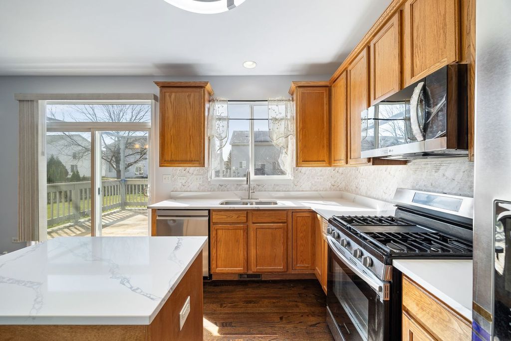This spacious home in the desirable Lakewood Grove community of Round Lake offers unparalleled comfort and a functional layout perfect for modern family living - 4 bedrooms and a family room upstairs, an office on the main floor, and 2.5 bathrooms. Full basement ready to be finished. The whole house has been freshly painted. The kitchen features a brand new countertop, new appliances, and a light fixture. The top floor has professionally cleaned carpet. The spacious primary suite offers a private bath and a walk-in closet, while the additional bedrooms offer flexibility for family, guests, or a home office. The laundry room on the top floor provides additional convenience. Great outdoor space off the kitchen is perfect for relaxing or hosting gatherings. 3-car attached garage. Located in a sought-after neighborhood with access to community amenities including a pool, clubhouse, parks, and scenic walking paths, and close to shopping, dining, schools, and commuter routes. Fremont/Mundeleine School District. See VIRTUAL TOUR