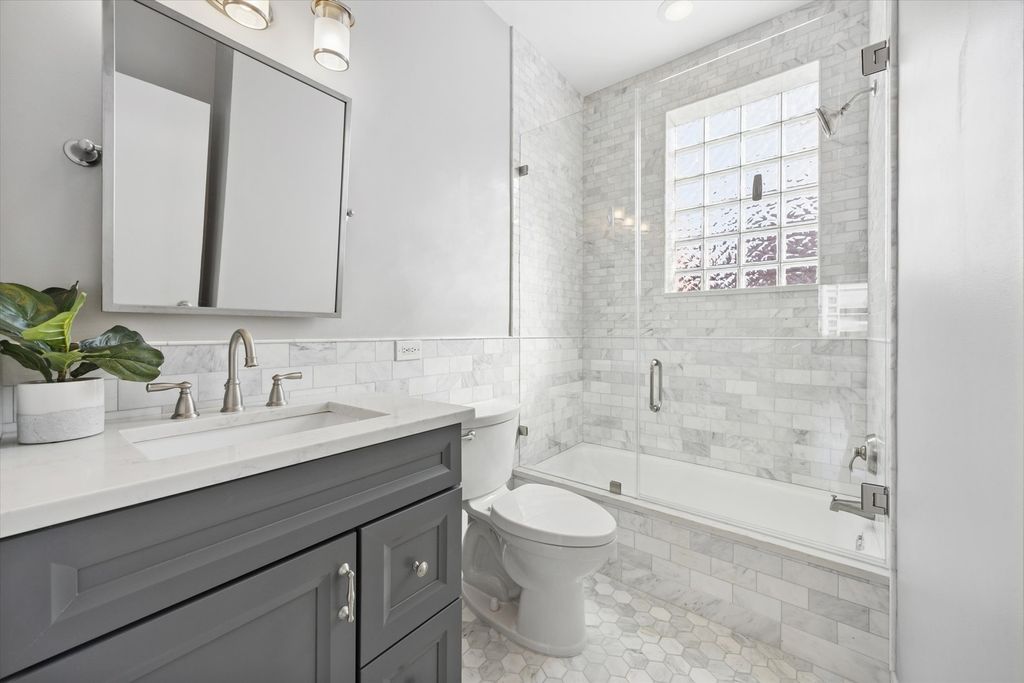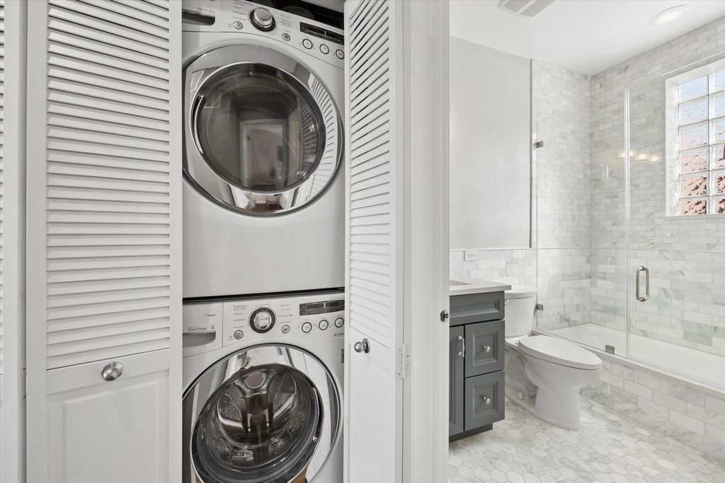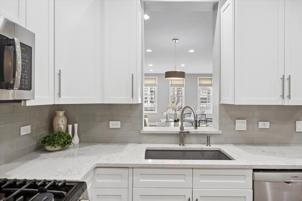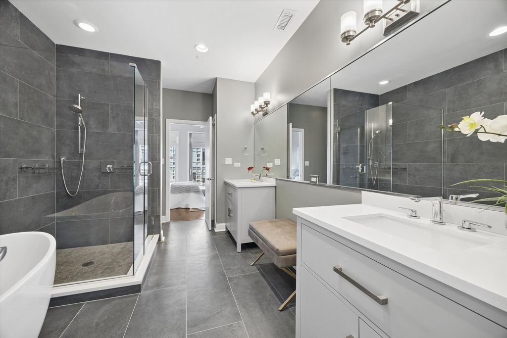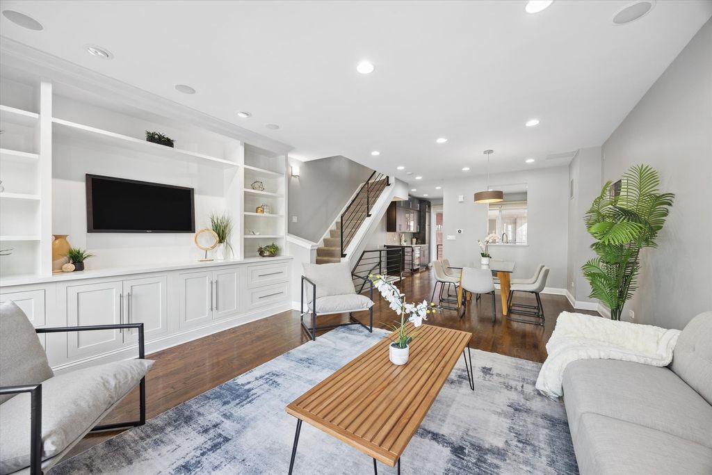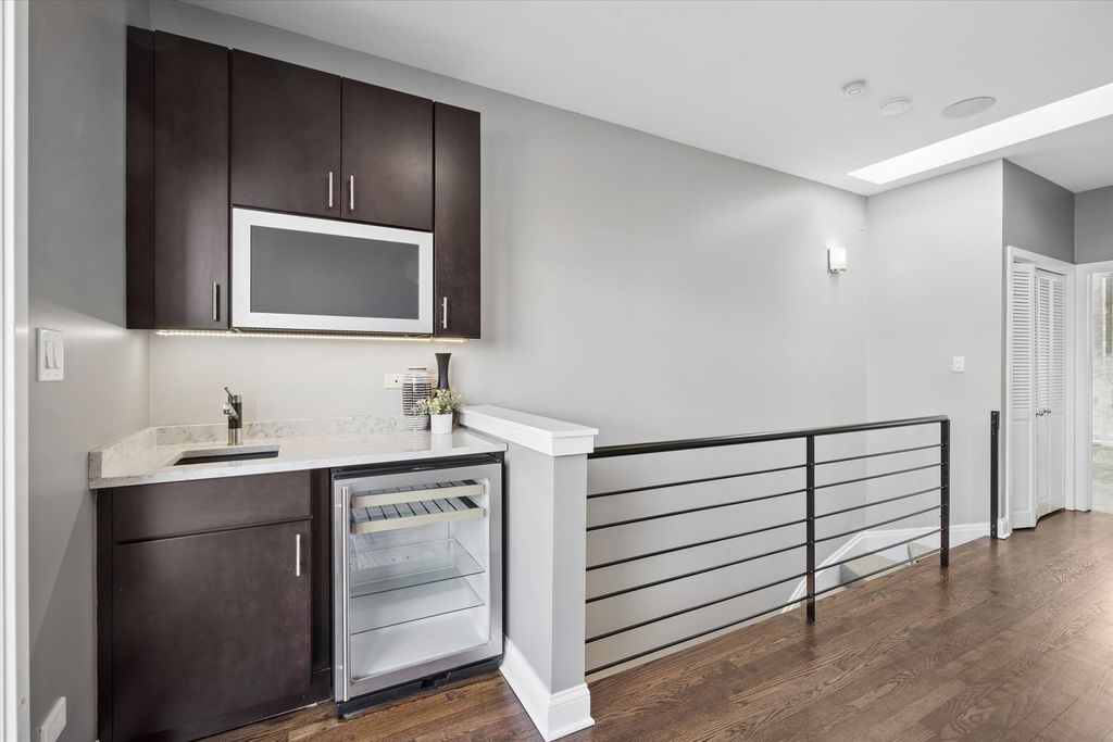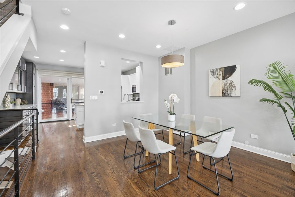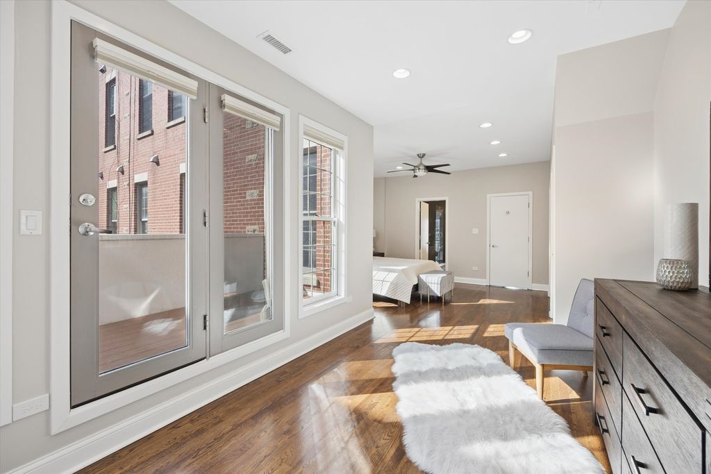 Strong multiple offers received. Seller is requesting the highest and best offer by 8:00 PM on March 15th. This stunning 4-bedroom, 3-bath brick end-unit townhome with a 2-car attached garage is ideally located in the heart of the West Loop, within walking distance to Restaurant Row while still offering the privacy and tranquility of a gated residential courtyard setting. The home backs to a beautifully landscaped courtyard, perfect for outdoor play and relaxation. The welcoming foyer with new limestone flooring leads to a first-floor bedroom with an en-suite bath (renovated in 2018), ideal for guests, a home office, or flex space. The sun-filled family room features oversized windows and a custom built-in bookcase, offering beautiful tree-lined views. Hardwood floors flow seamlessly into the spacious dining area and open-concept kitchen. The kitchen was fully updated in 2022 and features quartz countertops, stainless steel appliances, a coffee bar, wine fridge, island seating, and abundant storage. Just off the kitchen is a private balcony, perfect for grilling and outdoor dining. The oversized primary suite includes a sitting/work area, multiple closets, and a spa-like primary bathroom renovated in 2024, featuring dual vanities, a freestanding soaking tub, and a separate glass shower. A private veranda off the primary suite provides the perfect spot for morning coffee. The top floor offers a versatile recreation room with a built-in wet bar, ideal for entertaining, a home gym, or media room, with direct access to an expansive roof deck. This level also includes the fourth bedroom, a full bath (renovated in 2018), and a washer/dryer. Located in the highly sought-after Skinner West School District, and just steps from SoHo House, Mary Bartelme Park, Whole Foods, Starbucks, and the Fulton Market District, this home offers the very best of West Loop living.