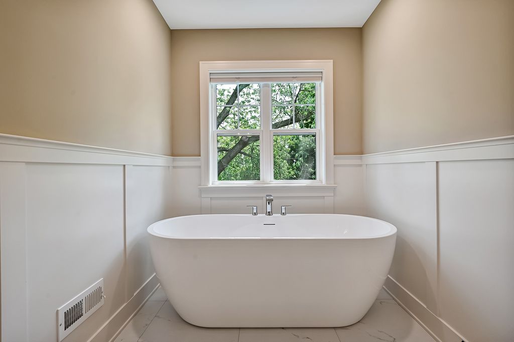 Step into modern luxury with this impeccably designed new construction, just minutes from downtown Clarendon Hills. Perfectly positioned on an extraordinary 60' x 229' lot, this property offers an unparalleled sense of space and privacy rarely found in the area. With approximately 4,300 SF of thoughtfully crafted living space, the home features 5 spacious bedrooms, 4.1 baths, and an array of upscale details. The main level boasts a formal dining room, a private office, and a stunning open-concept kitchen and family room. The gourmet kitchen showcases custom-built white shaker maple cabinets with soft-close drawers, quartz countertops, a large center island, and a premium Thermador appliance package. A walk-in pantry and adjacent mudroom with built-in bench and cubbies add convenience to everyday living. Cozy up in the family room, featuring a remote-controlled fireplace with a natural stone facade and custom wood mantel. Upstairs, the primary suite is a serene retreat with a generous walk-in closet and spa-like ensuite bath, complete with a freestanding soaking tub, frameless glass shower, dual vanities, heated floors, and quartz countertops. Three additional bedrooms, all with oak hardwood floors, include a Jack-and-Jill bath and a private ensuite. The second-floor laundry room, with quartz countertops and premium finishes, adds practicality to luxury. The finished lower level extends your living space with a large entertainment area, guest bedroom, and full bath, plus ample storage. Additional highlights include extensive millwork throughout, custom oak staircases, a two-car attached garage with EV-ready wiring, and a private interior lot featuring a composite deck that overlooks the expansive grounds. Set in a sought-after neighborhood close to top-rated schools, parks, shopping, and dining, this home seamlessly blends sophistication, function, and the luxury of rarely available oversized outdoor living. Anticipated completion is early June-your dream home awaits!