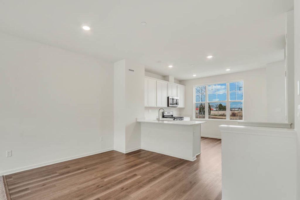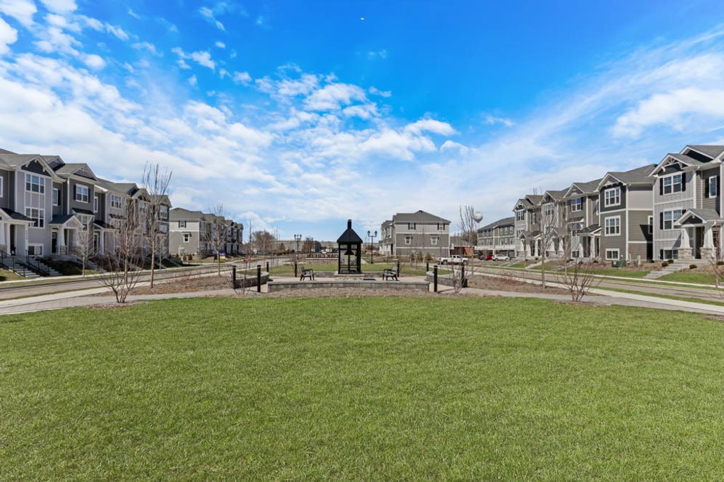 Discover modern living at its finest at 553 Yosemite Way in Mundelein, Illinois, a brand-new townhome in the Townes at Oak Creek community. Ready for you by April, this home includes a fully sodded yard with professional, year-round upkeep as well as snow removal in the winter. Beautiful landscaping greets you as you step into this charming Montgomery townhome with private entrance (N). The flexible floor plan boasts 2 bedrooms, plus an upstairs loft, 2.5 baths, and a finished lower-level flex room, all intuitively spaced within 1,630 square feet of living space. Once inside, you'll be greeted by the flex room, perfect for a home office, playroom, or 2nd family room. This is a home design full of closet space, and here on the entry level, you'll enjoy the huge walk-in closet off the flex room plus a large closet right off the garage. Walking up the stairs, you will find this home's open concept living with 9-foot ceilings and luxury vinyl plank flooring throughout the main level kitchen and dining, and bathrooms. The expansive kitchen is designed with views from the plethora of countertop space with an overhang for stools that overlooks the dining area and flows into the great room. Additionally, your kitchen features Quartz countertops, 42" white cabinetry with soft close doors and crown molding, stainless steel appliances and pantry. The great room leads out to an elongated deck over the 2-car garage. Arriving at the top floor, you'll find the primary suite, second bedroom and loft area with a full second bath, oversized linen closet, and laundry room. Enjoy a spacious primary bedroom suite with a large walk-in closet and connecting en-suite bathroom with Quartz counters, double sinks and a walk-in shower. Our Chicago home includes our America's Smart Home Technology featuring Smart Home Features. Photos are of a similar home. Actual home built may vary.