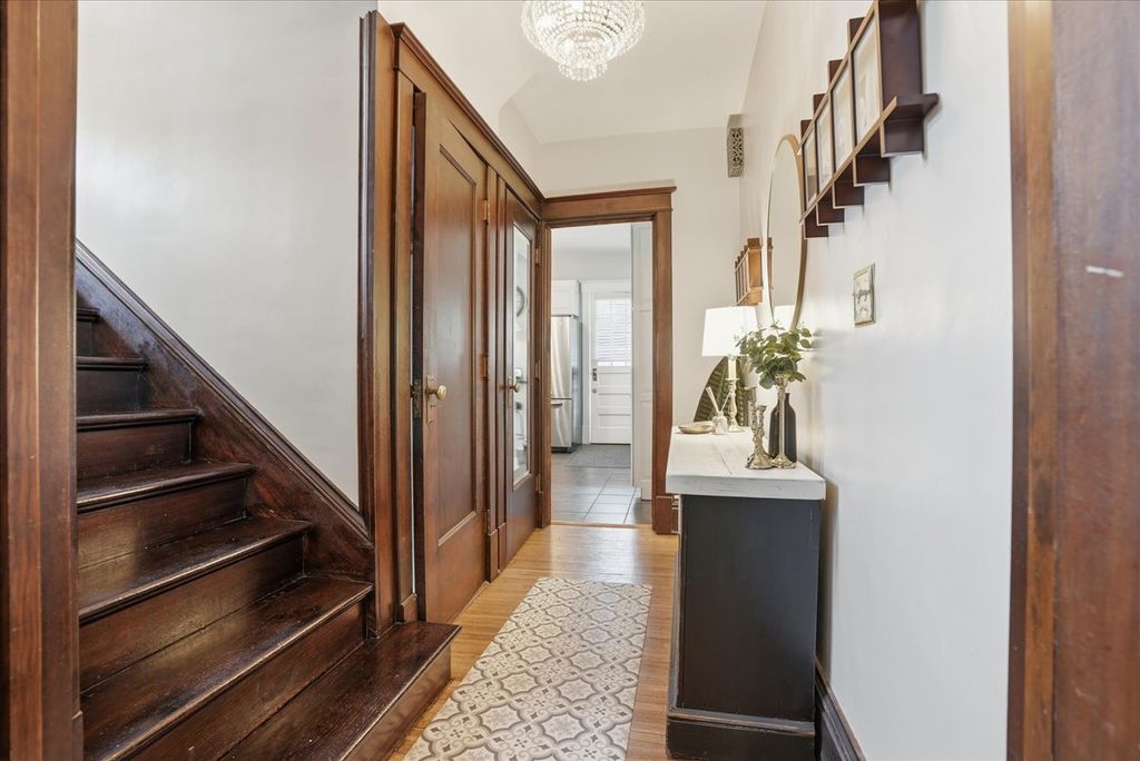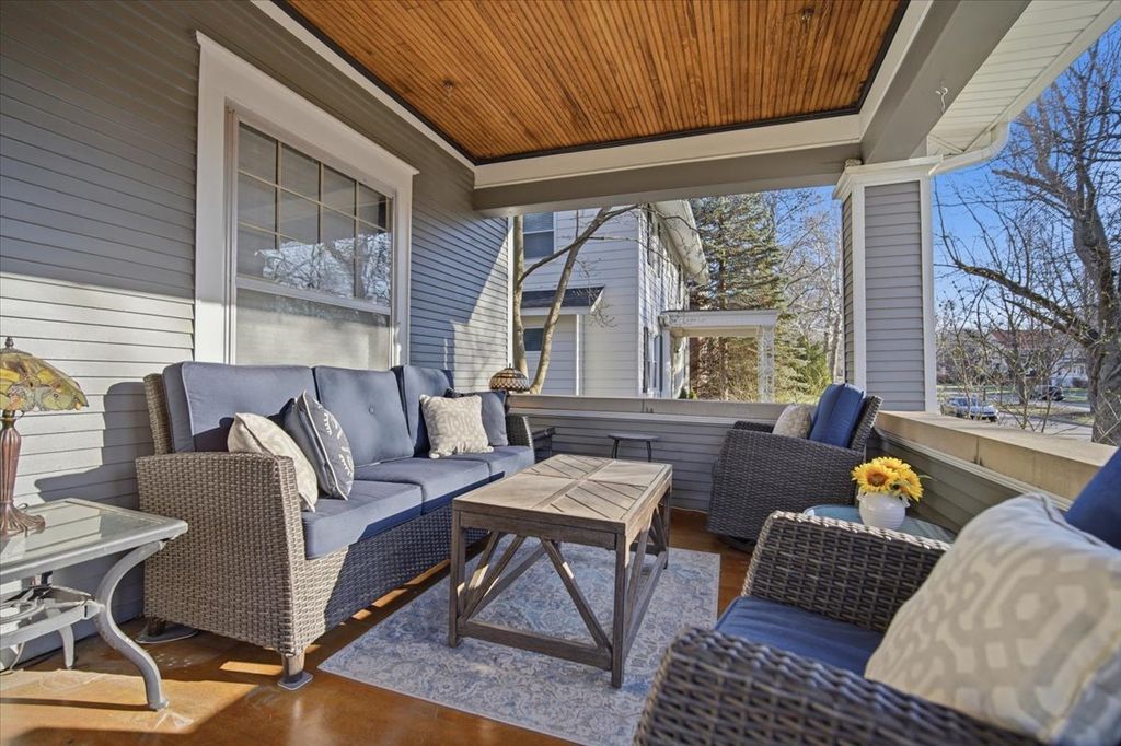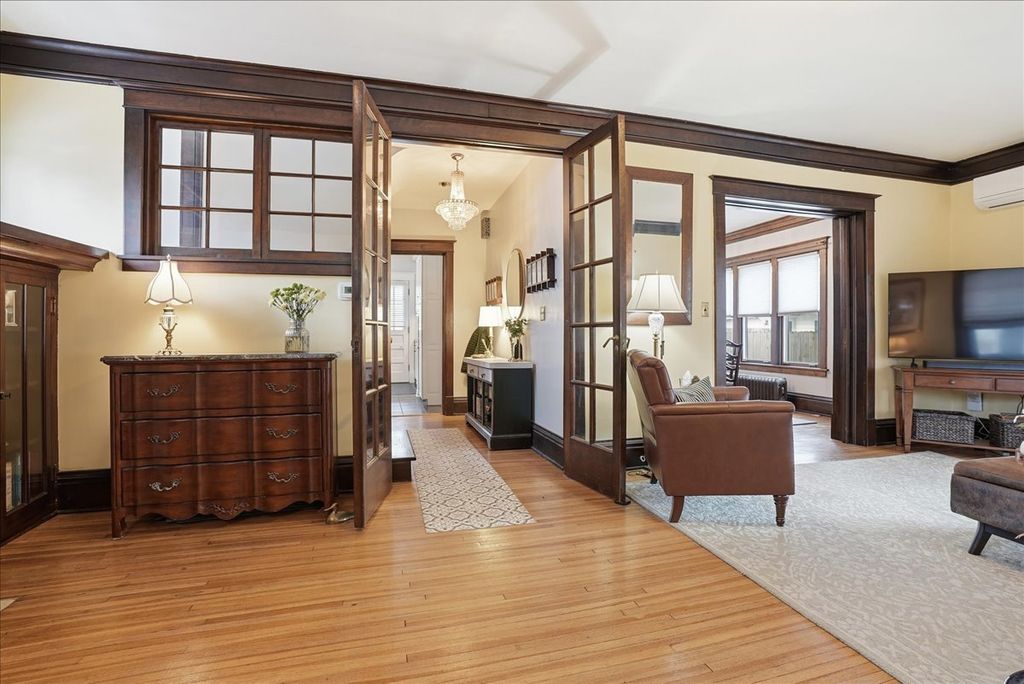This beautiful 4-bedroom, 1.5-bath Sears American Foursquare home is located on the charming and highly sought-after Clinton Boulevard. Lovingly maintained by the same owners for the past 33 years, this home has been exceptionally well cared for and showcases timeless character throughout, including stunning original millwork, built-ins, and hardwood floors. Enjoy the inviting open front porch-perfect for morning coffee or relaxing on a swing during warm summer evenings. Enter through the front door and you are immediately welcomed by rich hardwood flooring and exquisite woodwork. The living room features gorgeous glass-front built-ins on either side of a tiled fireplace and mantel, while the spacious designated dining room also offers elegant built-in cabinetry. The eat-in kitchen is equipped with stainless steel appliances, solid counter tops and tall white cabinets with crown molding-blending modern convenience with classic charm. An updated half bath completes the main level. The second floor offers three bedrooms, all with hardwood flooring, along with an updated full bath featuring a subway tile shower. The sleeping porch, accessible from the hallway, provides great potential for future use. Plumbing is easily accessible, offering the possibility for a future primary bath and/or second-floor laundry. The finished third-floor walk-up attic adds valuable living space, including a large family room and a fourth bedroom-ideal for guests, a home office, or flex room. The fully fenced backyard features a side patio-perfect for relaxing, grilling, and entertaining. Additional highlights include a one-car garage with a newer door and a freshly poured concrete driveway with space for three additional vehicles. This is a stunning Foursquare home and has been beautifully maintained over the many years and is now ready for its new owners to call this place home. Recent updates to the home include-Hot Water Heater '26, high efficiency boiler '25, mini split AC system w/heat pump '25, aluminum fence and gate '25, driveway '25, microwave and range '24, gutters, gutter guards '24 and aluminum soffits June 2020, Garage gutters and soffits painting '20, paint exterior of home '20.
