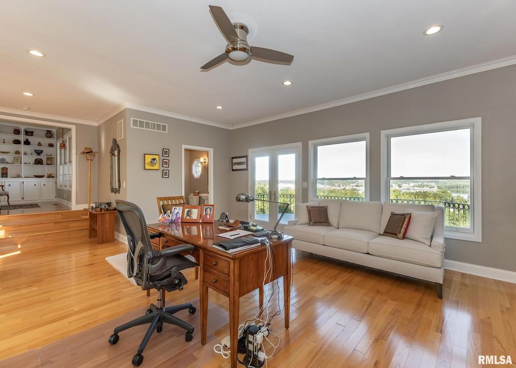 High up on the bluff, with panoramic views of the Mississippi River. Why postpone happiness? This one-of-a-kind, era 1920 home, features all the great amenities, for todays lifestyle. 3 bedrooms, private hallway to the primary bedroom suite with full bath, 2 walk in closets. Beautiful kitchen, cherry cabinetry and granite countertops. Large gathering island large eat in dining area. Formal dining opens up to the sweet, sitting room & grand staircase! Updated Hardwood floors, throughout the entire home. Main floor family room with fireplace, walk out to the Trex deck. Also the additional covered deck, to the private, nicely landscaped, also includes irrigation on the front manicured lawn. You will appreciate the circular drive, 3 car garage. Full basement, great storage and nice epoxy floors. There is a full backup Generac generator (22 kilowatt) as well.