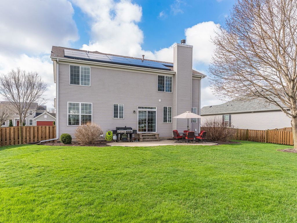 WATERFRONT WONDERFUL ~ SUPER ENERGY EFFICIENT with minimal ELECTRIC BILL and complete with EV CHARGER! Enjoy PEACE OF MIND and say GOODBYE TO POWER OUTAGES with the maintenance free BATTERY BACKUP. Your SOLAR-POWERED house has panel maintenance & repairs included! IMPECCABLY MAINTAINED, this 4 bed, 2.5 bath is in YORKVILLE'S SCHOOL DISTRICT and on a PREMIUM LOT with a FULLY FENCED BACKYARD & Brick Paver PATIO showcasing amazing water views & SUNSETS. Inside you'll LOVE the FIREPLACE, open concept kitchen, FIRST FLOOR laundry, Master en suite that's like your own private retreat, OVER-SIZED water heater and DEEP-POURED, FULL BASEMENT awaiting your finishing touches. Bigger ticket items include: NEW Stainless Kitchen Appliances (2024), NEW Washer & Dryer (2023), NEW LVP wood flooring (2021), NEW ROOF (2018), NEW Fence (2018) and more! BONUS GIFT TO BUYER AT CLOSING: 3 in 1 Pit Boss Memphis Ultimate Combo grill (propane gas, charcoal and smoker). Location can't be beat in sought after Huntington Chase Subdivision with LOW HOA, NO SSA, minutes to I-88, Raging Waves Water Park and nearby dog parks, all to WELCOME you HOME!
