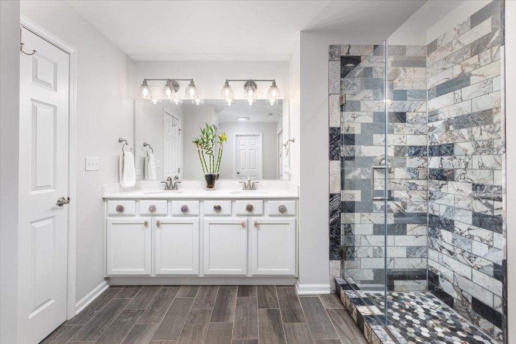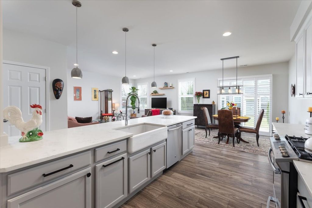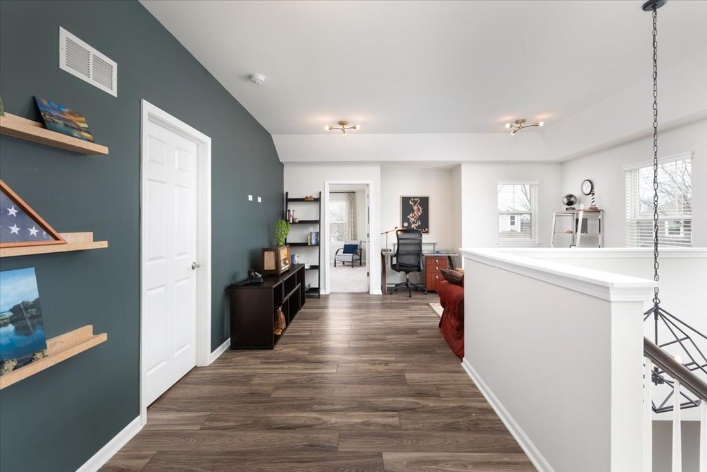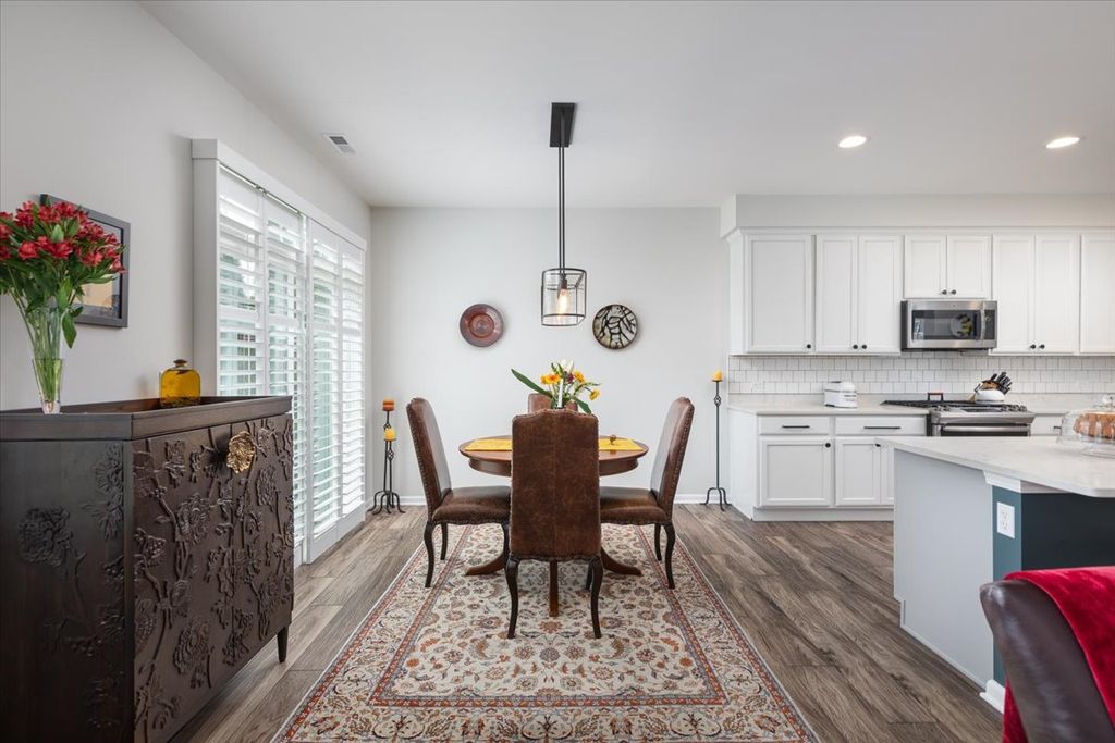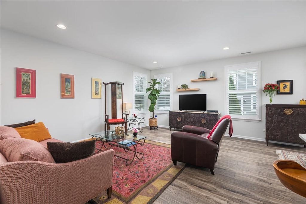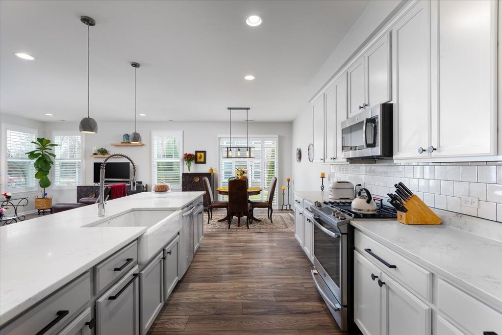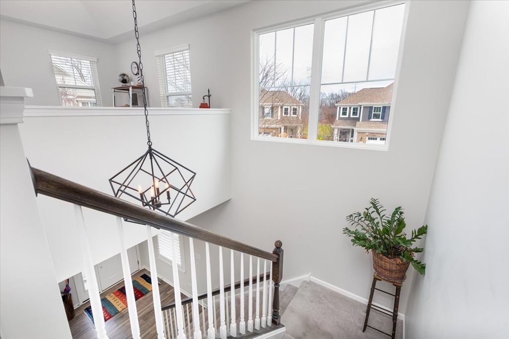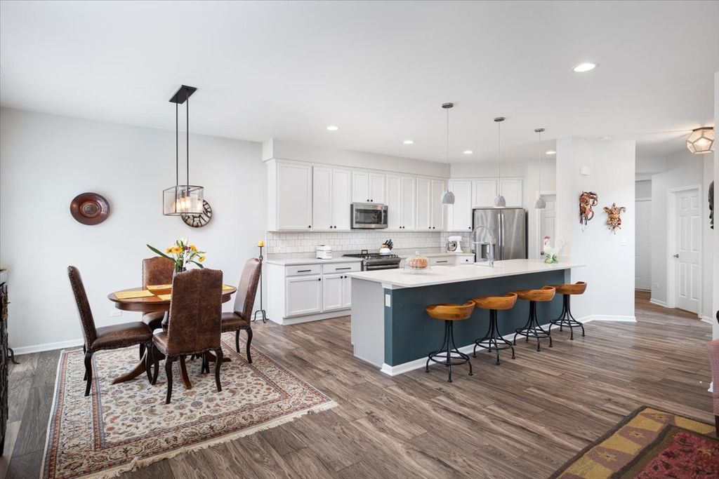 Fantastic end-unit townhome that shows like a brand-new model home, ideally situated on a quiet corner with a beautifully landscaped side yard. Enjoy easy access to Timber Creek Park just down the street, along with the Great Western Trail and Klein Creek Golf Course. Inside, you'll find two huge bedroom suites, a spacious loft, convenient second-floor laundry, and 9-foot ceilings throughout. The entertainer's kitchen is a standout, featuring Merillat custom soft-close cabinetry with updated hardware, quartz countertops, a farmhouse sink, upgraded faucet, custom backsplash, updated lighting, and upgraded GE Profile appliances. The entire home has been recently painted in today's most desirable neutral tones and is enhanced by custom plantation shutters and window treatments throughout. Built with quality and efficiency in mind, this home offers double-pane high-performance Low-E vinyl windows, Kohler and Moen fixtures in all bathrooms, and a durable Hardie Board and brick/stone exterior. Conveniently located with easy access to North Avenue and I-355.