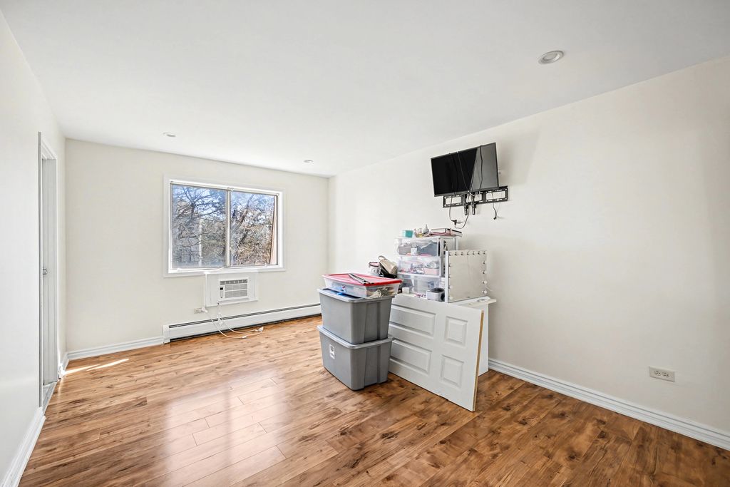 Bright and freshly painted 3rd-floor unit featuring 2 bedrooms and 2 full bathrooms. This inviting home offers laminate wood flooring, recessed lighting, and modern bathroom vanities. The spacious living room opens to a private balcony-perfect for relaxing or enjoying your morning coffee. The functional kitchen layout provides great everyday convenience with a dedicated dining space. Laundry facilities are located in the building, and the unit includes one assigned parking space. Monthly association dues include heat and water, adding great value and predictable expenses. Ideal opportunity for both homeowners and investors. Conveniently located close to shopping, restaurants, and expressway access. Move in ready!