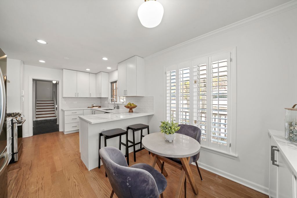 Offering over 3000 sq ft of finished and remodeled home. Nestled in the sought-after Whispering Oaks neighborhood of East Lake Forest is this beautifully renovated 5 bedroom, 2.5 bath home. The main level features a seamless flow anchored by a brand new kitchen with quartz countertops, custom thin shaker cabinetry, a pull out pantry, and chef's hood, along with a cozy coffee nook for early mornings. The adjoining dining area opens to a raised patio, perfect for entertaining or quiet evenings surrounded by mature trees. A spacious living room with a wood burning fireplace, gas starter and an oversized picture window frames stunning views of the private, fenced in half acre yard. Upstairs, four generous bedrooms easily accommodate queen or king beds, including a serene primary suite with dual vanities and a beautifully updated bath and large, glass shower walk-in shower. An additional new full, hallway bath features a 72-inch, dual sink, white oak vanity with tons of storage and modern finishes. Lower level has a great walk-out to the outdoor space right off the family room with a second cozy, wood burning fireplace and a brand new custom dry bar built-in with quartzite slab countertop and vein matching backsplash and beverage center, great for entertaining guests on game days and holidays. The lower level has a additional room for a home-office or a guest suite. Also inclidues, large laundry area with extra storage. The finished basement below adds even more versatility with a playroom, craft area, and workshop space, perfect for hobbies or recreation. Additional highlights include a new furnace and air conditioning, ample storage throughout, and a cedar closet for seasonal items. Just steps from Cherokee Elementary and minutes to downtown Lake Forest, the Metra, and Lake Michigan beaches, this home blends suburban tranquility with everyday convenience you'll love to take advantage of for Summer beach days.