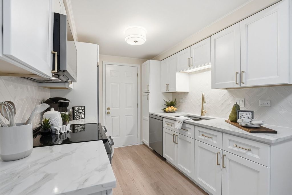 Perfect location to everything in downtown La Grange. Steps to Metra's BNSF line, a short few blocks to renown restaurants, boutique shopping, upgraded movie theater, and more! This first floor 2 bedroom, 2 bathroom unit has been completely updated, including brand new luxury vinyl plank flooring, new kitchen, including LG appliances, gorgeous built-ins at every turn. New electrical, new light fixtures, nearly new everything. Large 5x5 walk-in closet features even more built-ins. Living room offers easy access to the front patio. Primary bedroom features more built-ins in the large closet, wooden blinds with all new en suite bathroom with floating vanity, new light fixtures, new everything. Second bedroom features side-by-side closets. In-unit laundry and 2 parking spaces. Ogden Elementary, Park Jr. High, and Lyons Township HS - all top rated schools. So much to love! Taxes do not reflect homeowner exemption.