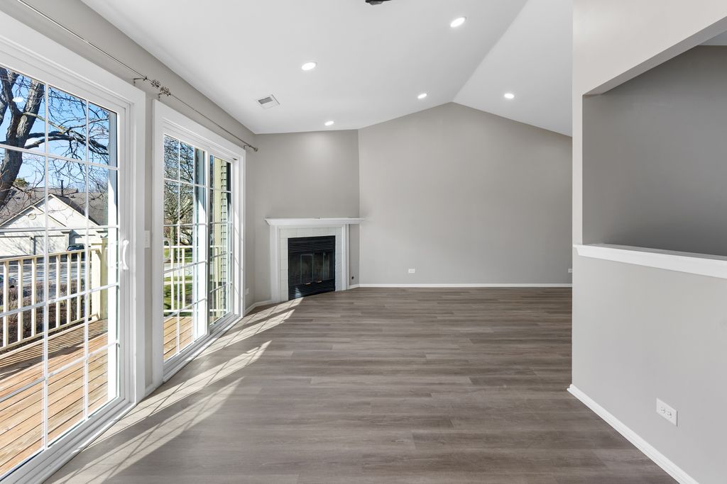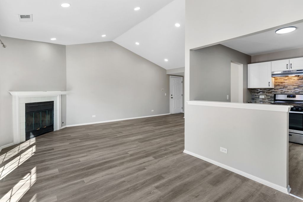 Beautifully updated 2-bedroom, 2-bath second-floor condo in Schaumburg, move-in ready. The fully rehabbed kitchen features new white cabinets, white quartz countertops, a stylish tile backsplash, and a complete Whirlpool stainless steel appliance package, along with a large walk-in pantry offering excellent storage. The home features brand new flooring and has been freshly repainted throughout, creating a bright and welcoming space. The spacious living area includes a cozy fireplace, perfect for relaxing or entertaining. The hall bathroom has been fully updated with new lighting and fixtures. The spacious primary suite includes a walk-in closet and an updated private bath. Additional updates include on-trend lighting installed in 2021, a new deck in 2021, and a water heater replaced in 2021. Washer and dryer were replaced in 2018. The property also includes an oversized garage with extra storage. Investors are welcome. The subdivision offers two outdoor pools and a clubhouse. Located in the Hoffman Estates High School district and conveniently close to shopping, dining, and major highways.