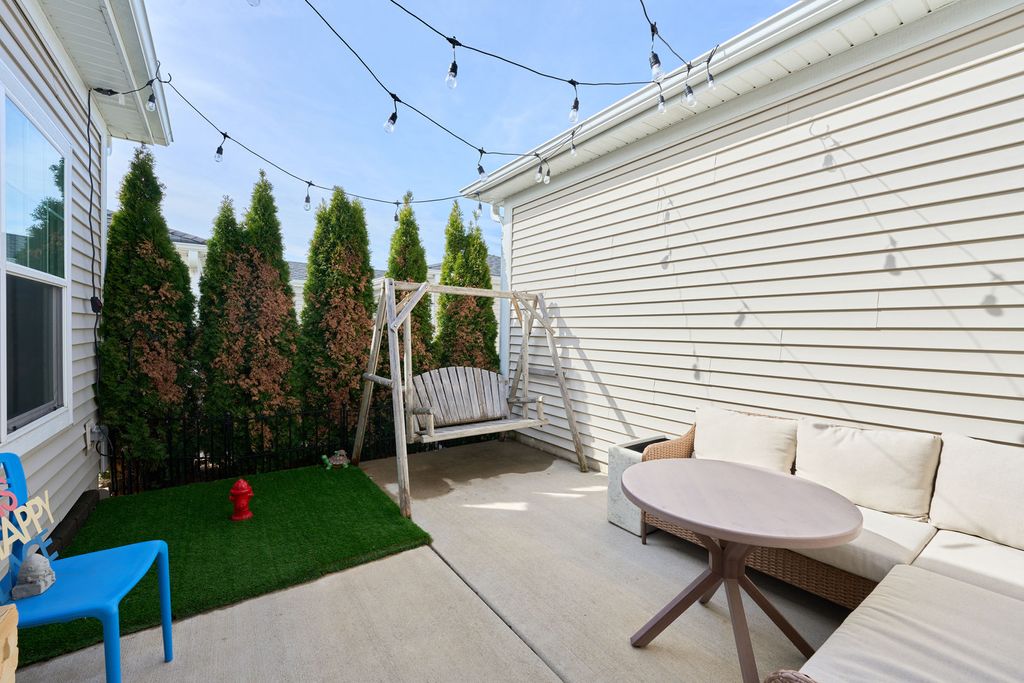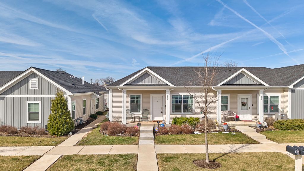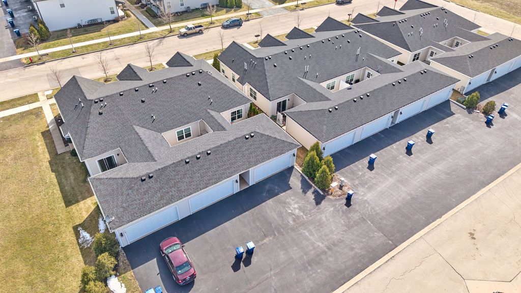 Stunning 2 bed, 2 full bath END-unit, ranch townhome perfectly situated on the outskirts of Cortland! Just one block to Route 38 access you're a quick stop to DeKalb, Geneva, or I88 for commuters. Virtually maintenance-free, this sprawling townhome was thoughtfully built in 2020 with 9 foot ceilings and a fire sprinkler system for peace of mind. The primary comfortably situates a king size bed and all the extra furnishings while still offering a walk in closet and ensuite bath! The primary is thoughtfully situated toward the back of the home with window views facing your private (14' x 14') outdoor courtyard. The kitchen features all granite countertops, stainless steel appliances, MASSIVE pantry with pull-out draws, soft-close on all doors/drawers, built-in garbage/recycle bins and more! The kitchen island measures in at nearly 8.5 feet and comfortably seats 4 situated next to your formal dining and open concept living ideal for entertaining! At the front of the home you'll find your secondary bedroom perfect for a home office, nursery, or guest room with the guest bath located across the haul. The guest bath features a tub surround quintessential for small children and also supplies ample storage with a linen closet. Conveniently attached two car garage with "alley" access in back of townhome is supplied with MyQ smart technology (app enabled). 2025 updates include Blink doorbell, Blink thermostat, ADT Security (door, window, and dampness monitoring), large capacity front loading GE washer (app enabled), garage keypad entry, retractable screen door to patio and many new light fixtures throughout. This home is truly a hidden gem waiting to find it's new owners! Only selling due to unexpected relocation - selling AS-IS.