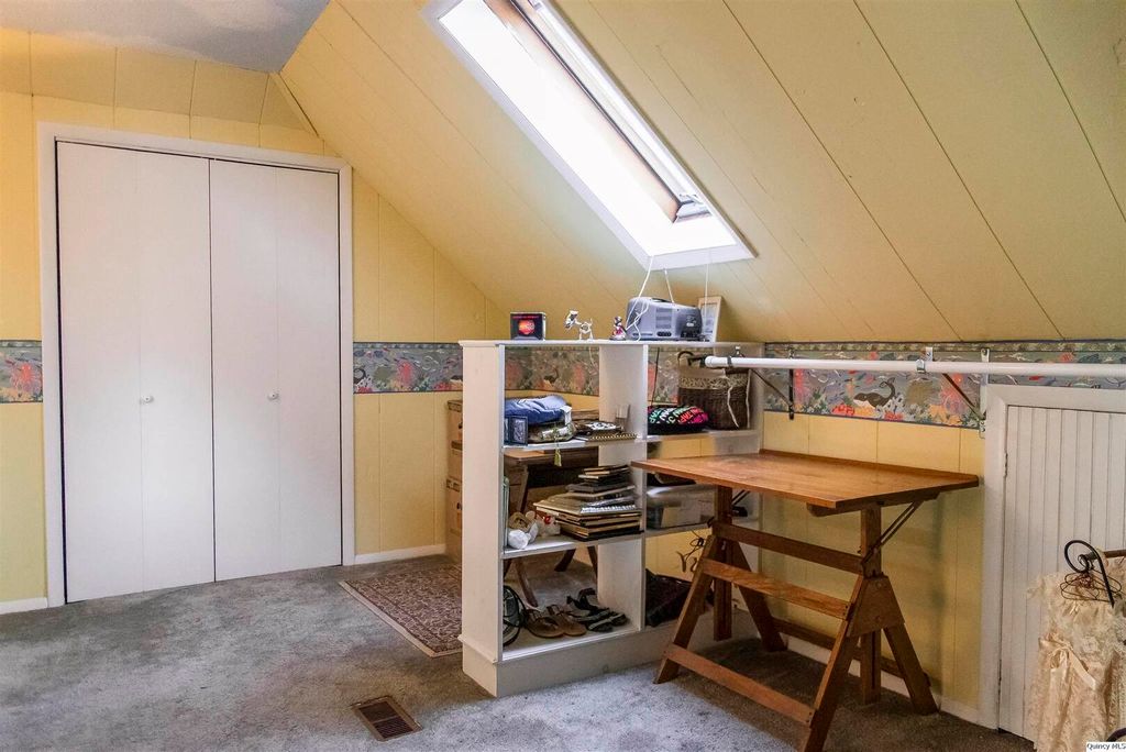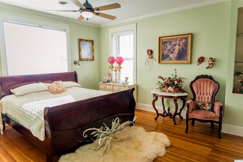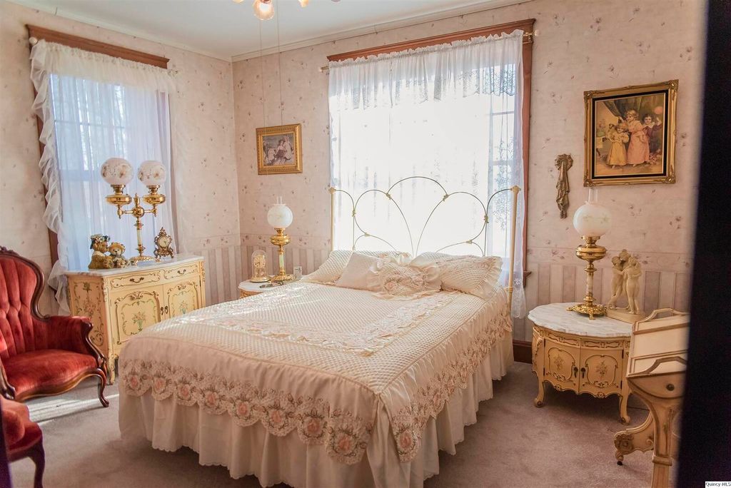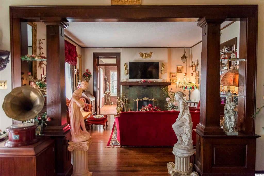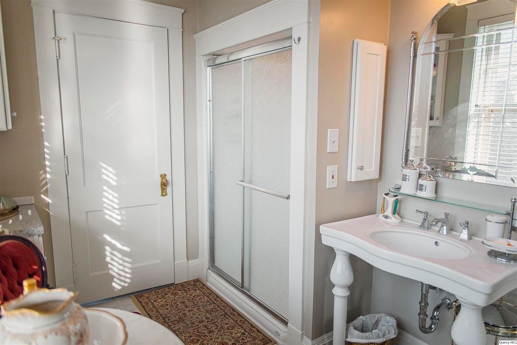 Welcome to 3,333 square feet of impeccably preserved history located in the Quincy East End Historic District. This all-brick, three-story Foursquare seamlessly blends the refined aesthetics of the Arts and Crafts and Prairie styles, from the massive front door and original 1910 foyer chandelier to the pristine original woodwork throughout. The centerpiece is the formal dining room, boasting a 1941 hand-painted mural. While the soul is historic, the systems are new with new electrical panel, wiring and upgrades throughout, professional brick tuckpointing, and new second-floor a/c in 2025. The chef's kitchen is a bright, open sanctuary featuring large windows overlooking the fenced backyard with a spacious patio for entertaining and landscaped with perennial flowers and blooming trees that provide color and privacy nearly all year long. With five bedrooms, 2.5 baths, and an expansive three-story layout, this home offers the space and soul that only a century of history can provide.
