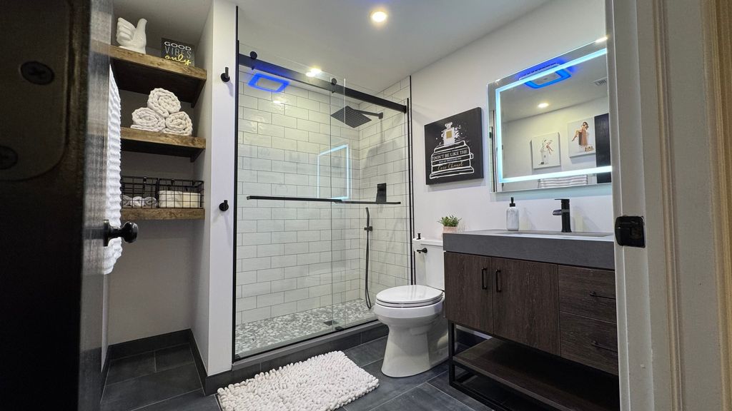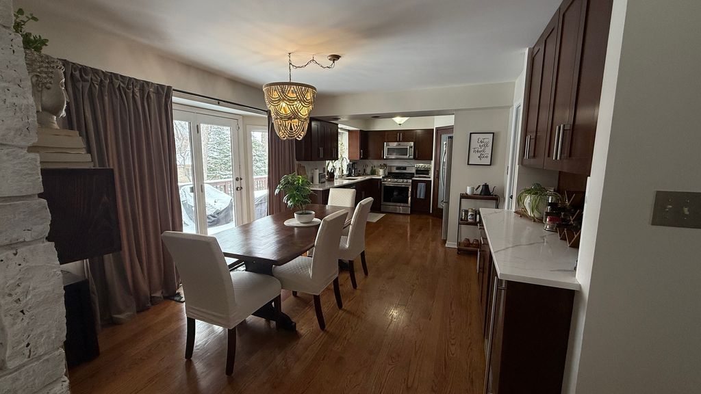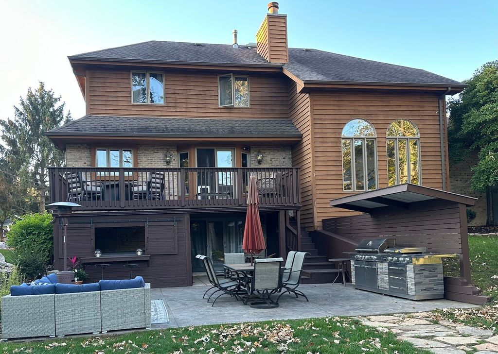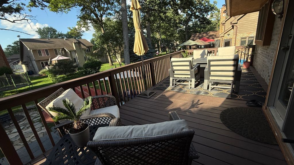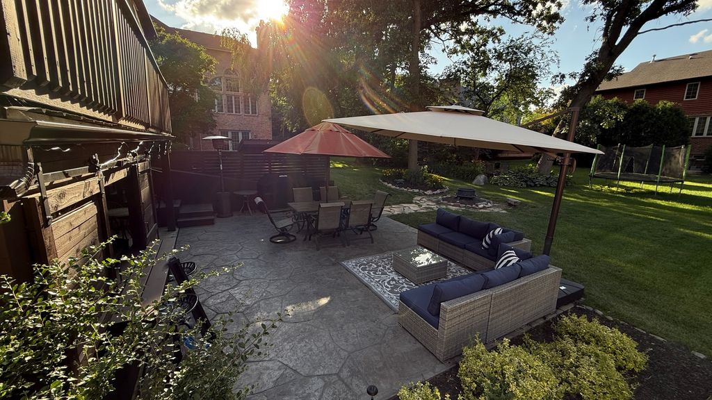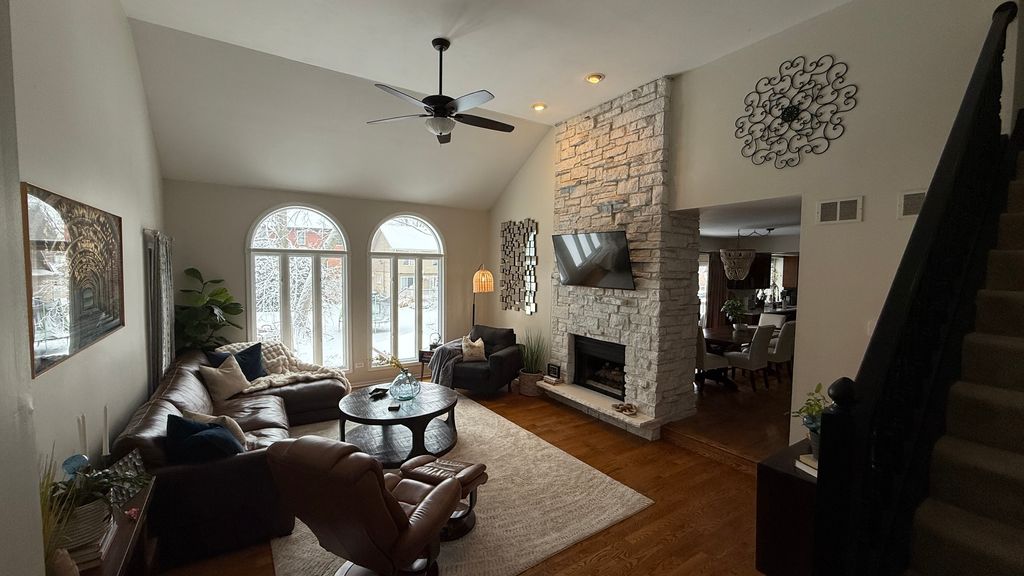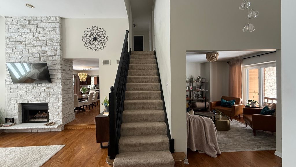 Spacious 5-bedroom, 3.5-bath home set in a quiet, private area near the historic Midlothian Country Club. Surrounded by custom homes, mature trees, and green space, this location gives you privacy without losing convenience. Step into the main level and you'll notice the open feel right away. The main living room features cathedral ceilings, large windows overlooking the backyard, and a double-sided gas fireplace that connects the main living spaces. Wood floors run throughout the main level, giving a clean, updated look. The main-level primary suite is built for comfort, with cathedral ceilings, a walk-in closet, and a private ensuite bath featuring a soaking tub and separate shower. The kitchen includes quartz countertops, pantry space, and easy access to the main-level laundry room. Upstairs, you'll find three additional bedrooms, including one with its own walk-in closet, giving you flexible space for family, guests, or a home office. The walkout basement adds real value. It opens directly to a fully renovated poured patio backyard designed for entertaining. Outside, you'll find a gas hookup for grilling, a hot tub with a privacy surround, and a bar area. Inside the lower level, there's a second full kitchen-ideal for large gatherings or related living-along with a remodeled full bathroom and an additional bedroom with a walk-in closet. The home also includes a Vivint security system with hardware, monitoring capability, doorbell camera, and door sensors already installed. Major updates have already been completed between 2020 and 2024. This home gives you space, updates, and a layout that works for everyday living and hosting.
