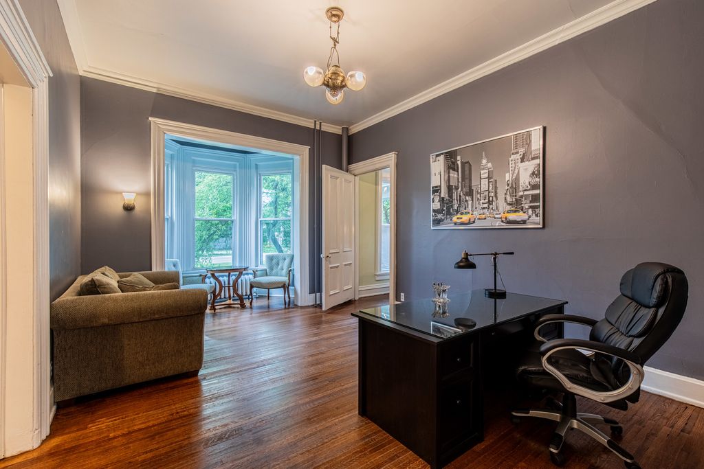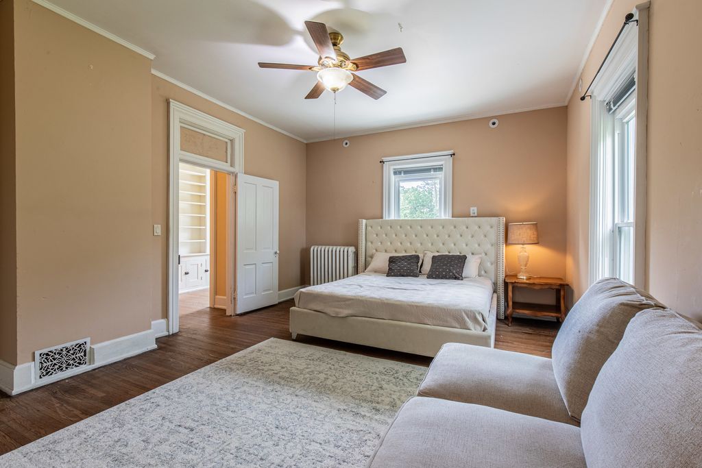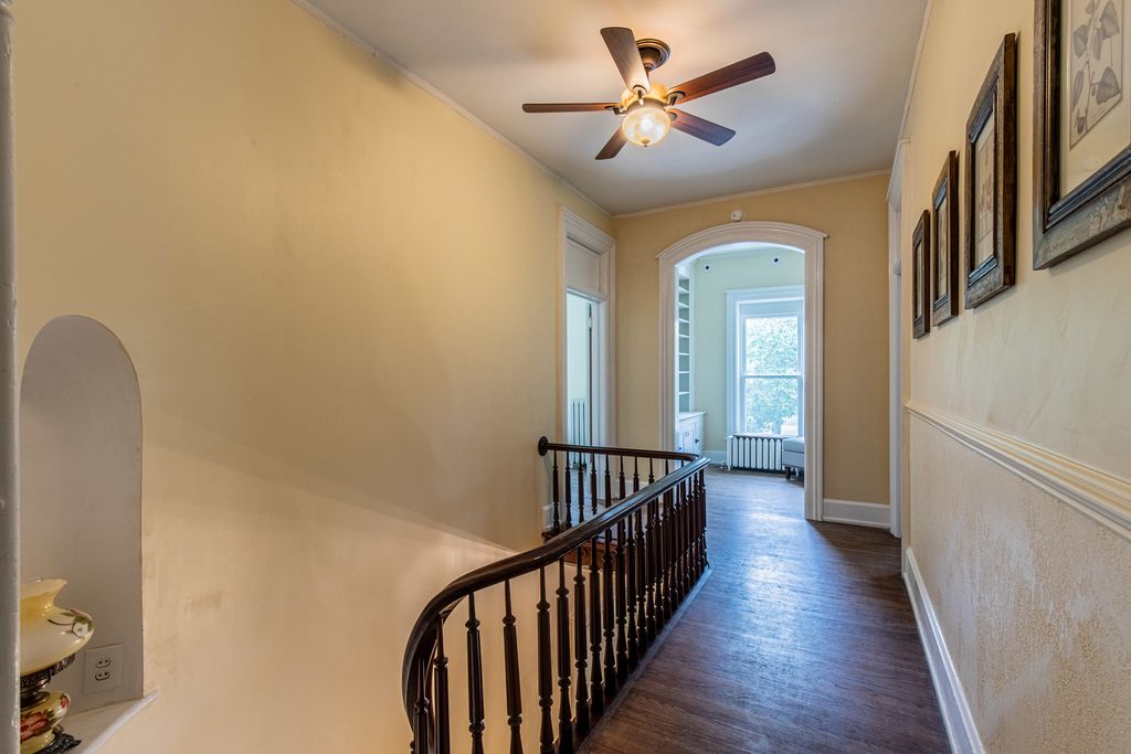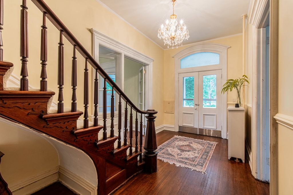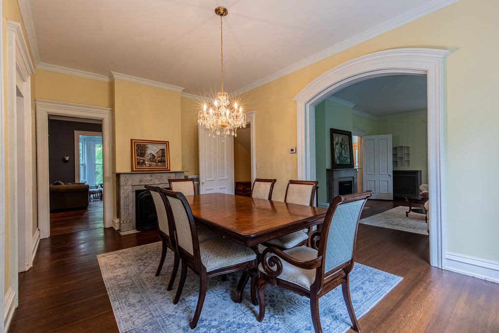With a perfect blend of historic charm and modern updates, this extraordinary 6-bedroom, 3.5-bath Italianate masterpiece offers both a rich past and an exciting future as your next home. Set gracefully back from the street, the 1.46-acre corner lot showcases a welcoming asphalt circular driveway, and an impressive 38-foot open front porch-an ideal spot to relax on a porch swing and enjoy peaceful afternoons. Step inside the grand foyer, where a striking curved staircase makes a memorable first impression. Throughout much of the home, you'll find newly refinished hardwood floors, complemented by new carpet on both staircases and the upper level. Thoughtfully updated with new windows (2020) and fresh interior paint in tasteful, modern tones, the home retains its timeless elegance with exquisite crown molding and detailed woodwork rarely found today. Comfort and peace of mind come standard with a radon mitigation system, a $10,000 water filtration system, and an upgraded heating system (2023) with a SensiSmart thermostat. Dual central air units provide efficient, customizable climate control for both floors, while updated wiring and 200-amp electrical service ensure reliability. All bathrooms have been updated within the past decade, including the main-floor primary suite, which features a walk-in closet and private en suite bath. The beautifully updated kitchen is designed for both everyday living and entertaining, featuring granite countertops, a Jenn-Air range, stainless steel appliances, and a convenient wet bar-perfect for coffee or cocktails. Two separate dining areas and an attached main-floor laundry room with abundant storage add to the home's functionality. Just off the kitchen, a spacious enclosed porch offers a serene setting to unwind with a glass of tea. Multiple living spaces provide flexibility and warmth, anchored by three stunning, ornate fireplaces-perfect for cozy evenings. Upstairs, you'll discover a charming library nook and a sun-filled bonus room, ideal as a home office, studio, or retreat. A two-car attached garage offers easy access, and a nearby garden shed provides additional storage for tools and outdoor essentials. This one-of-a-kind property seamlessly combines historic elegance with modern comfort-ready to welcome you home. Showings available Wednesday evenings and all day on Sundays.