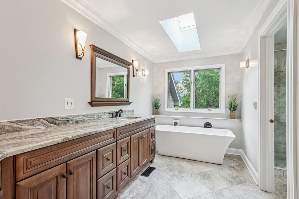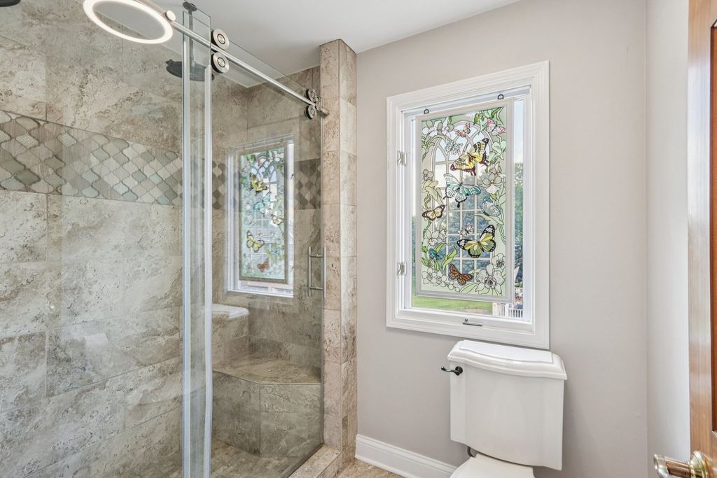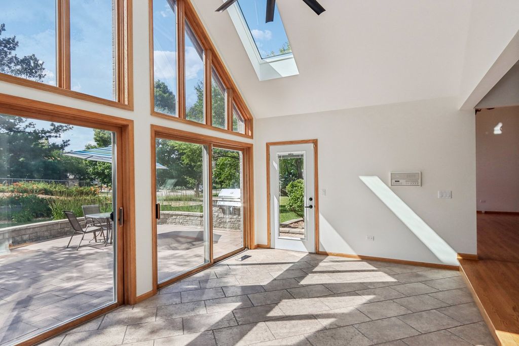 Welcome to this stunning all-brick custom home in the prestigious gated community of the Boulder Ridge Country Club Estates. You will be impressed with the completion of an outstanding 2025 project which included a brand new cedar roof, four new skylights, copper flashing, gutters and downspouts all totaling over $150,000. Receipts and warranty will transfer to the new owner. This 5-bedroom, 3-bathroom home offers over 3,400 sq ft of luxury living. The freshly painted main floor features a dramatic two-story foyer with a wrought iron staircase, crown molding, and abundant natural light. The spacious kitchen includes granite countertops, stainless steel appliances, and a large center island, opening to a bright four-season sunroom with three patio sliders. Step outside to a professionally landscaped yard with a full brick patio, built-in fire pit, grilling station, raised flower beds, and an irrigation system. A convenient main-floor bedroom and full bath are ideal for guests or in-laws. The vaulted master suite offers large windows and a spa-like bathroom with heated floors, dual vanities, granite counters, a soaking tub, and an oversized custom shower. Upstairs includes three more generously sized bedrooms and an updated full bathroom connected by a catwalk overlooking the family room. The updated laundry room leads to a heated 3-car garage with finished walls and a painted floor. This home also features a brand new A/C system and a new 75-gallon water heater for added comfort. A radon mitigation system is already installed for peace of mind.