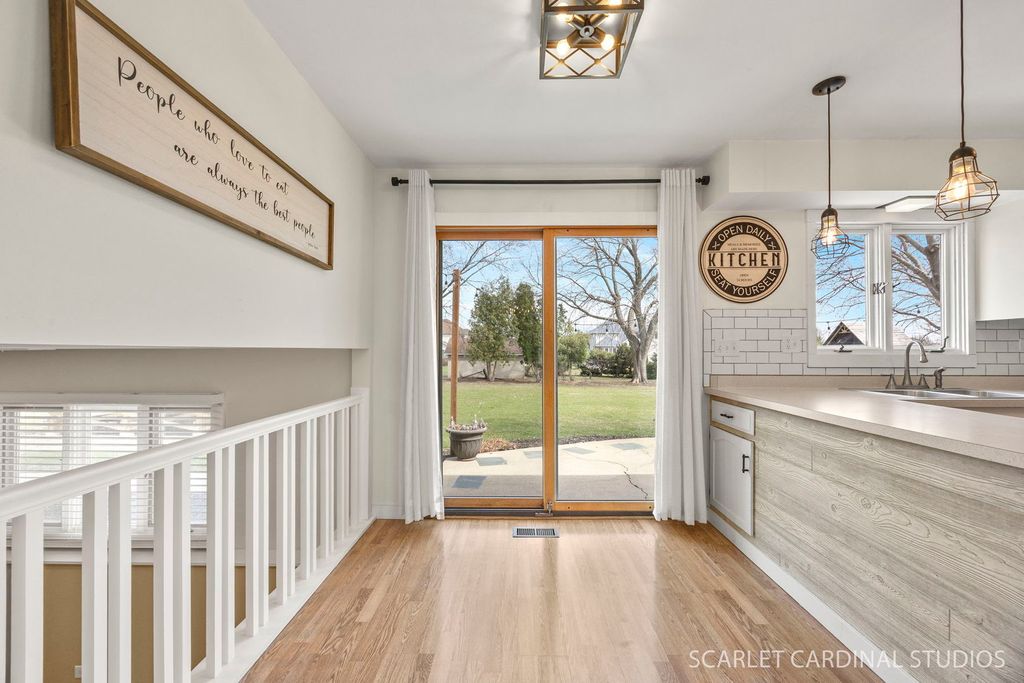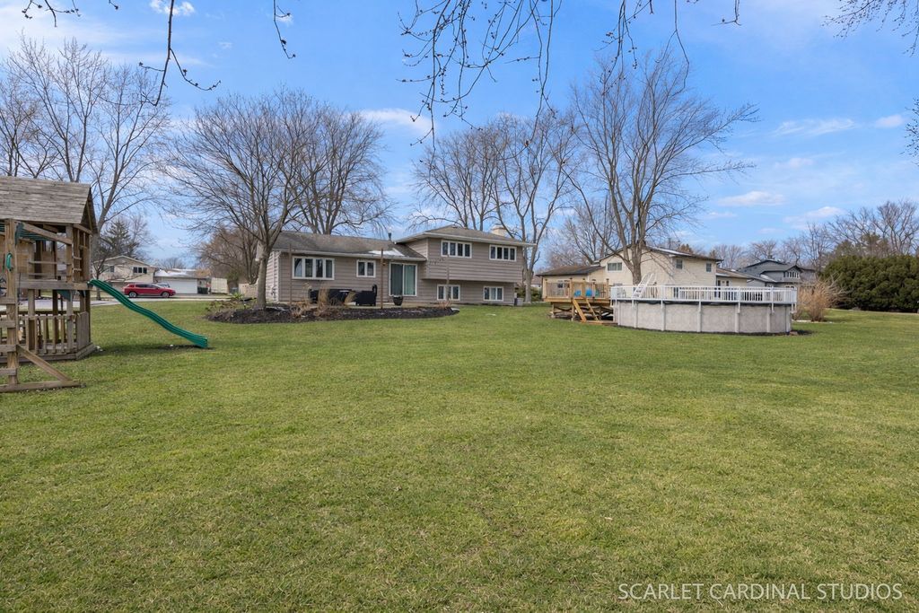 Welcome to 12805 S Elaine Drive, a wonderful North Plainfield home set on nearly half an acre with ideal east-west exposure that fills the home with beautiful natural light throughout the day. Offering a spacious layout, thoughtful updates, and a beautiful backyard setting, this home delivers comfort, flexibility, and convenience. Step inside to a welcoming entry where the living room flows seamlessly into the dining room, creating an ideal space for both everyday living and entertaining. Large windows throughout the home pull in natural light, enhancing the freshly painted interior and stylish updated light fixtures that create a neutral backdrop ready for your personal touch. At the heart of this home, a refreshed kitchen offers plenty of prep space for home chefs of every level; a full complement of appliances, including a brand new GE range and Bosch dishwasher (~2024); and a dine-in area overlooking an expansive backyard oasis. Just a few steps down, the inviting family room features newly installed luxury vinyl plank flooring and a brick-front fireplace, creating the perfect gathering space for relaxing evenings at home. This level also offers a three-quarter bath with a shower stall and a spacious mudroom/laundry room with access to the true 21/2-car garage for added convenience. Upstairs, you'll find three spacious bedrooms and a nicely updated shared full bathroom, along with new carpeting that adds comfort and a fresh feel to the second level. Outside, the oversized backyard features a brand-new deck (2025) and an above-ground pool with a new liner and filter (~2024), offering plenty of space to play, entertain, or simply unwind while enjoying the peaceful surroundings. Enjoy the benefits of lower taxes in unincorporated North Plainfield, while being just minutes from the highly rated Plainfield North High School, shopping, dining, and the charm of Downtown Plainfield, where scenic river paths, restaurants, and local shops create a vibrant community atmosphere. With its generous lot, bright interior, and convenient location, this home offers the space and setting you've been searching for. Don't miss your chance to call 12805 S Elaine Drive home!