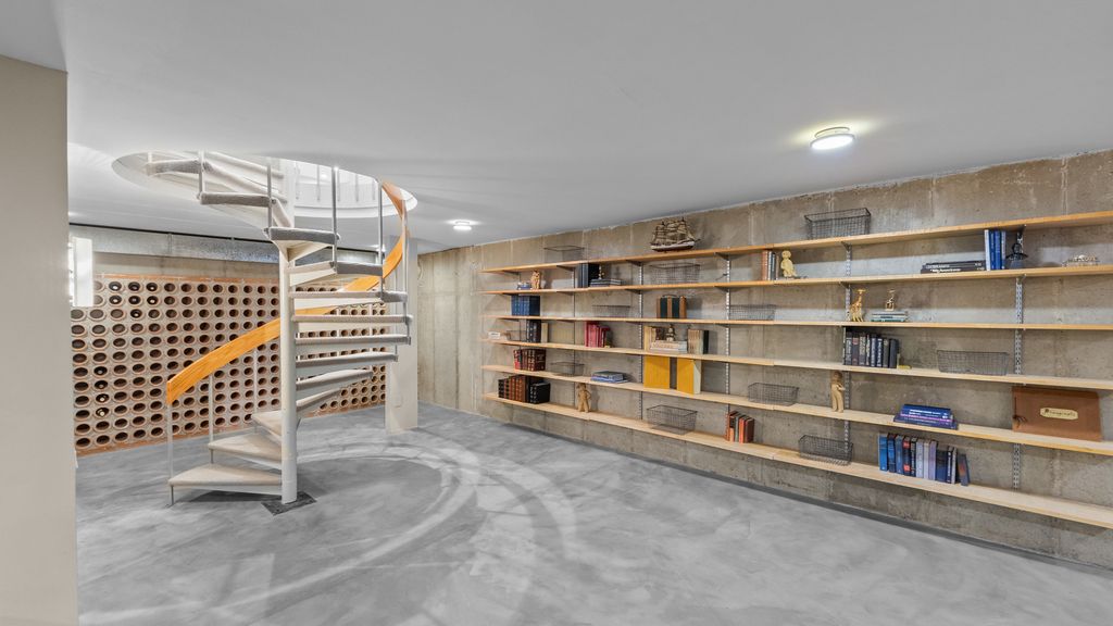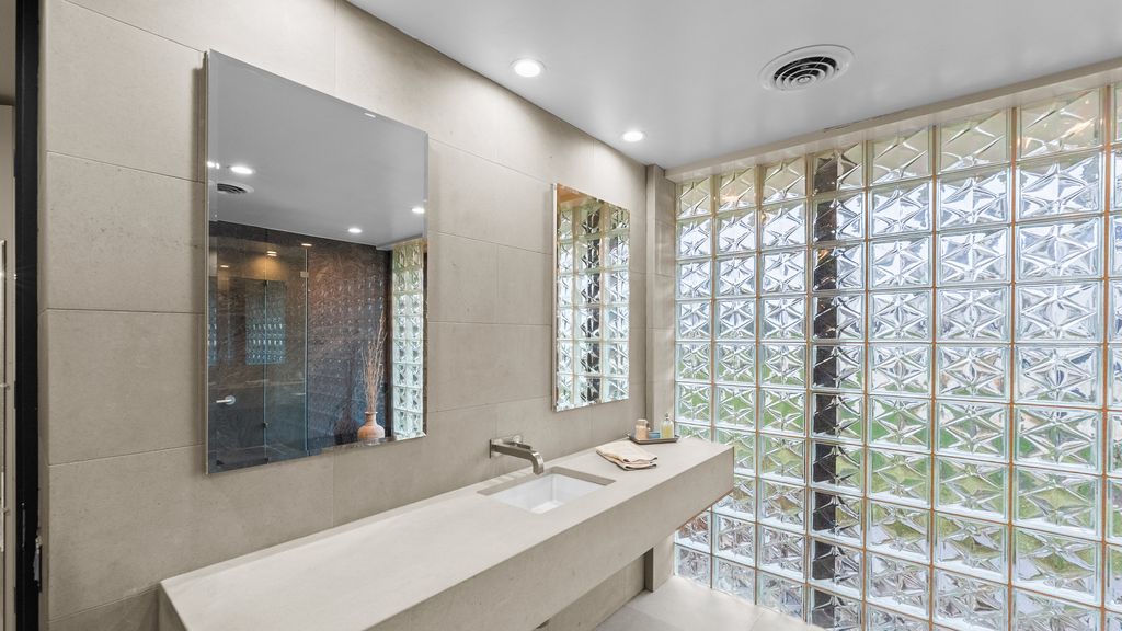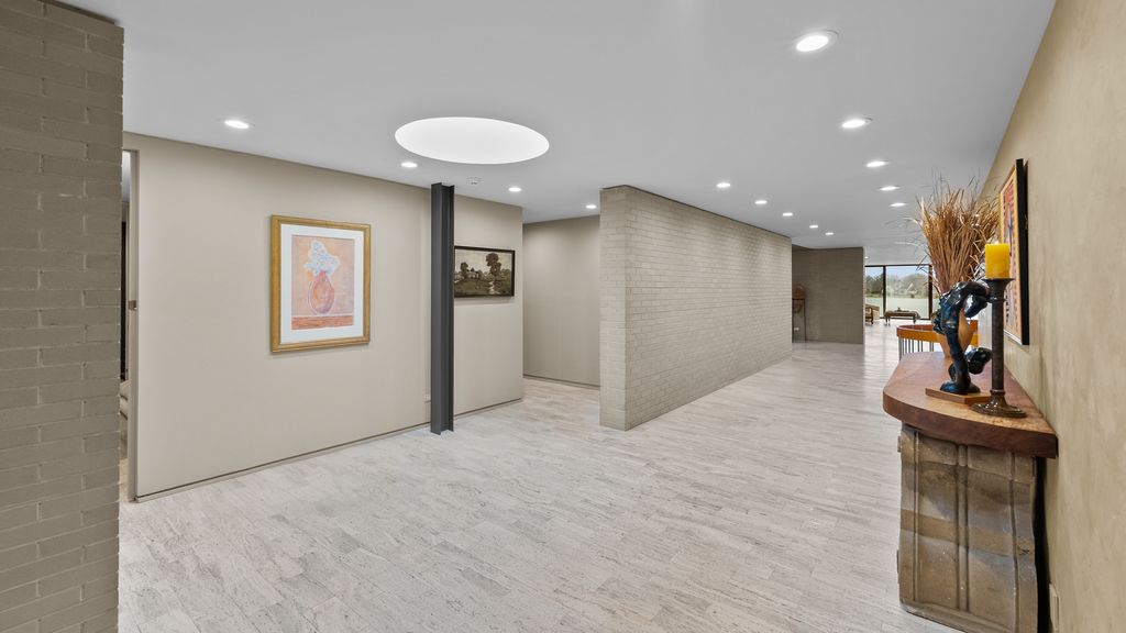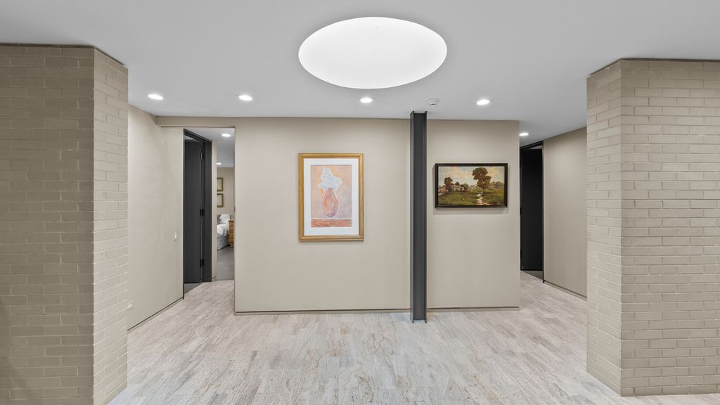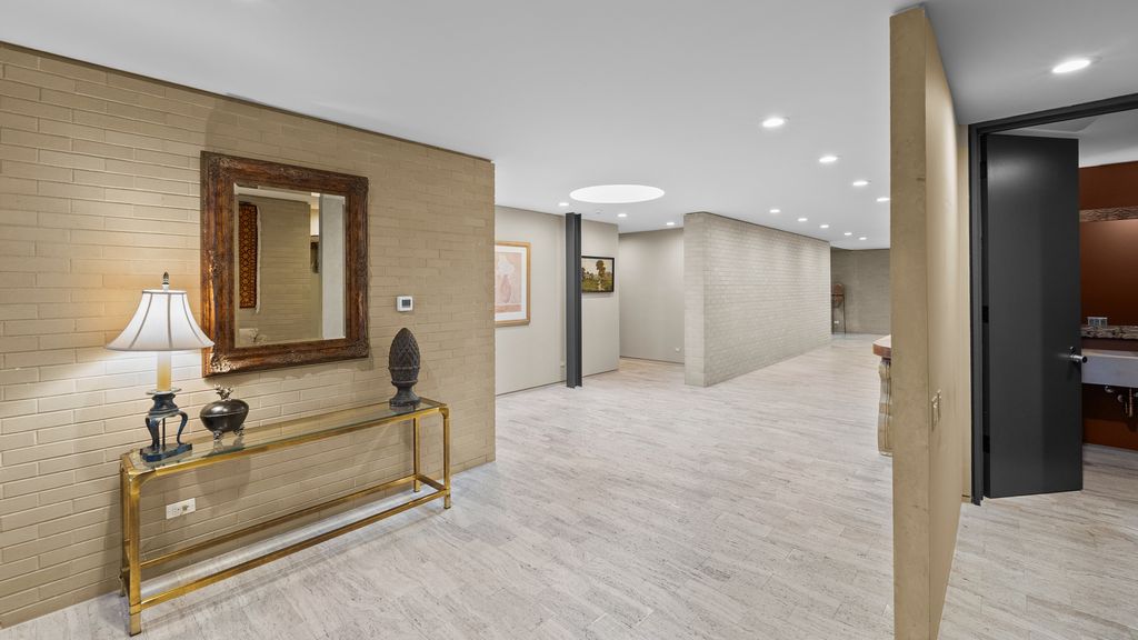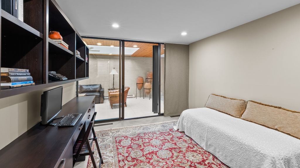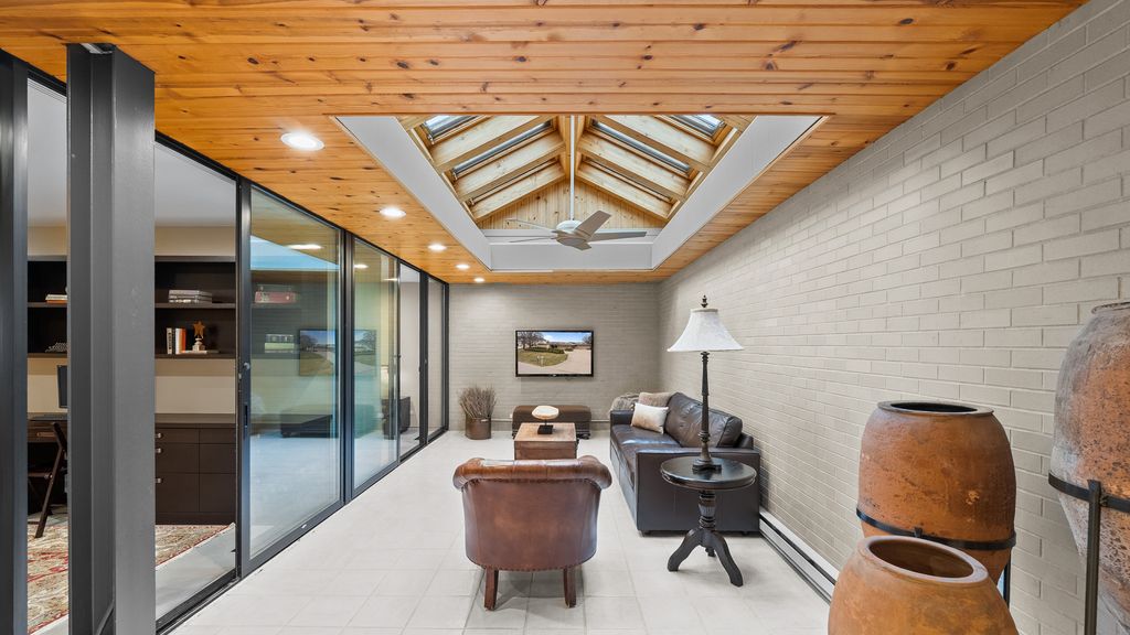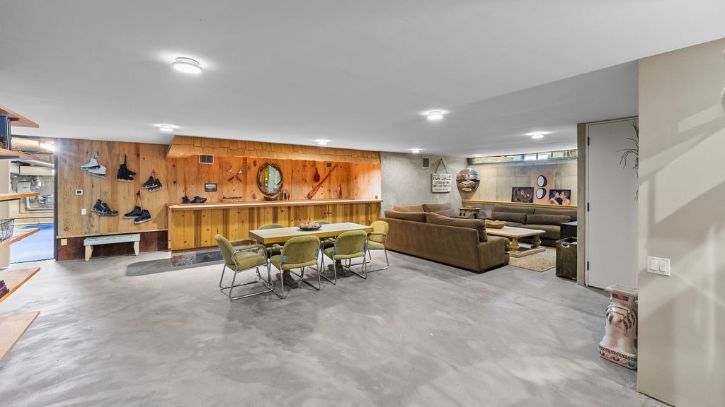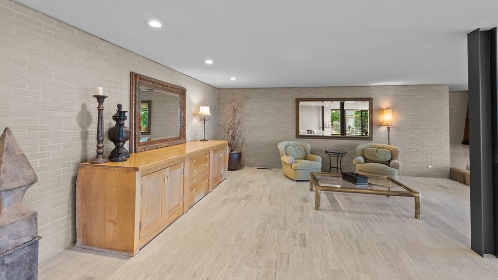 Designed by architect Peter Roesch, a direct student of Ludwig Mies van der Rohe, this exceptional residence embodies the timeless principles of true modernist design. With clean lines, expansive walls of glass, and a seamless connection between indoor and outdoor spaces, the home is not only an architectural gem but also offers a rare opportunity to experience waterfront living on the stunning 85-acre Lake of the Coves. Expansive floor-to-ceiling windows frame breathtaking lake views and flood the home with natural light, creating a serene, ever-changing backdrop. Exceptional craftsmanship and curated designer finishes shine throughout, including timeless travertine floors, impressive 8-foot doors, and custom European walnut cabinetry accented with distinctive leather cabinet pulls. At the center of the home, a dramatic 22' x 17' sunken conversation pit with a fireplace crowned by a sculptural copper hood serves as a sophisticated focal point. A curved architectural wall finished in Venetian plaster elegantly separates the living room from the kitchen, adding a dramatic custom design element. The finished basement features a spacious family room, a 380-bottle wine wall, oversized storage, and a dedicated dog-wash room. The private sauna and changing rooms lead you to the extraordinary 38' x 35' indoor area that creates a true year-round retreat, featuring an inground pool and whirlpool spa. More floor-to-ceiling windows with breathtaking views of the lake bring the beauty of the waterfront indoors. Embrace the ultimate lake lifestyle with your own private boat dock equipped with electric power-perfect for effortless days on the water, sunset cruises, and lakeside entertaining. Whether it's morning coffee by the water, afternoons spent boating, or evenings enjoying peaceful panoramic views, this home offers a lifestyle that feels like a year-round vacation. This home is truly a must-see for buyers seeking something special.
